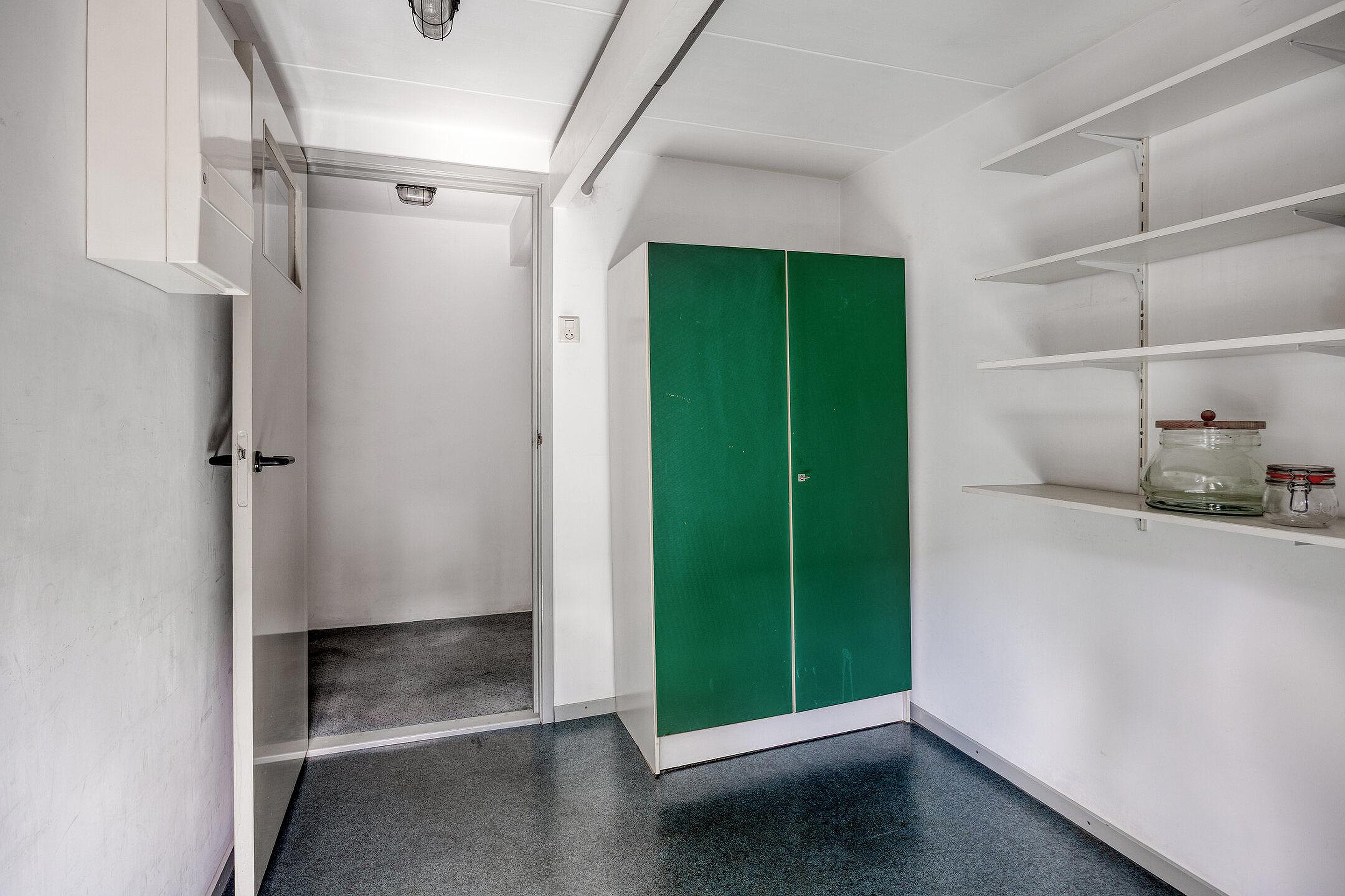 Entree, hal met toegang tot een berging aan de rechterzijde. Aan de linkerzijde van de hal kom je in de woonkamer. Deze is heerlijk licht. Vanuit de woonkamer ga je via de bijkeuken met toegang tot het toilet, naar de keuken. Deze heeft een in hoek opgestelde keukeninrichting met inbouwapparatuur. Vanuit de keuken is er een trap naar de eerste verdieping.