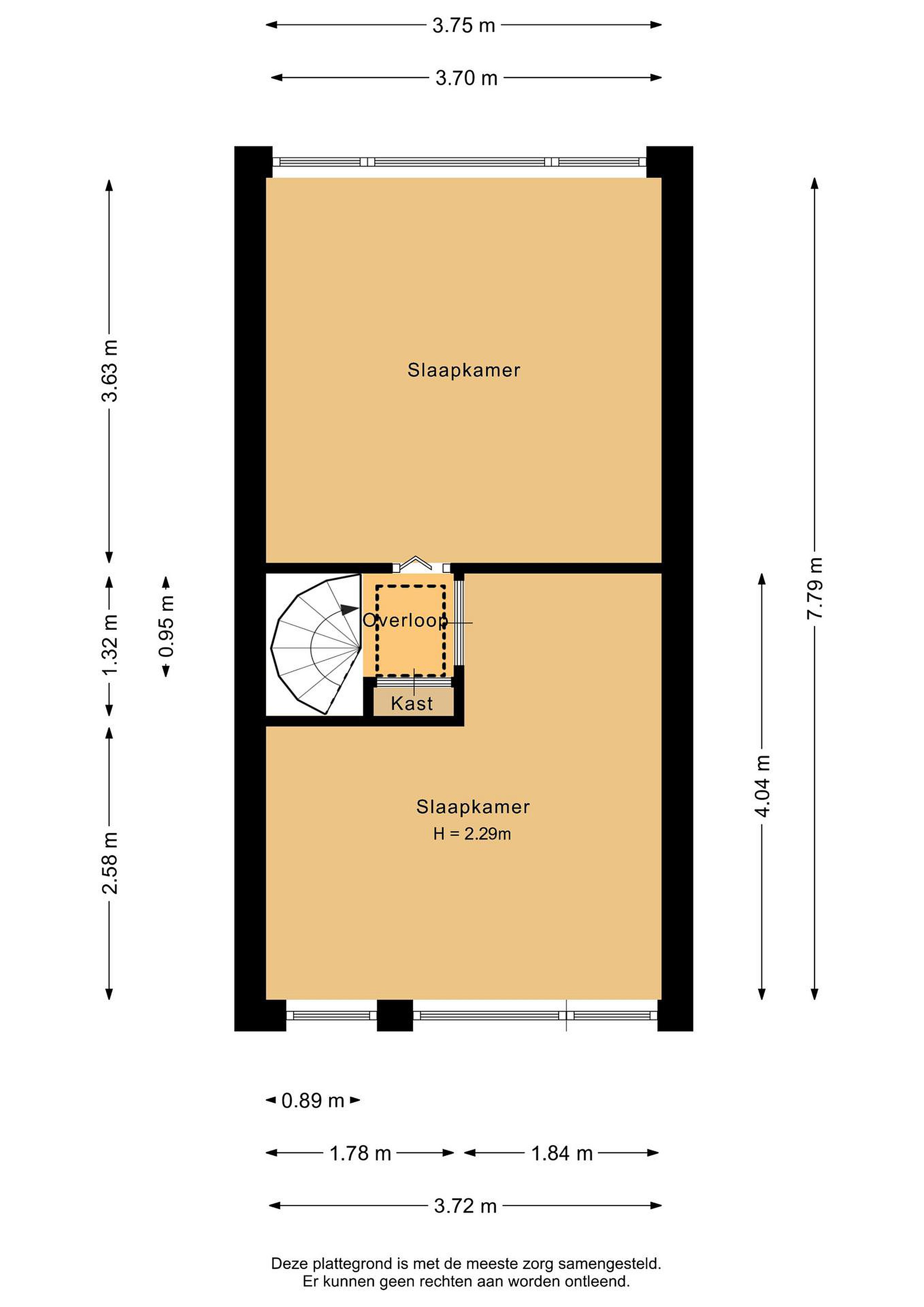 Voor de afmetingen en indeling, zie de plattegrond.