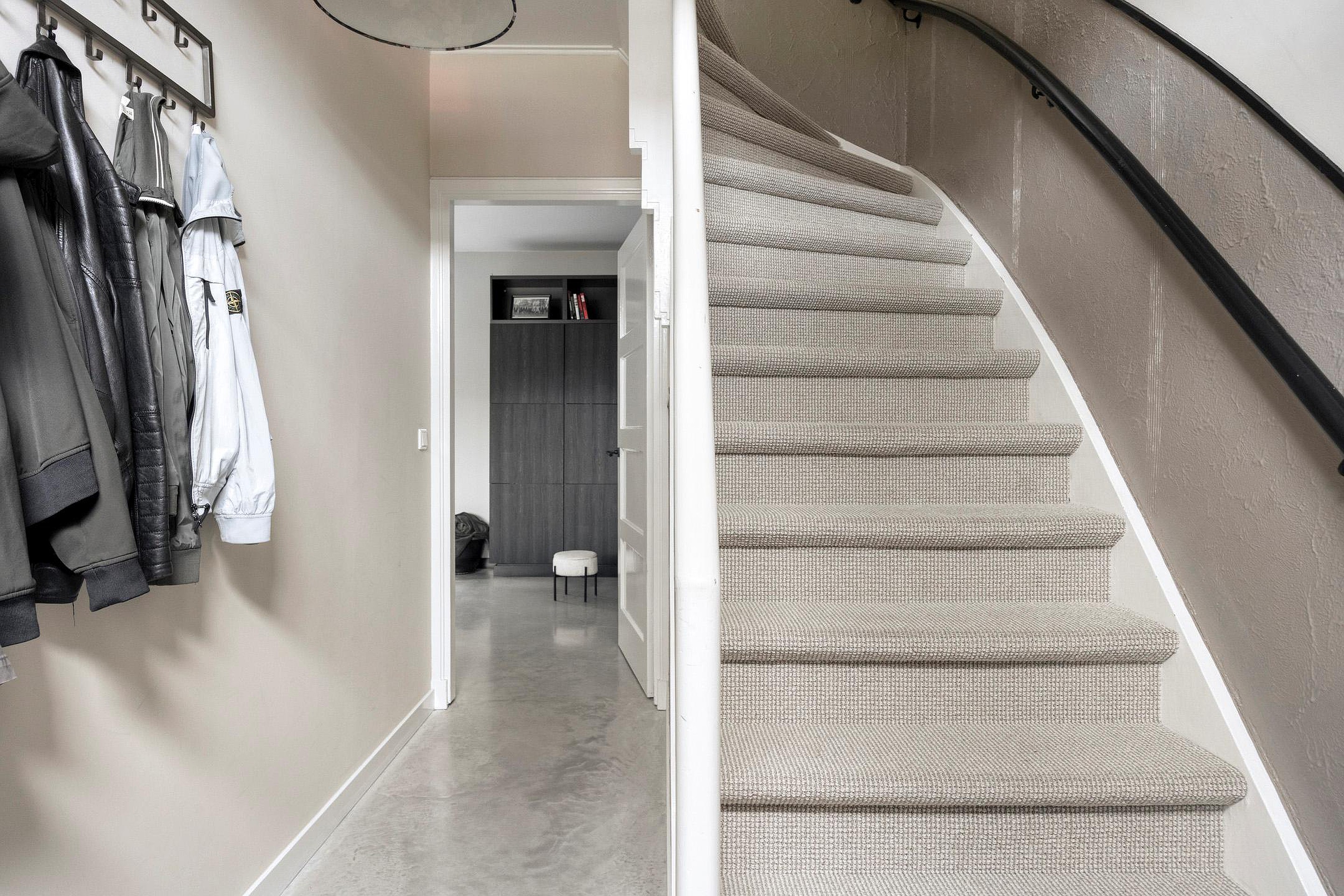 Begane grond Via de stijlvolle entree betreedt u deze luxe woning. De hal is voorzien van de meterkast en trapopgang en hoogwaardig afgewerkt met strak gestucte wanden en plafonds. De gevlinderde betonvloer, uitgerust met vloerverwarming en -koeling, loopt over de gehele begane grond en vormt een rustige, luxe basis.