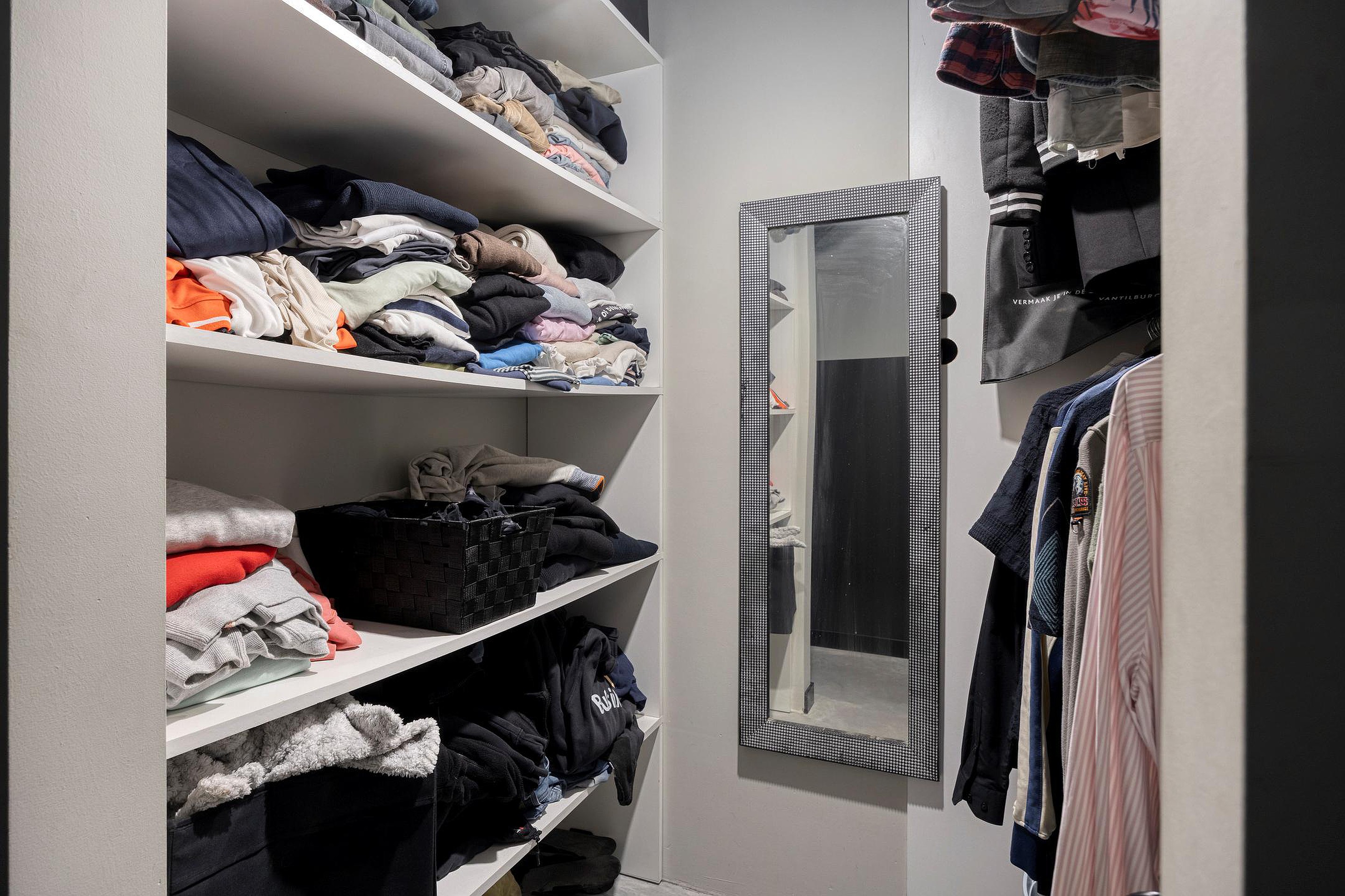 Tweede verdieping Op de tweede verdieping bevindt zich een overloop met witgoedaansluiting, van waaruit u toegang heeft tot twee ruime slaapkamers. Beide slaapkamers zijn voorzien van een dakkapel, waarbij de achterste kamer is uitgerust met een screen en een praktische wastafel. De kamers zijn hoogwaardig afgewerkt met een PVC-vloer in visgraatmotief en strak gestucte wanden en plafonds. De gehele verdieping beschikt over vloerverwarming en koeling, wat bijdraagt aan een aangenaam en comfortabel binnenklimaat.