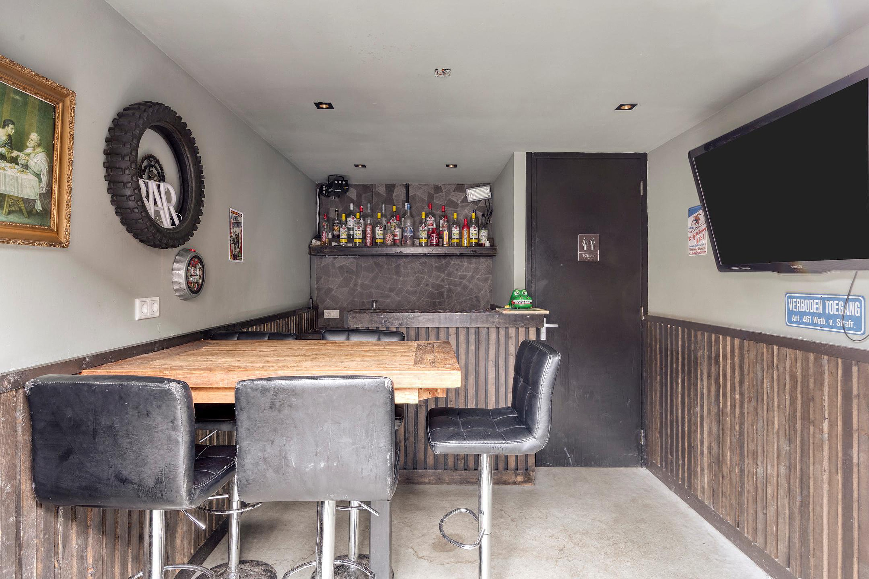 Daarnaast is er een gezellige multifunctionele ruimte, compleet met klein barretje, koeling, spoelbak en separaat toilet — ideaal als hobbyruimte, mancave, thuiskantoor of plek om met vrienden te ontspannen. Een garage die zowel praktisch als bijzonder veelzijdig is.