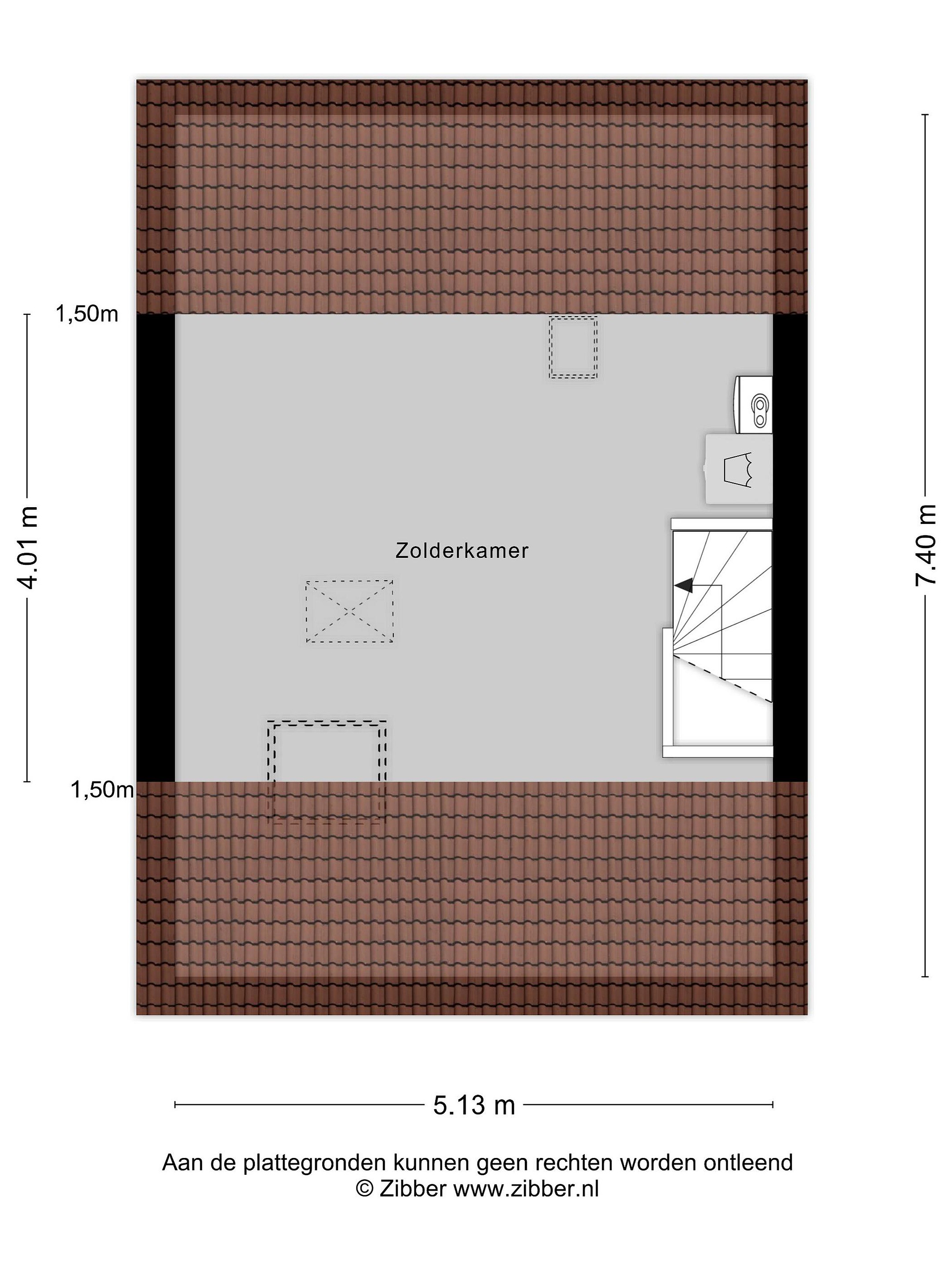 Tweede verdieping Via de vaste trap op de overloop bereikt men de tweede verdieping alwaar een ruime open bergzolder met mogelijkheid voor de realisatie van een of twee extra kamers (door een dakkapel te plaatsen).
