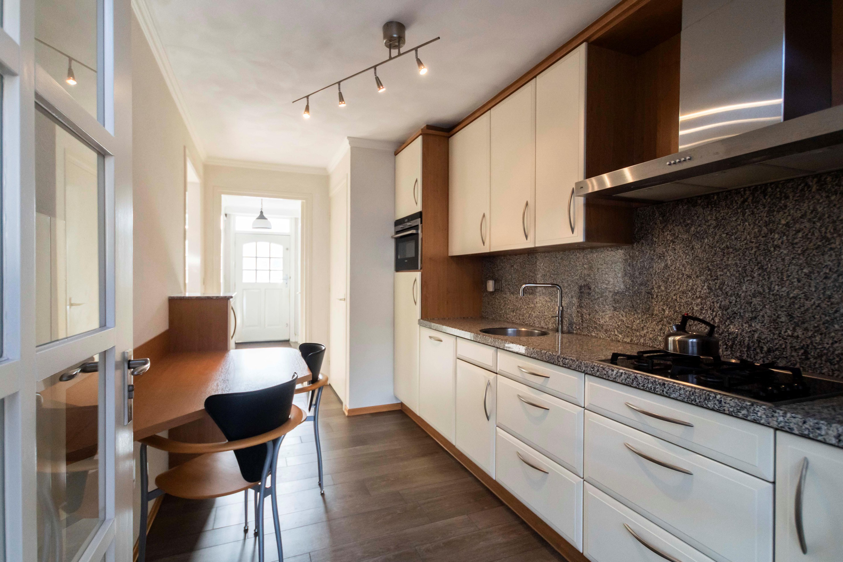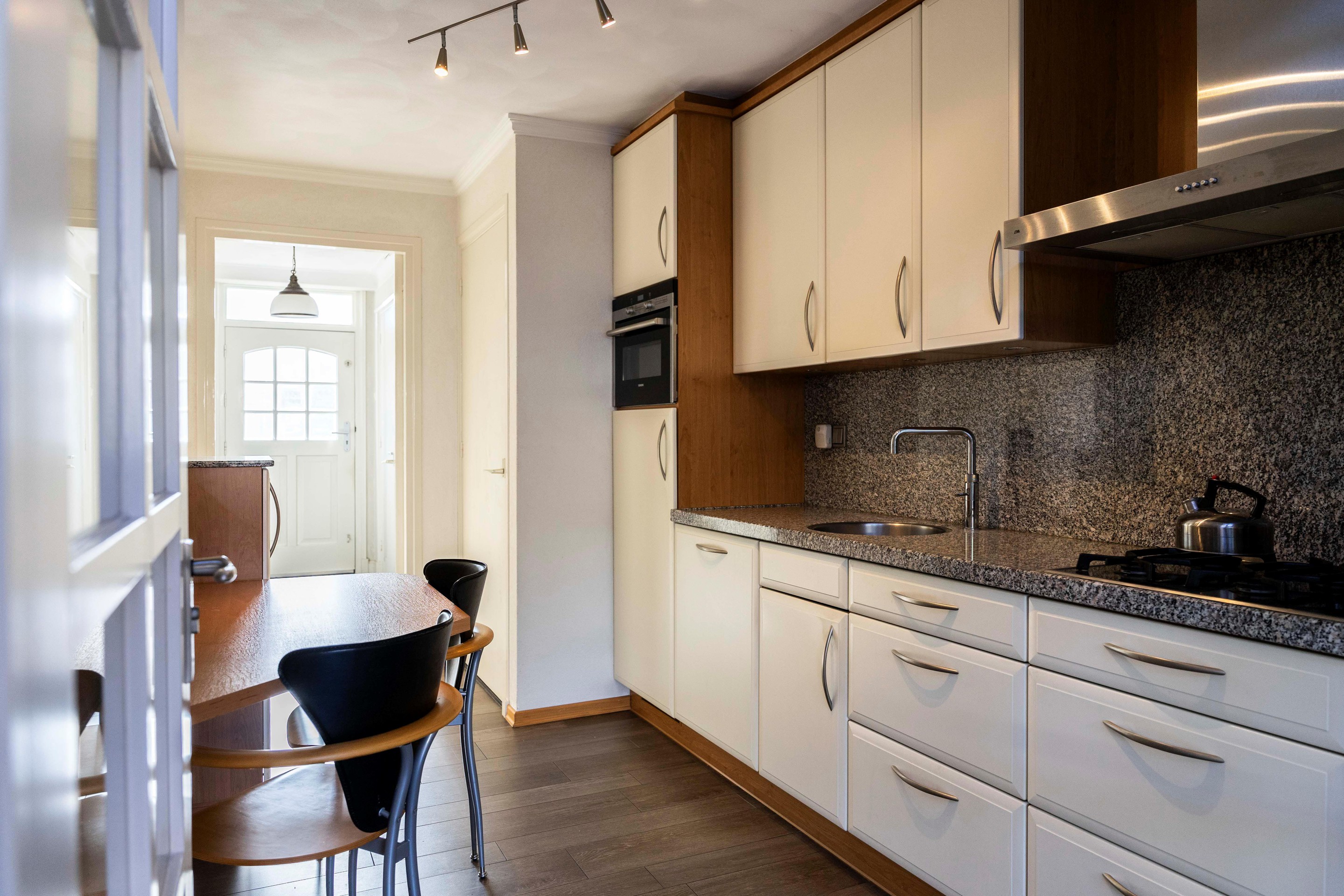 Via de ruime voortuin (onderhoudsvrij) bereik je de hal met toegang tot het toilet, meterkast, trapopgang en de keuken. De praktisch ingerichte keuken beschikt over diverse inbouwapparatuur, o.a. 4-pits gasfornuis, afzuigkap, combi-oven, koelkast, vaatwasser en toegang tot de kelder. Vanuit de keuken heb je toegang tot zowel de woonkamer als de serre. Beide ruimtes beschikken over vloerverwarming en zijn ruim opgezet met veel raampartijen voor lichtinval.