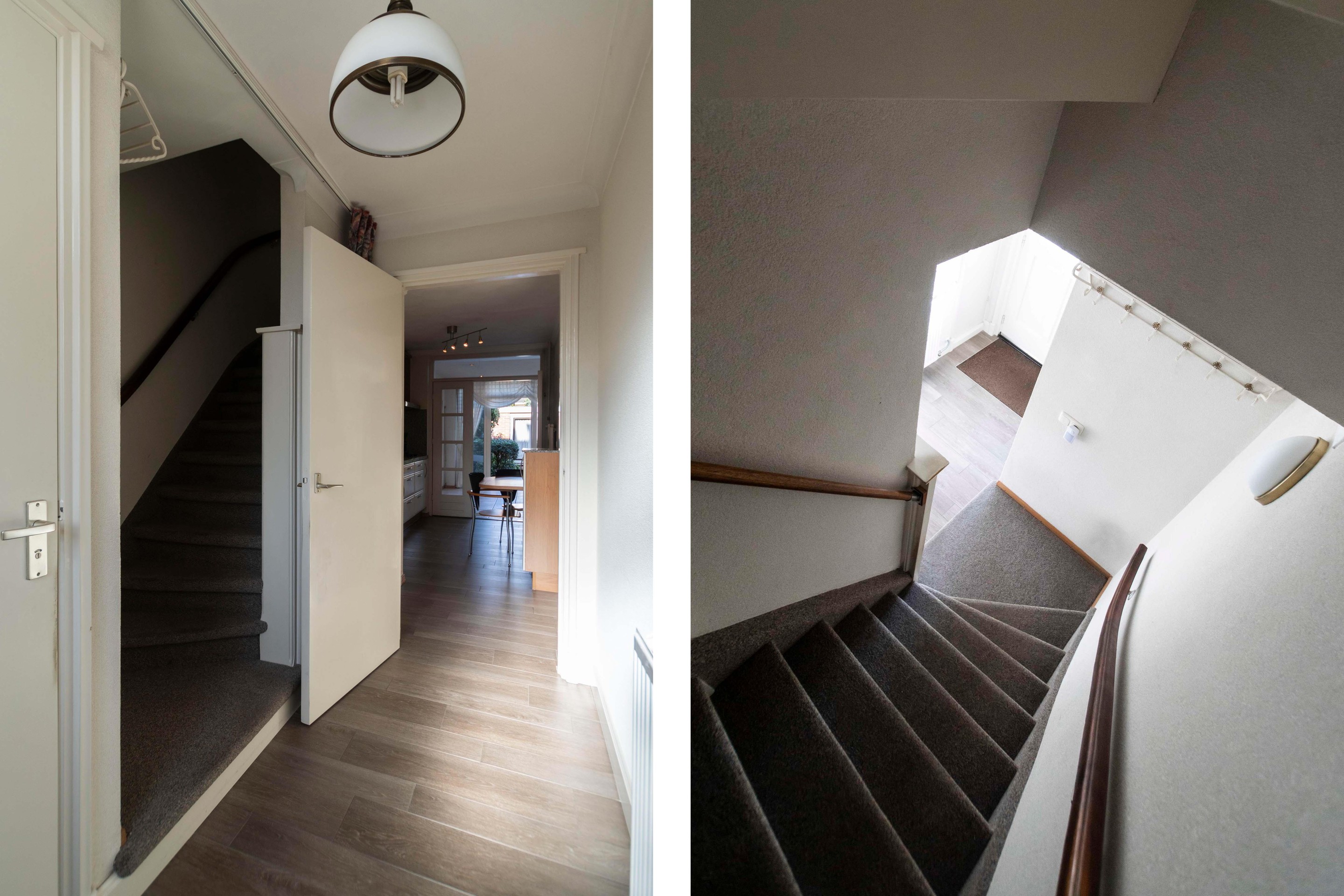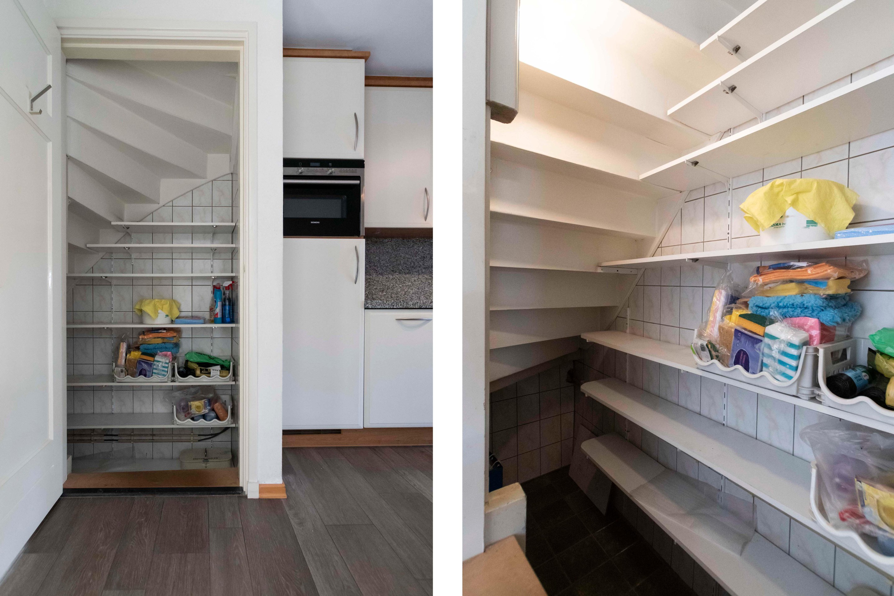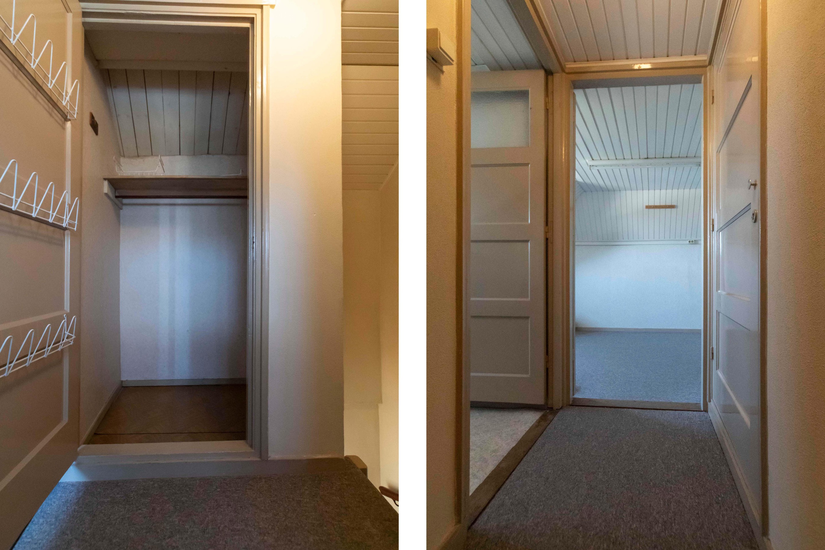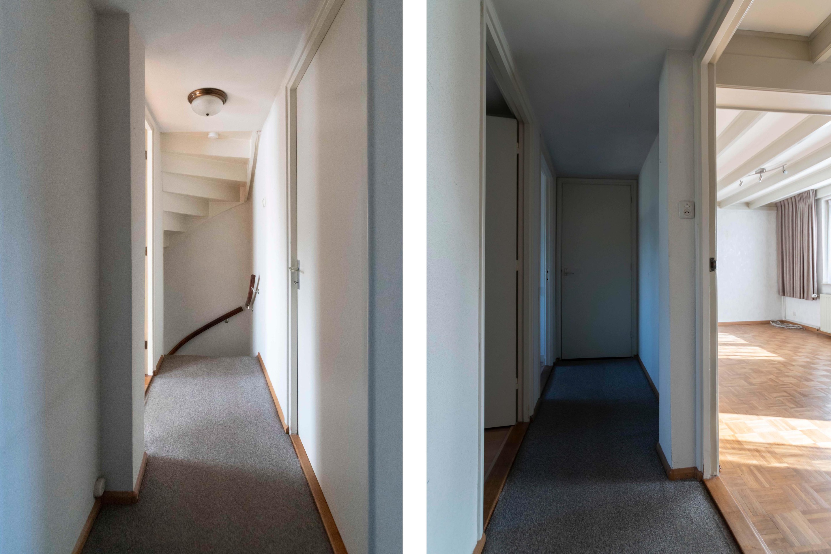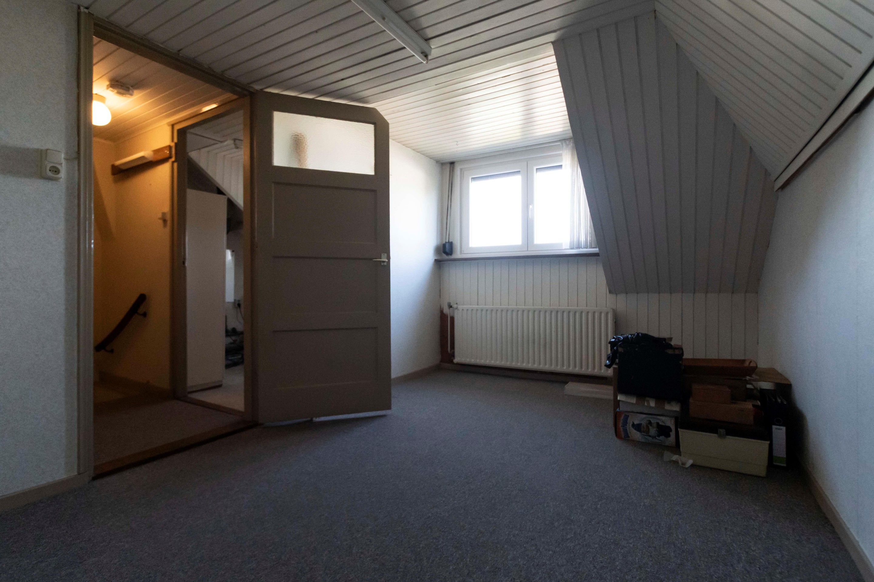 Overloop met toegang tot twee extra kamers, waarvan op dit moment één uitsluitend in gebruik is als technische ruimte met aansluiting van de cv. Aan de achterzijde beschikt de verdieping over een dakkapel met zicht op de tuin. Op deze verdieping bevindt zich meer dan genoeg opbergruimte en kastruimte.
