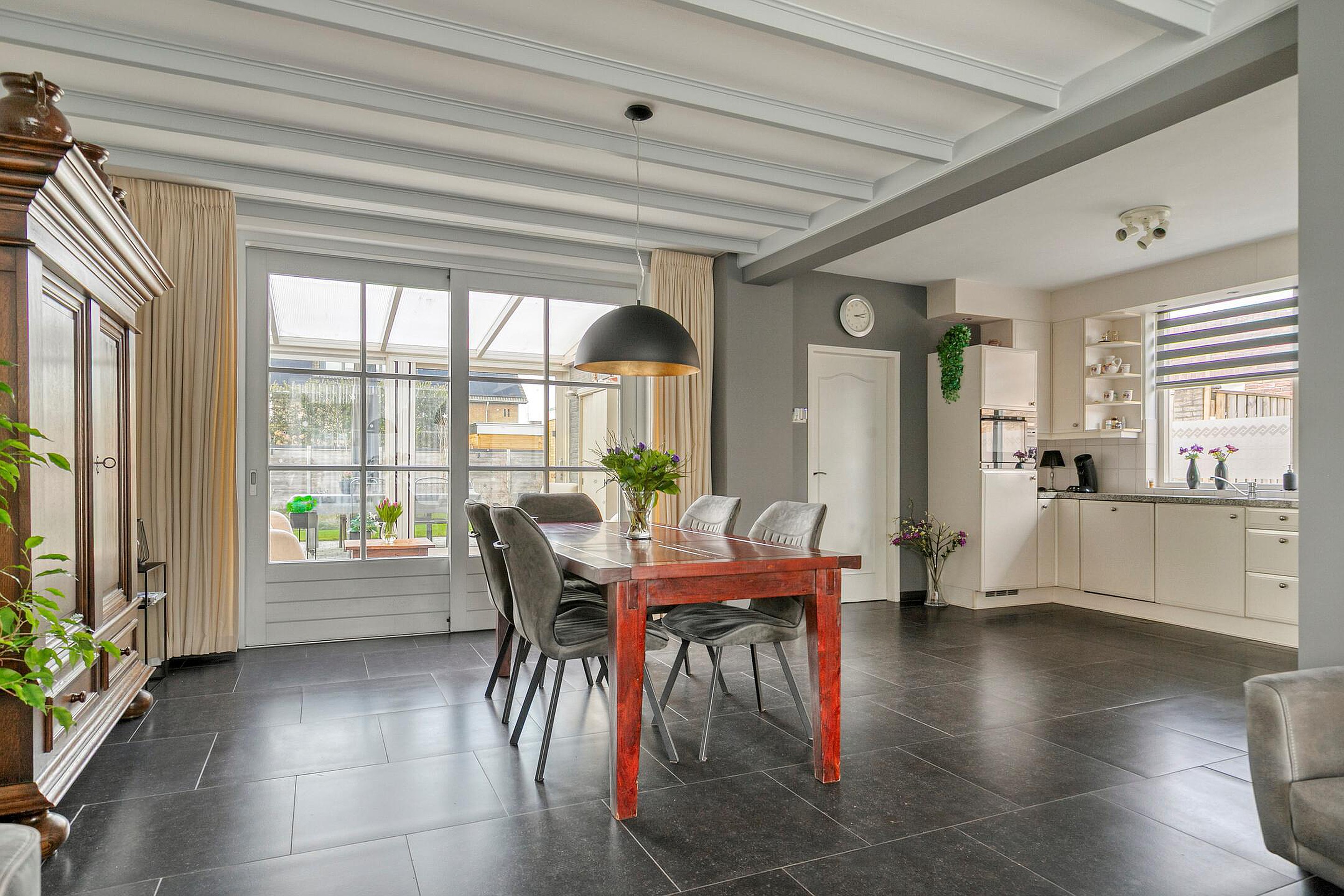 Begane grond Via de ruime en uitnodigende hal, voorzien van meterkast en trapopgang naar de eerste verdieping, betreedt u de woning. De moderne tegelvloer met vloerverwarming loopt door over de gehele begane grond en draagt bij aan optimaal wooncomfort. De royale L-vormige woonkamer is heerlijk licht dankzij de grote raampartijen en biedt volop ruimte voor zowel een comfortabele zithoek als een ruime eethoek. Aansluitend bevindt zich de tuinkamer, een fijne verlenging van de leefruimte, die dankzij de schuifpui een mooie verbinding vormt met de tuin. De woonkamer staat in open verbinding met de ruime keuken, uitgevoerd in een praktische U-opstelling met veel kastruimte. De keuken is compleet ingericht en voorzien van diverse inbouwapparatuur, waaronder een combi-oven, vaatwasser, inductiekookplaat, afzuigkap en koelkast – ideaal voor kookliefhebbers en gezinnen. Vanuit de keuken heeft u toegang tot de functionele bijkeuken, welke extra bergruimte biedt, is voorzien van een toilet met wandcloset en fontein en toegang geeft tot de verzorgde achtertuin.