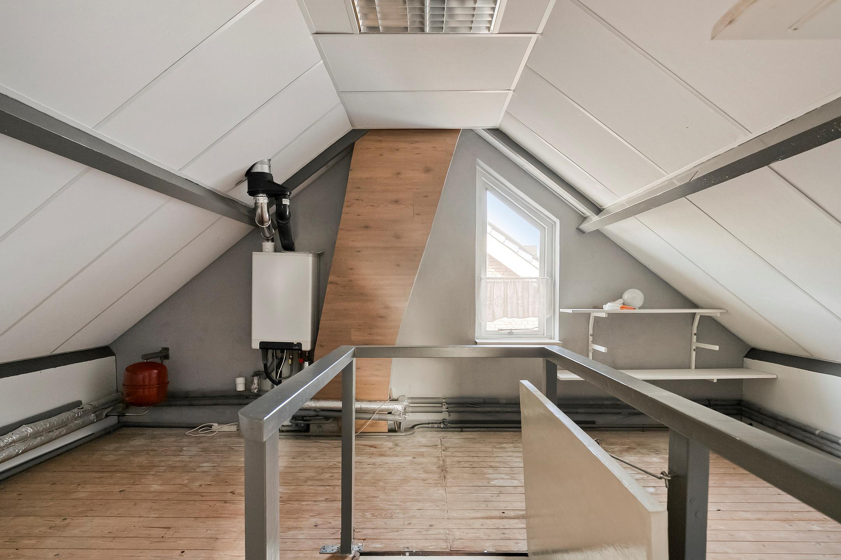 Tweede verdieping Via een vlizotrap is de zolderverdieping bereikbaar. Deze verrassend ruime zolder wordt momenteel gebruikt als bergzolder, maar biedt volop mogelijkheden voor ander gebruik. Tevens bevindt zich hier de cv-installatie (Intergas, 2012).