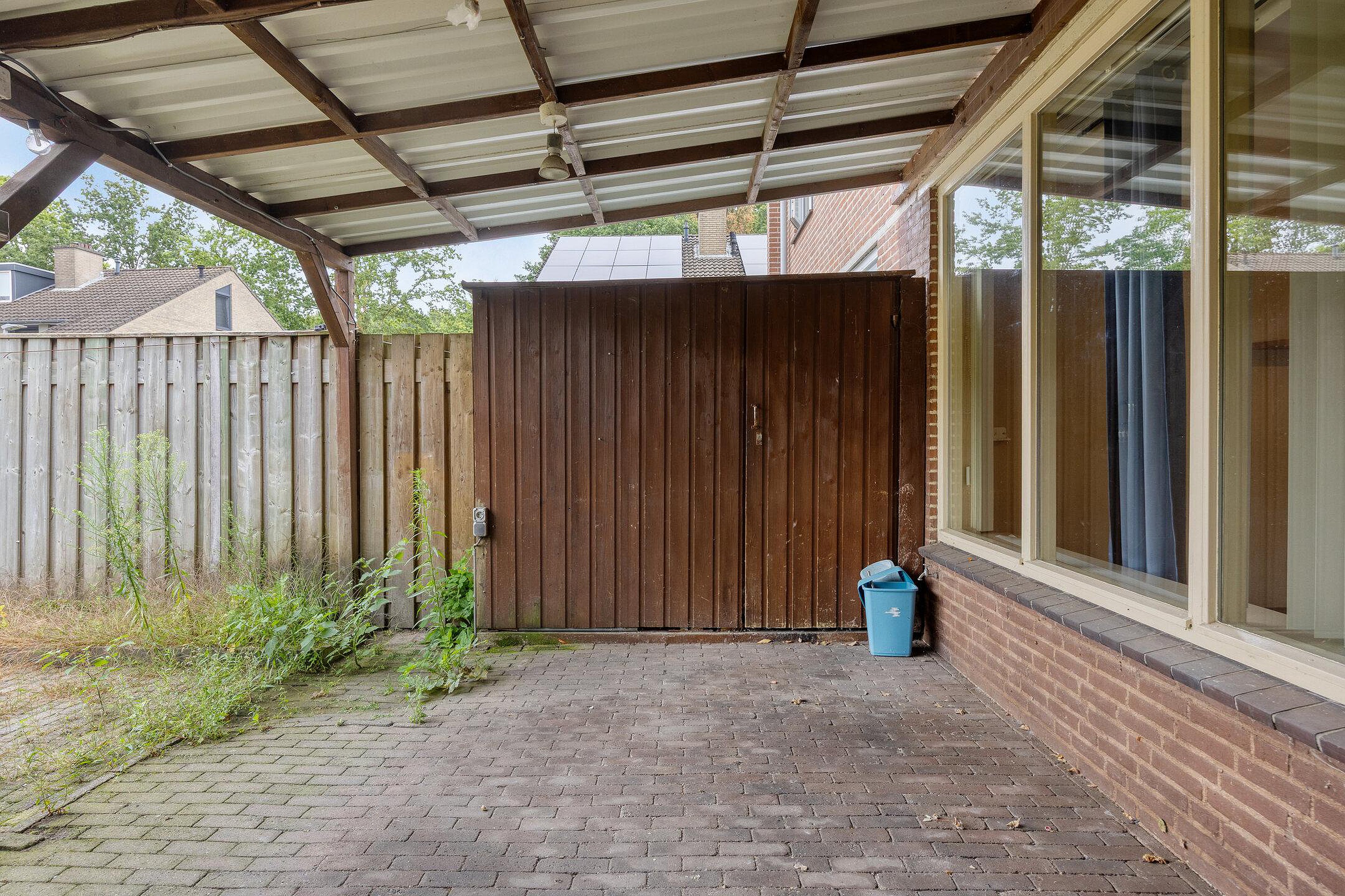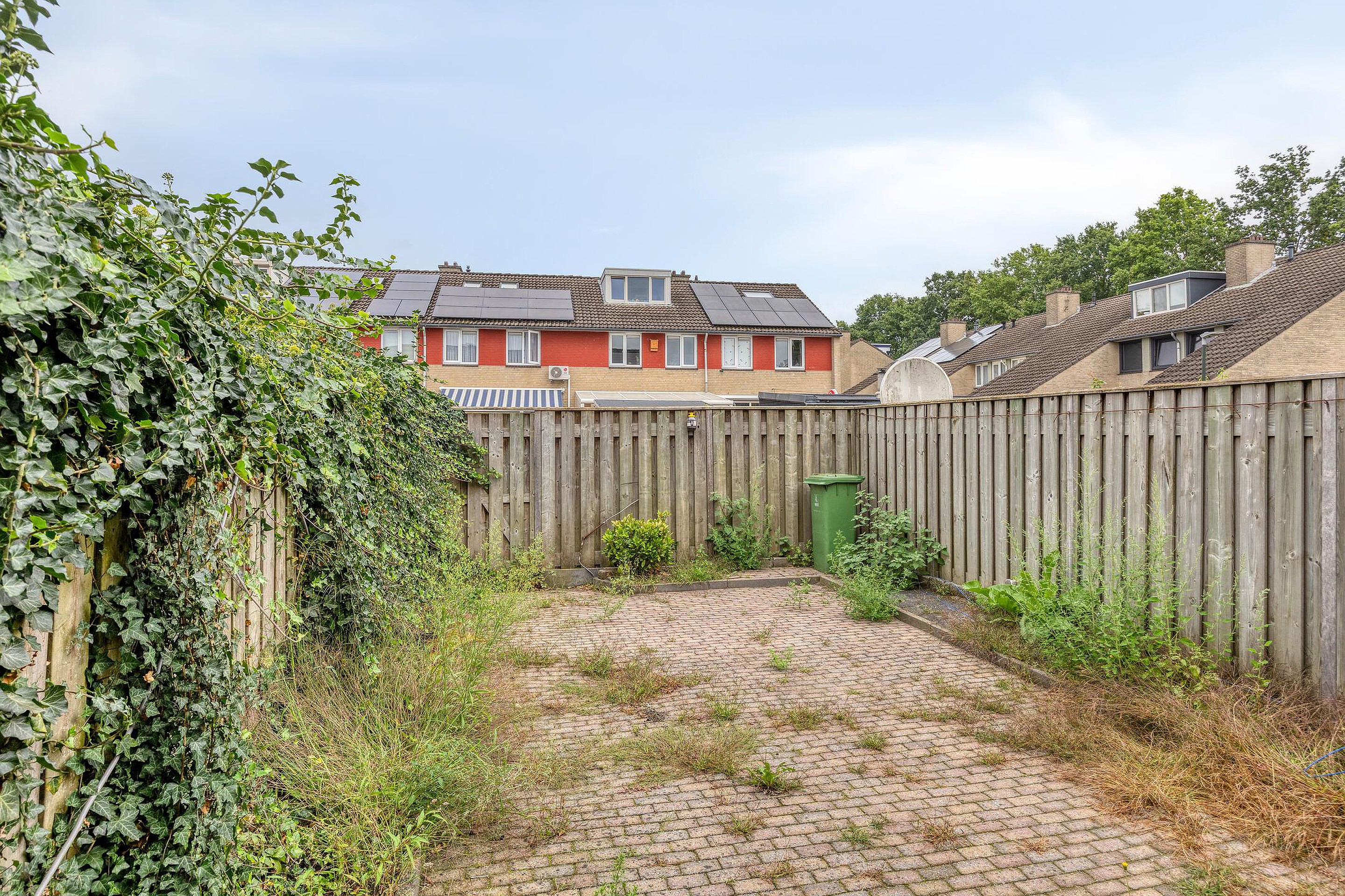 Tuin De achtertuin is gelegen op het noordwesten en is volledig bestraat, waardoor deze onderhoudsvriendelijk is. Direct aan het woonhuis bevindt zich een veranda, ideaal om het hele jaar door van het buitenleven te genieten. Aan de voorzijde van de woning is er een eigen parkeerplaats aanwezig, met directe toegang tot zowel de berging als het woonhuis.