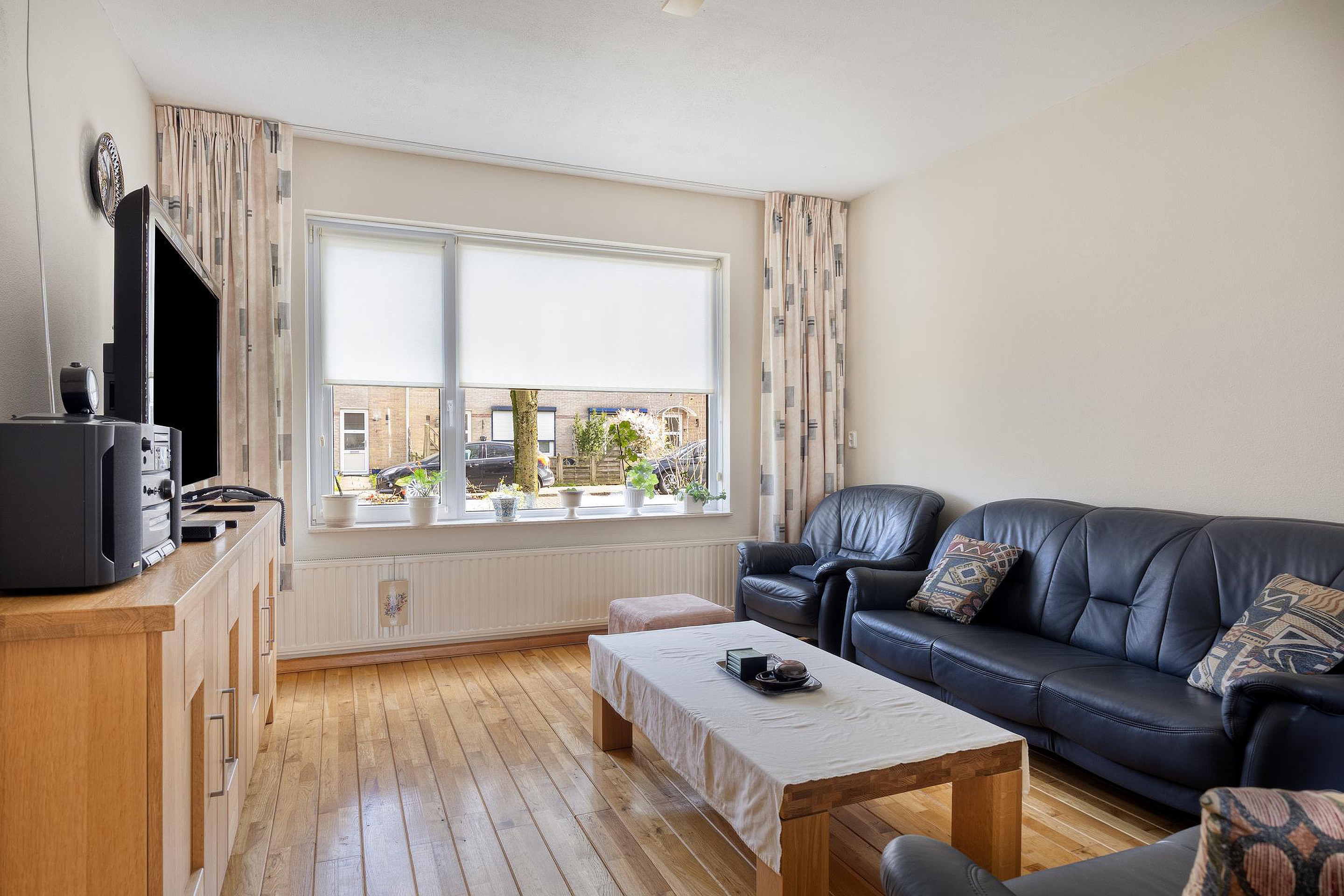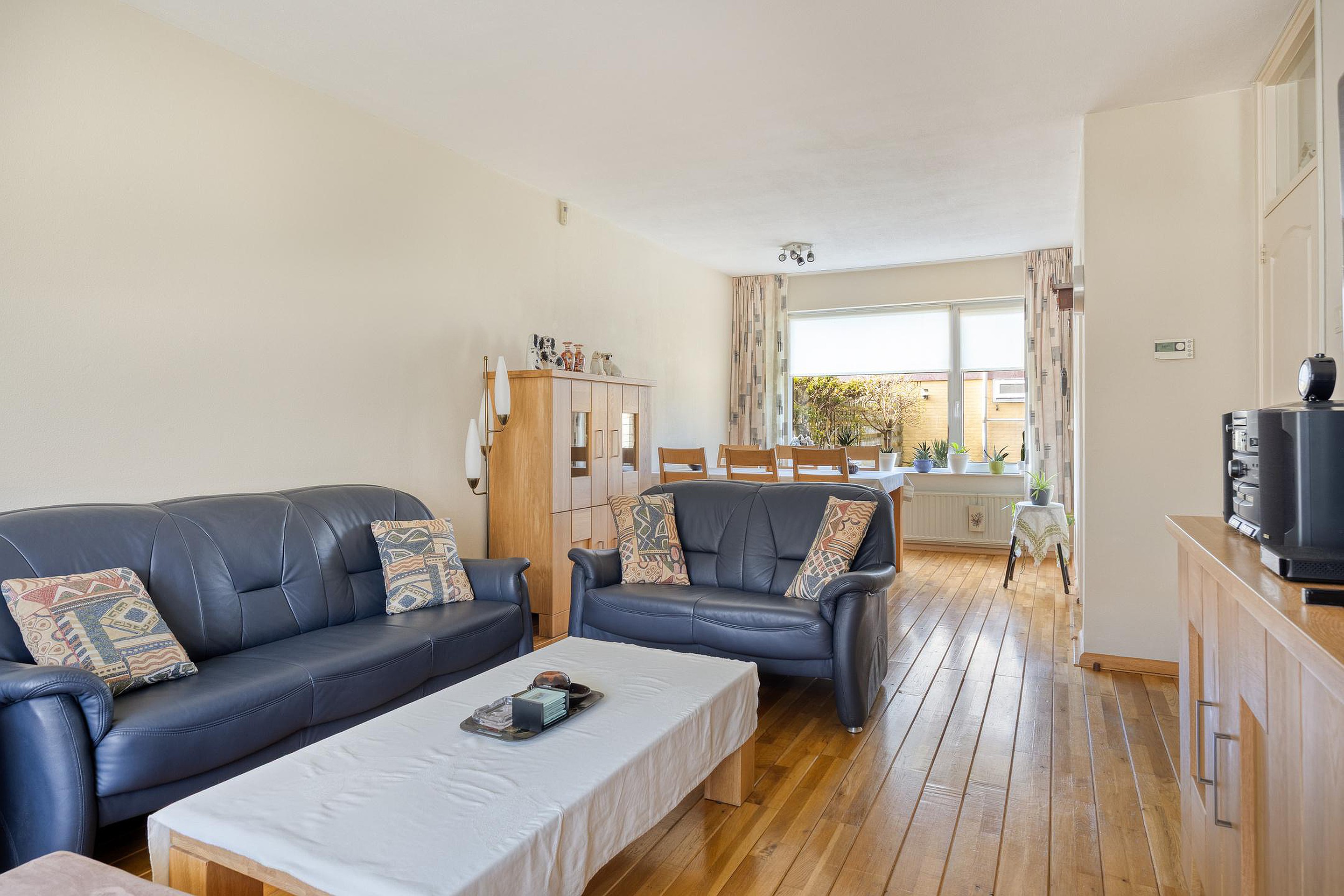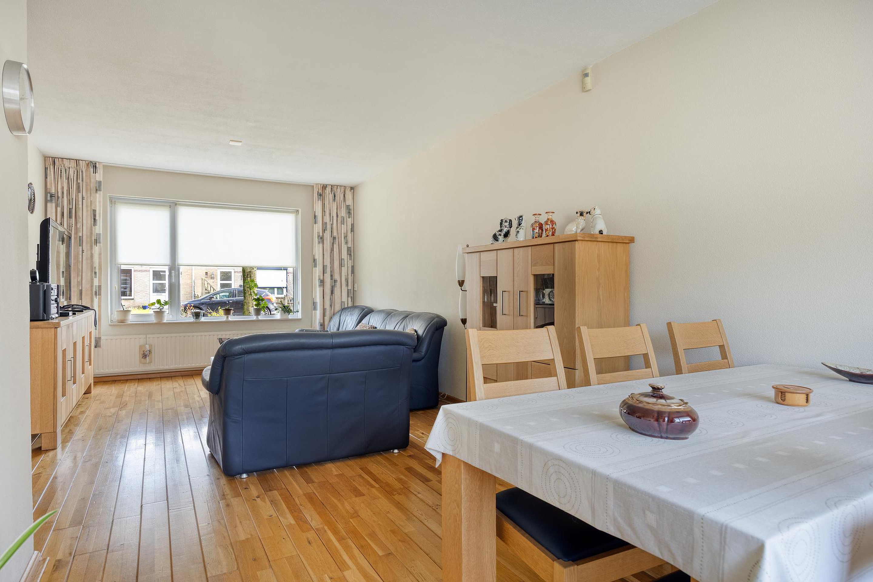 De woning beschikt over een lichte en gezellige woonkamer waar grote ramen zorgen voor veel natuurlijk licht. De praktische indeling maakt het een heerlijke plek om te ontspannen of samen te komen met familie en vrienden.