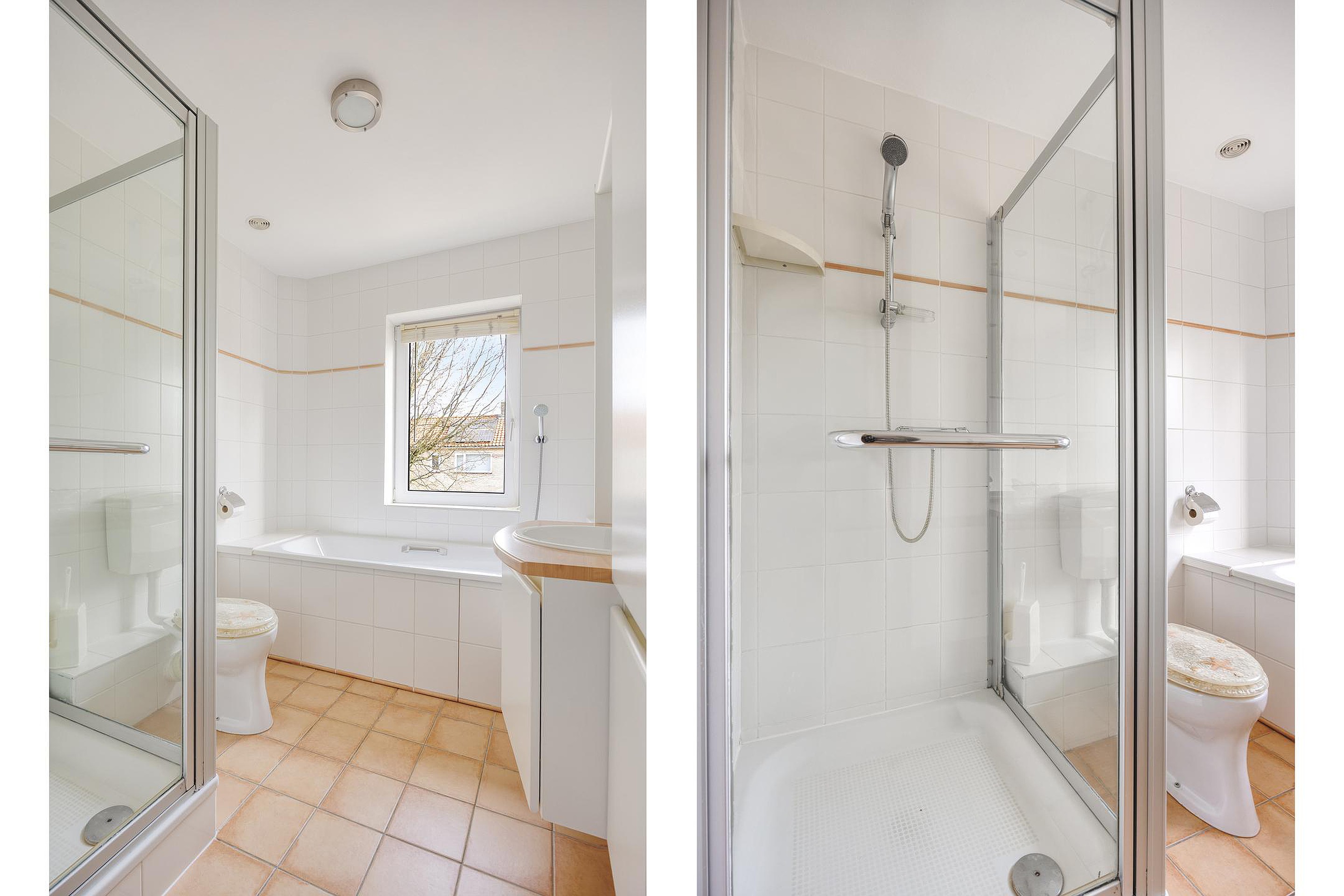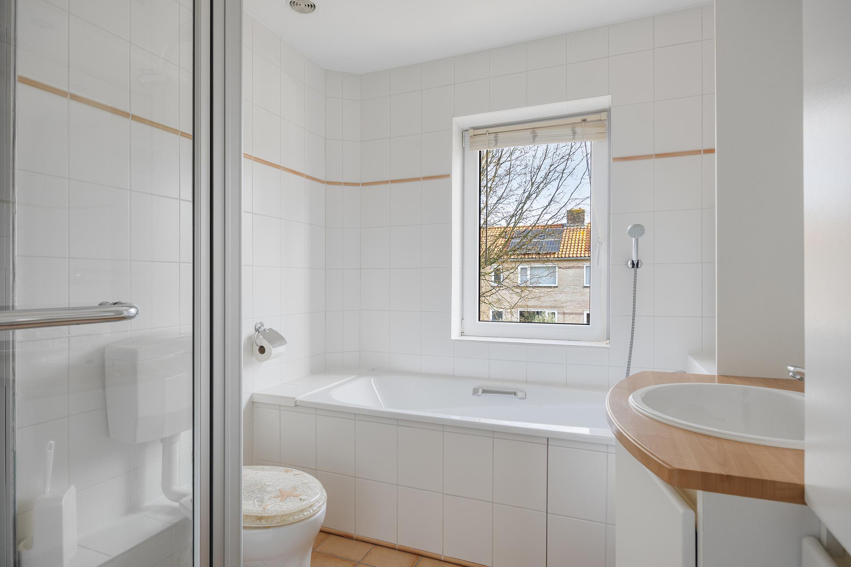 Op de eerste verdieping bevinden zich drie slaapkamers die flexibel te gebruiken zijn, bijvoorbeeld als hoofdslaapkamer, kinderkamer of thuiswerkplek. De badkamer is functioneel ingericht en van alle gemakken voorzien.