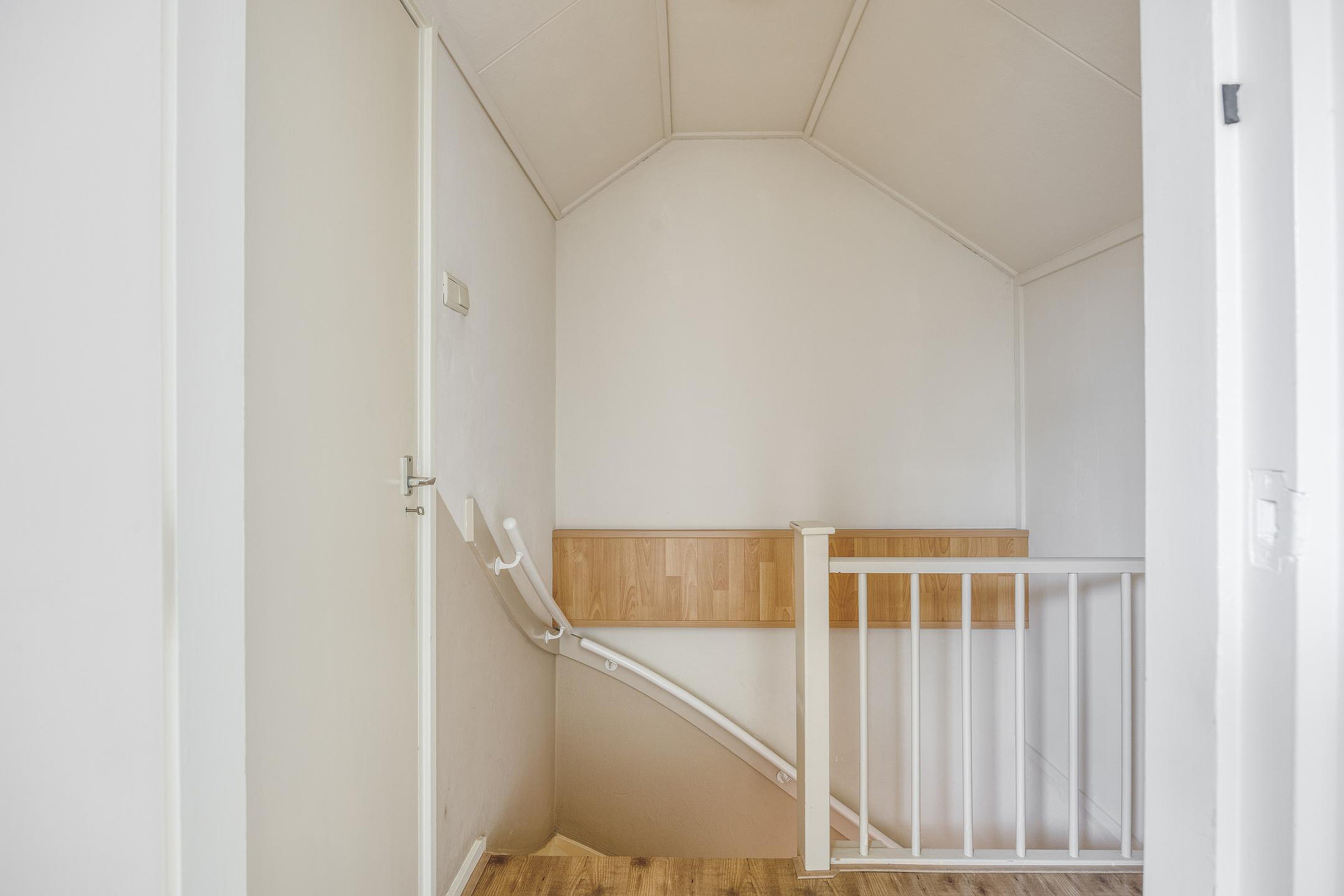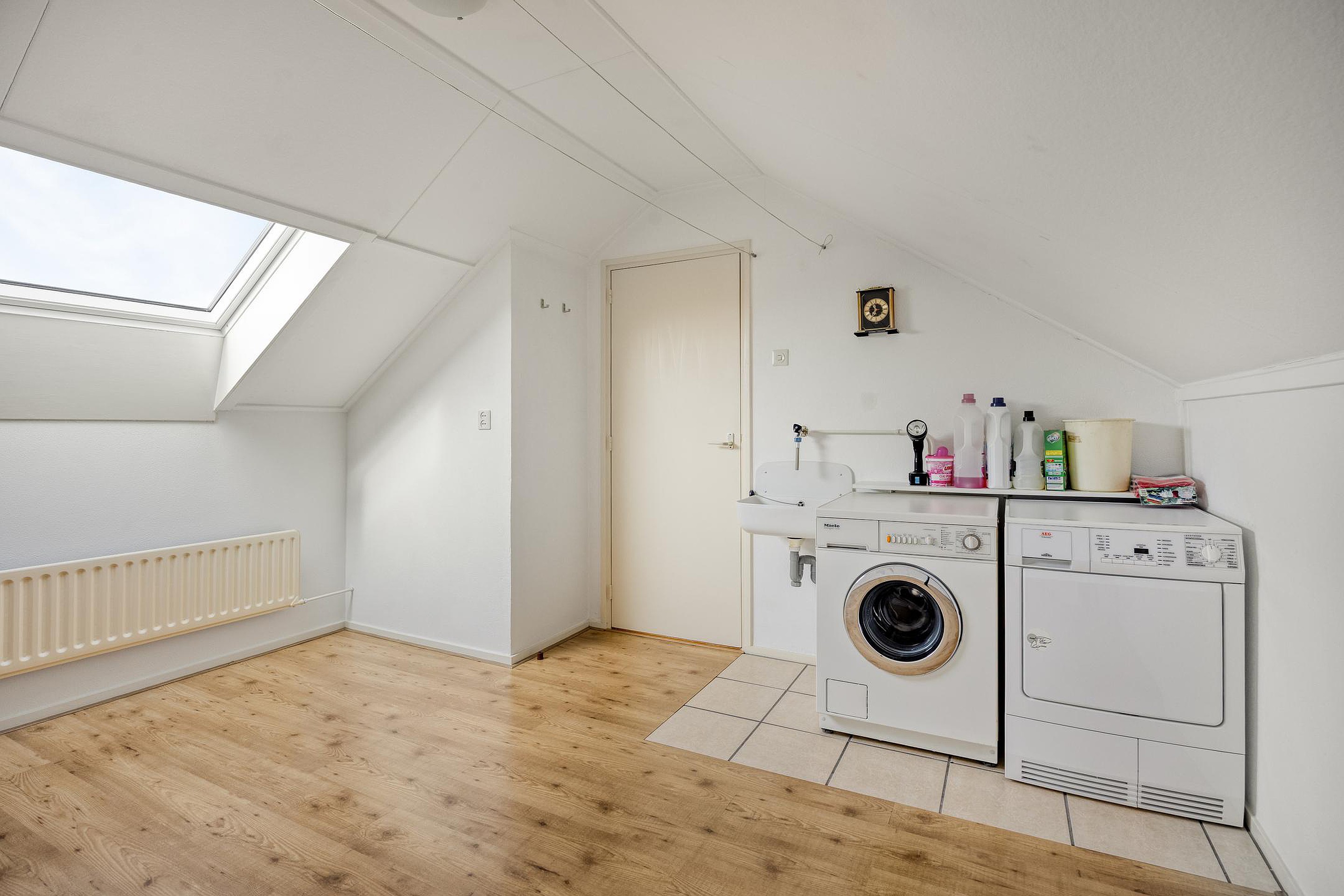 De vaste trap naar de 2e verdieping biedt nog een extra slaapkamer welke nu in gebruik is als was-en-droogkamer.