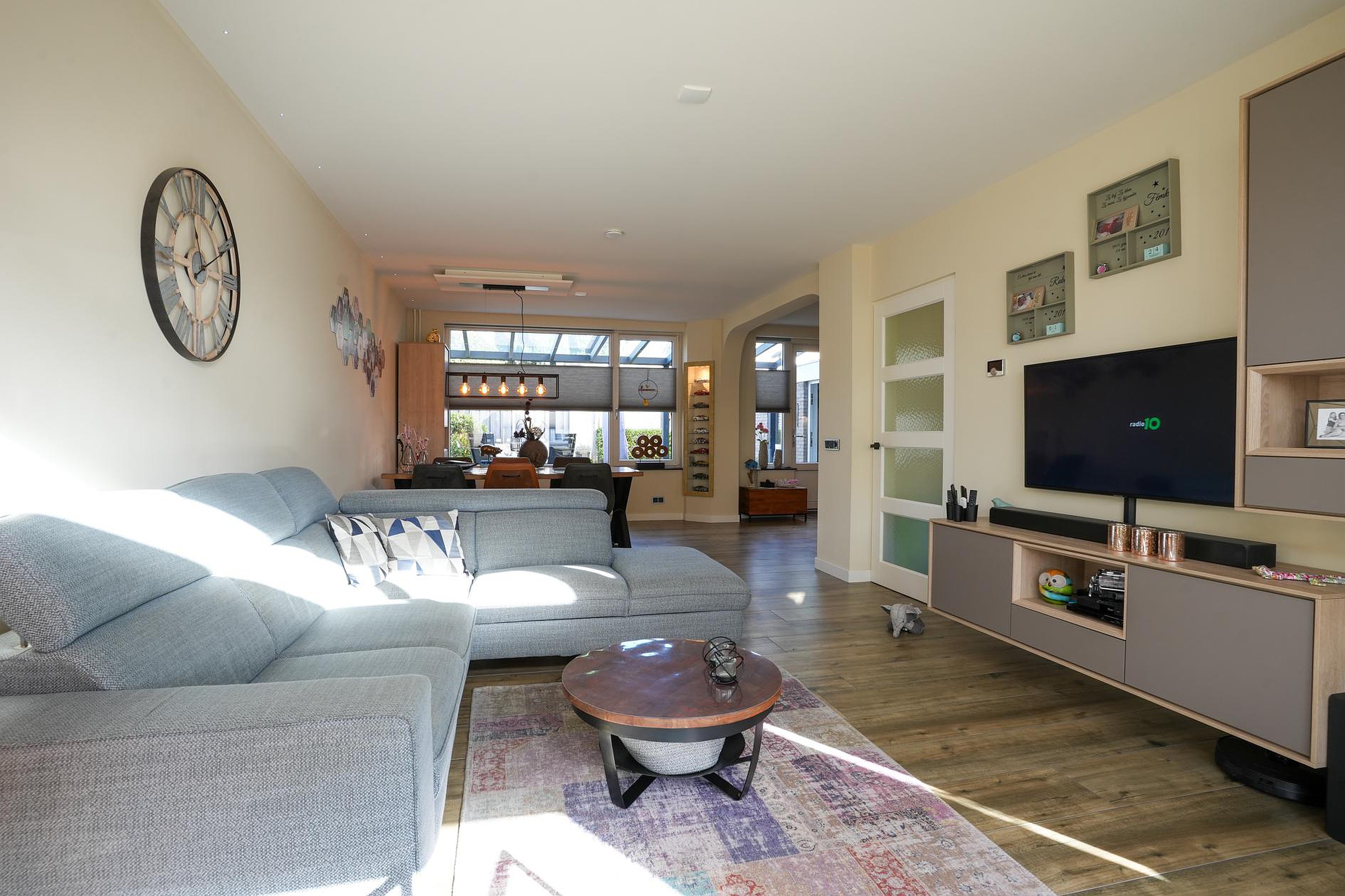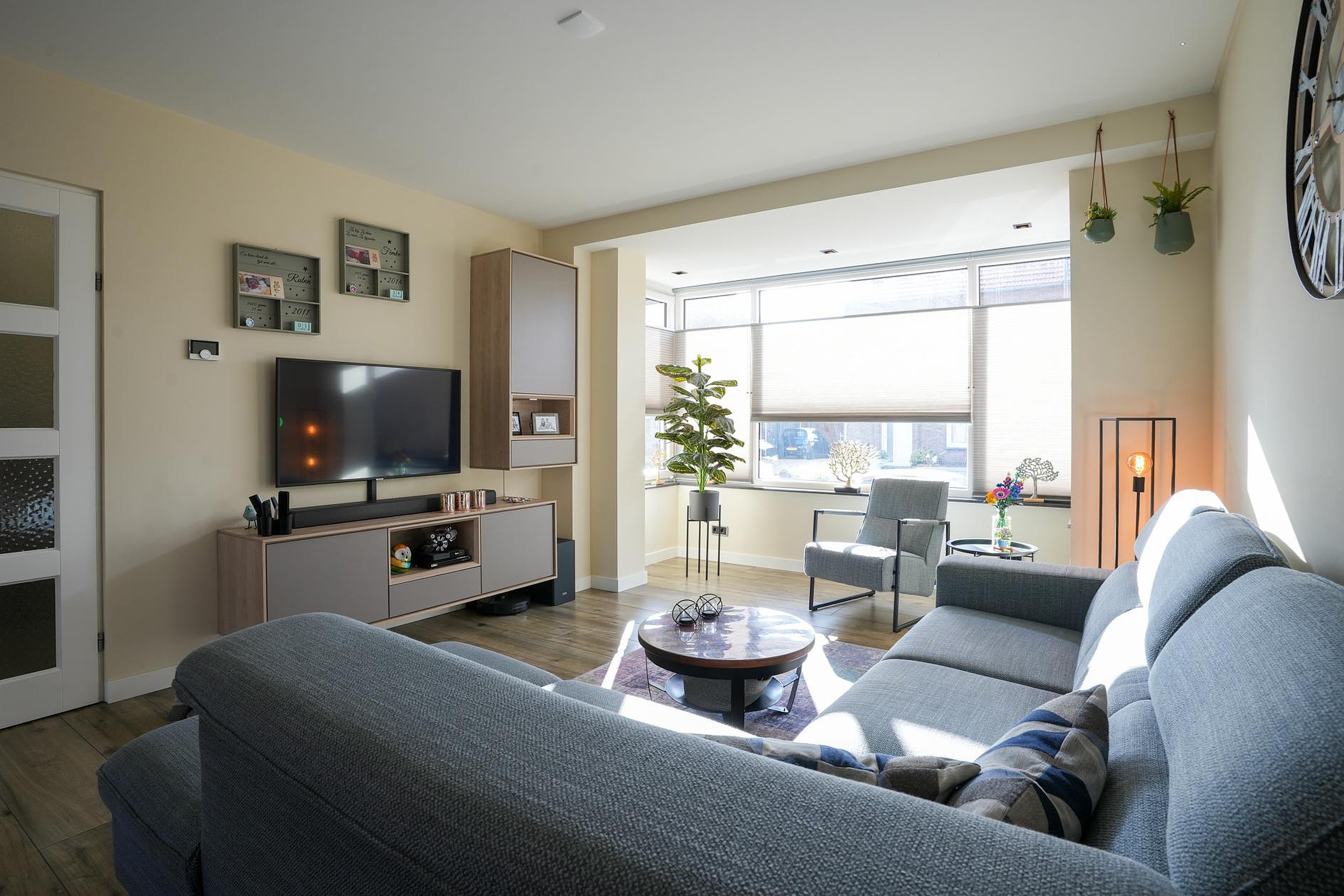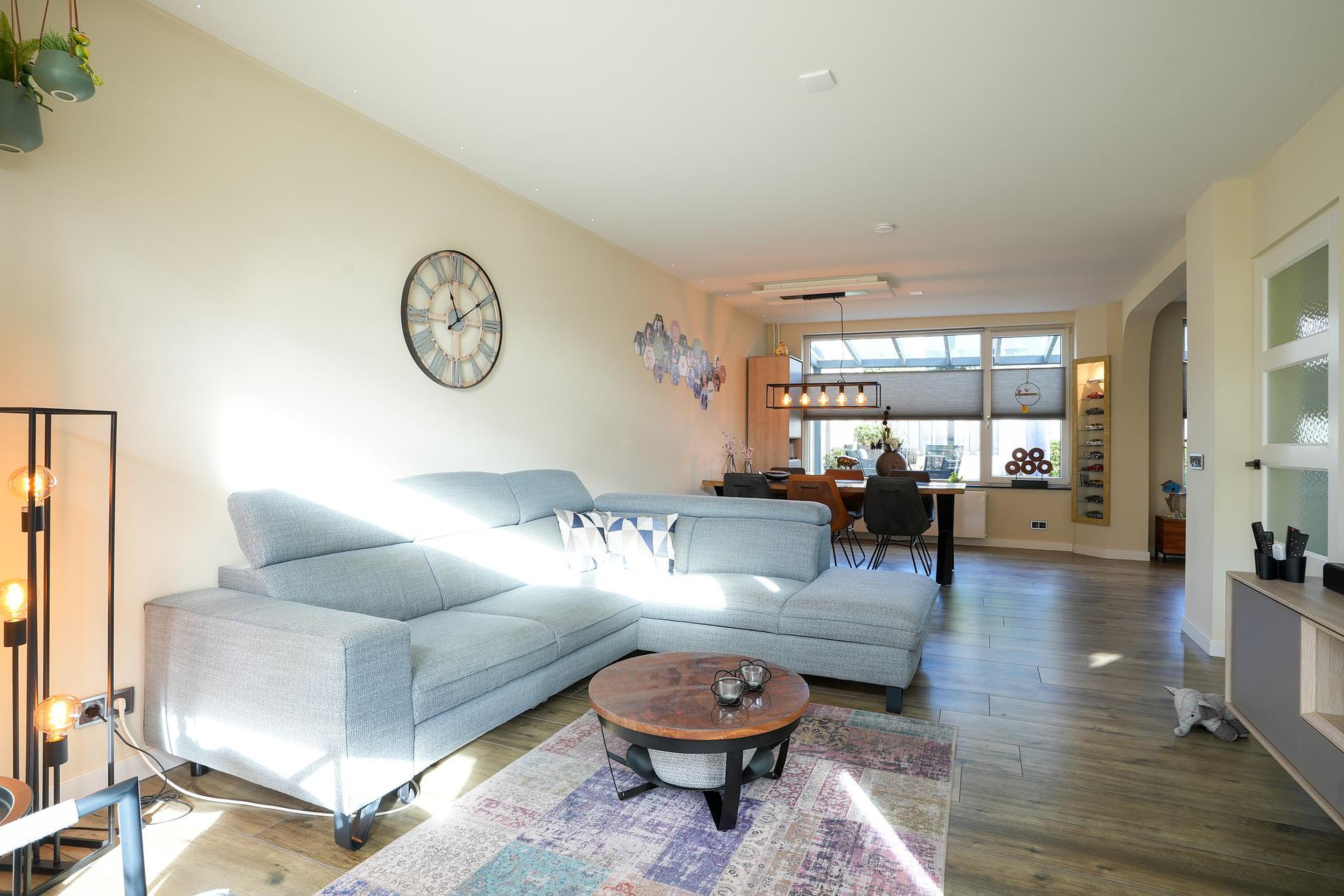 De woonkamer met erker heeft een oppervlakte van circa 31.8 m2, met het zitgedeelte aan de voorzijde en het eetgedeelte aan de achterzijde. Qua vloer-, wand- en plafondafwerking is de woonkamer direct klaar om te gaan inrichten.