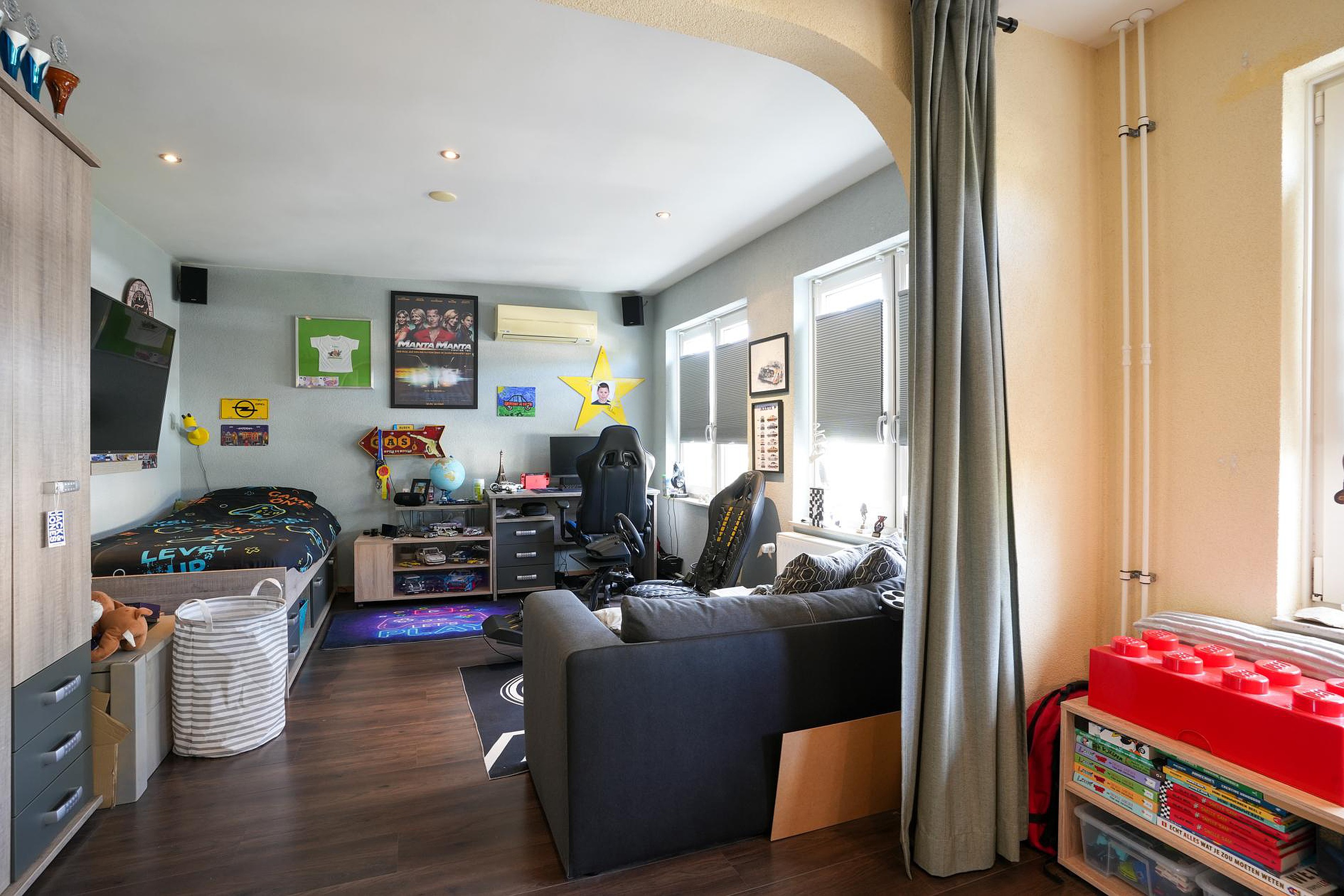 Aan de achterzijde zijn twee slaapkamers samengevoegd tot een zeer ruime kinderkamer (circa 24.6 m2), waarvan een deel in gebruik is als kleedruimte. De slaapkamer aan de voorzijde (circa 13.9 m2) is eveneens in gebruik als kinderkamer van ruim formaat.