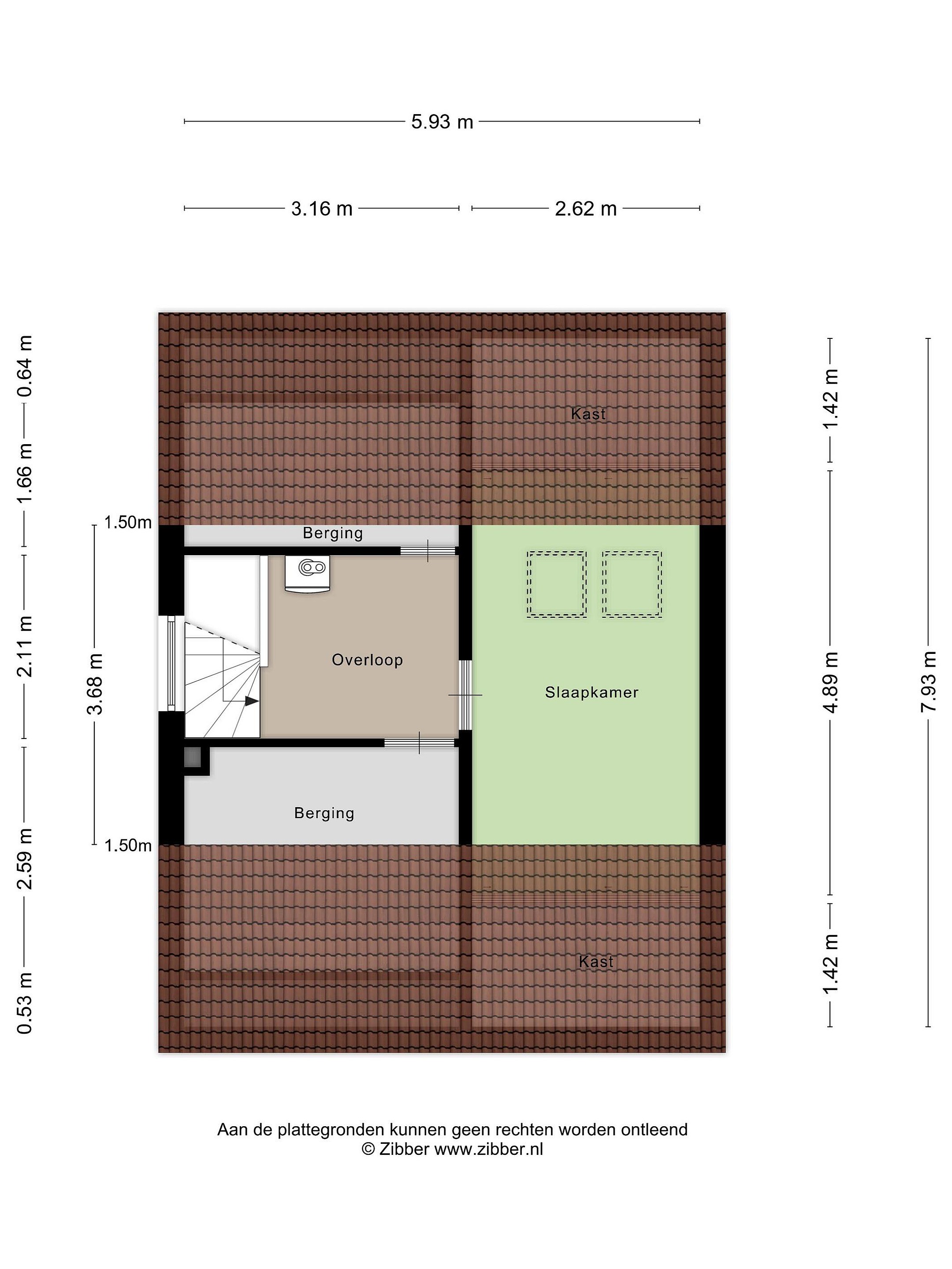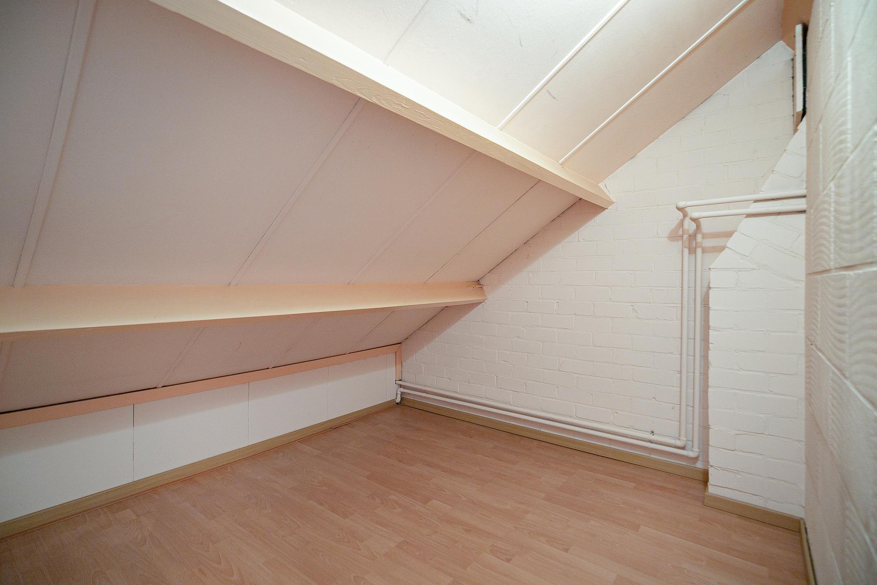 Tweede verdieping Via vaste trap bereikbare zolderverdieping met vierde slaapkamer, veel bergruimte achter de knieschotten en plaats voor werk- of hobbyruimte.