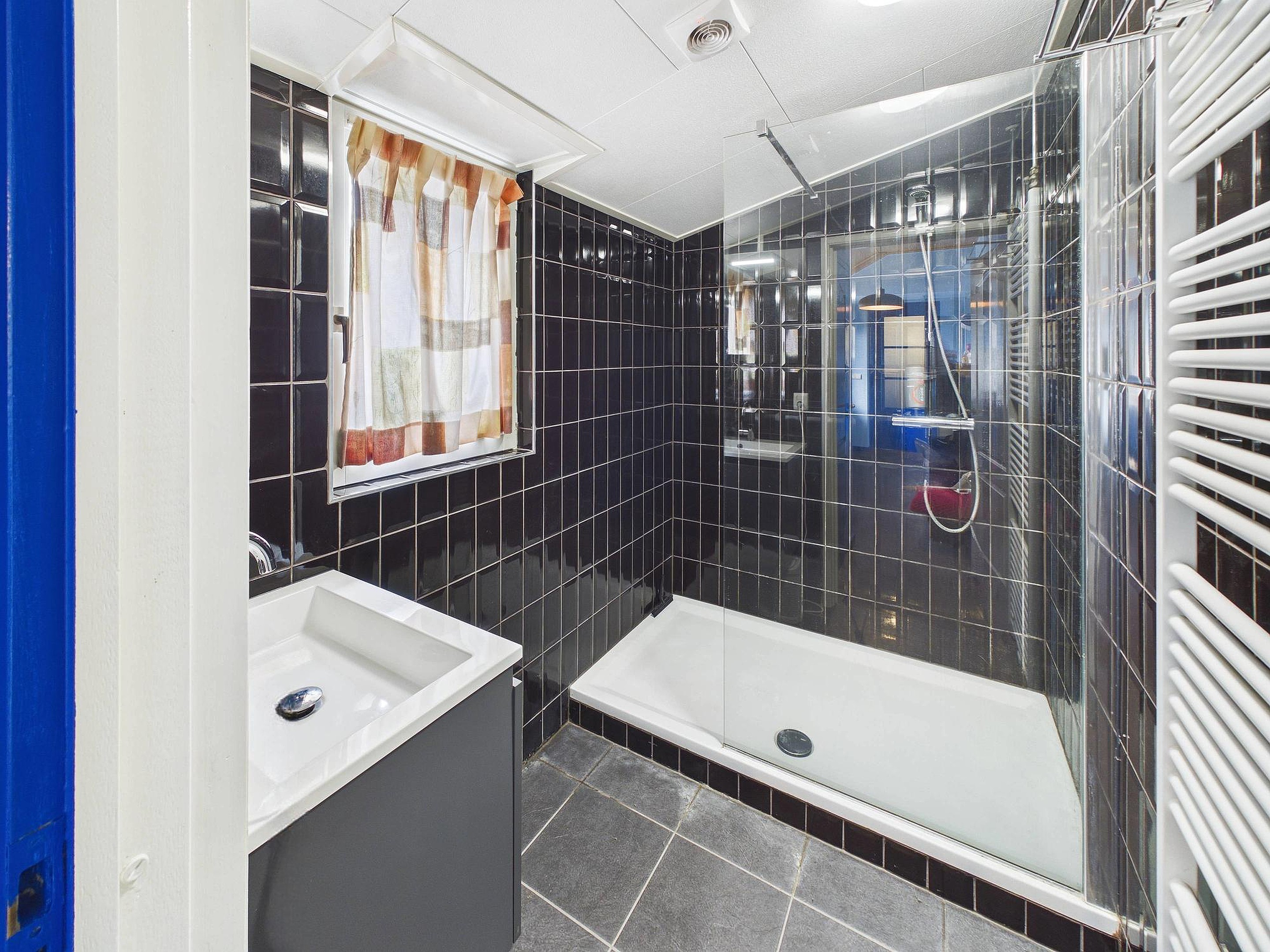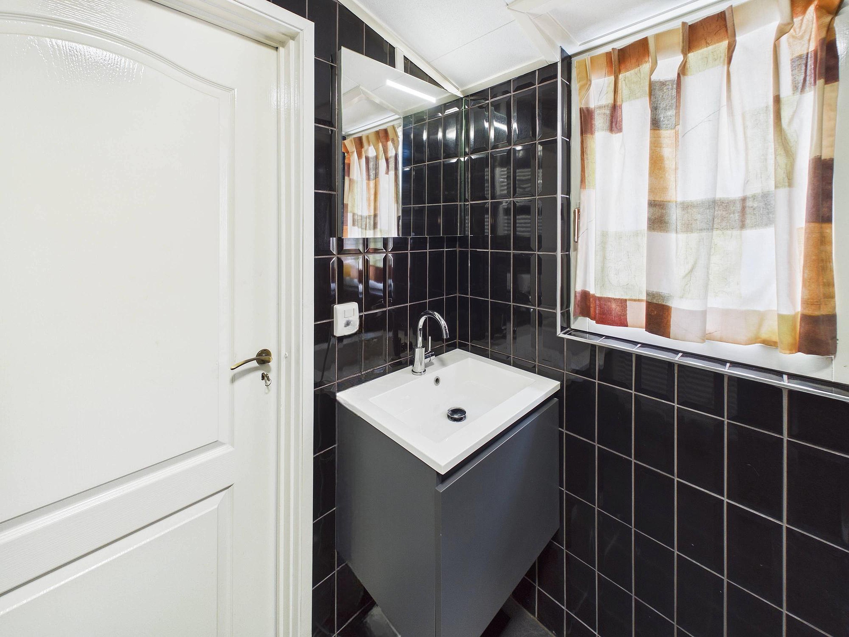 De woonkamer is voorzien van een laminaatvloer en de glazen openslaande deuren zorgen voor een fijne lichtinval. Vanuit de woonkamer bereik je de bijkeuken, het toilet en de volledig betegelde badkamer met inloopdouche, wastafel en designradiator. In de bijkeuken bevinden zich de aansluitingen voor wasmachine en droger en heb je directe toegang tot de tuin.