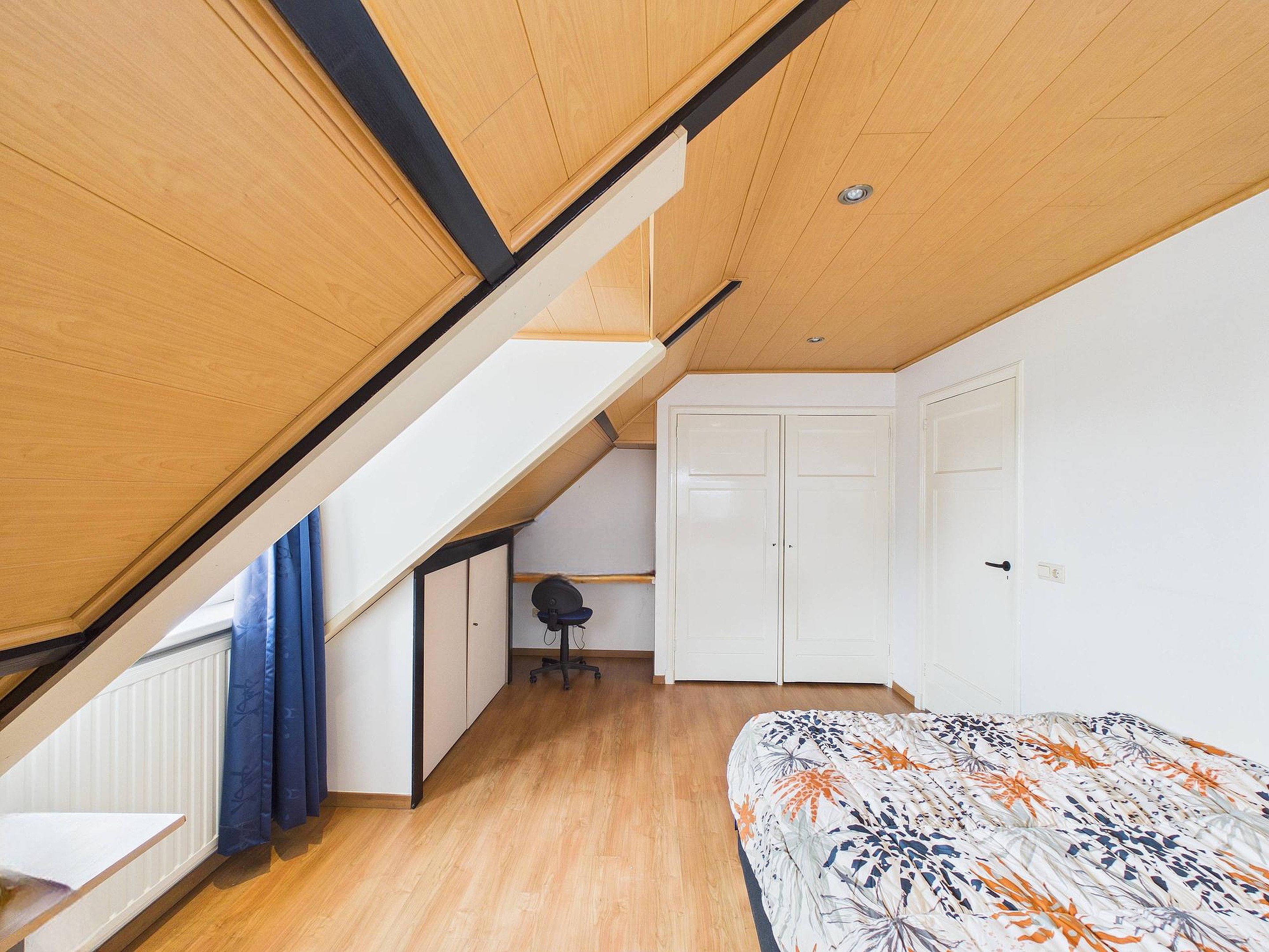 Eerste verdieping De overloop geeft toegang tot twee slaapkamers. Beide kamers zijn voorzien van een dakkapel, wat zorgt voor extra ruimte en licht. Op de overloop is een dakraam aanwezig en onder de schuine kanten zijn praktische opbergkasten gecreëerd.