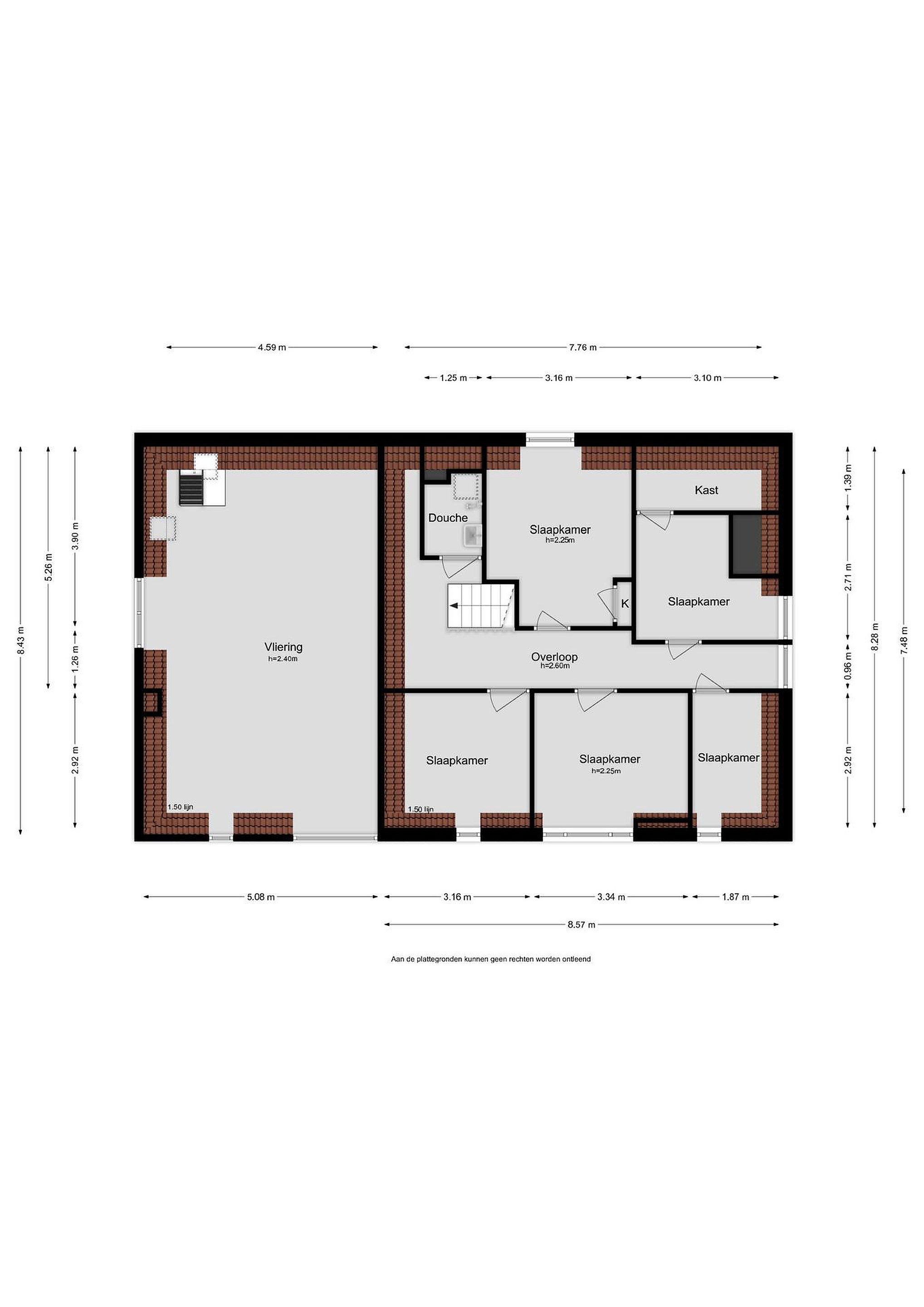 Eerste verdieping Via de trapopgang in de hal komen we op de riante verdieping, de overloop geeft toegang tot de maar liefst 5 slaapkamers en de douche met wastafel.