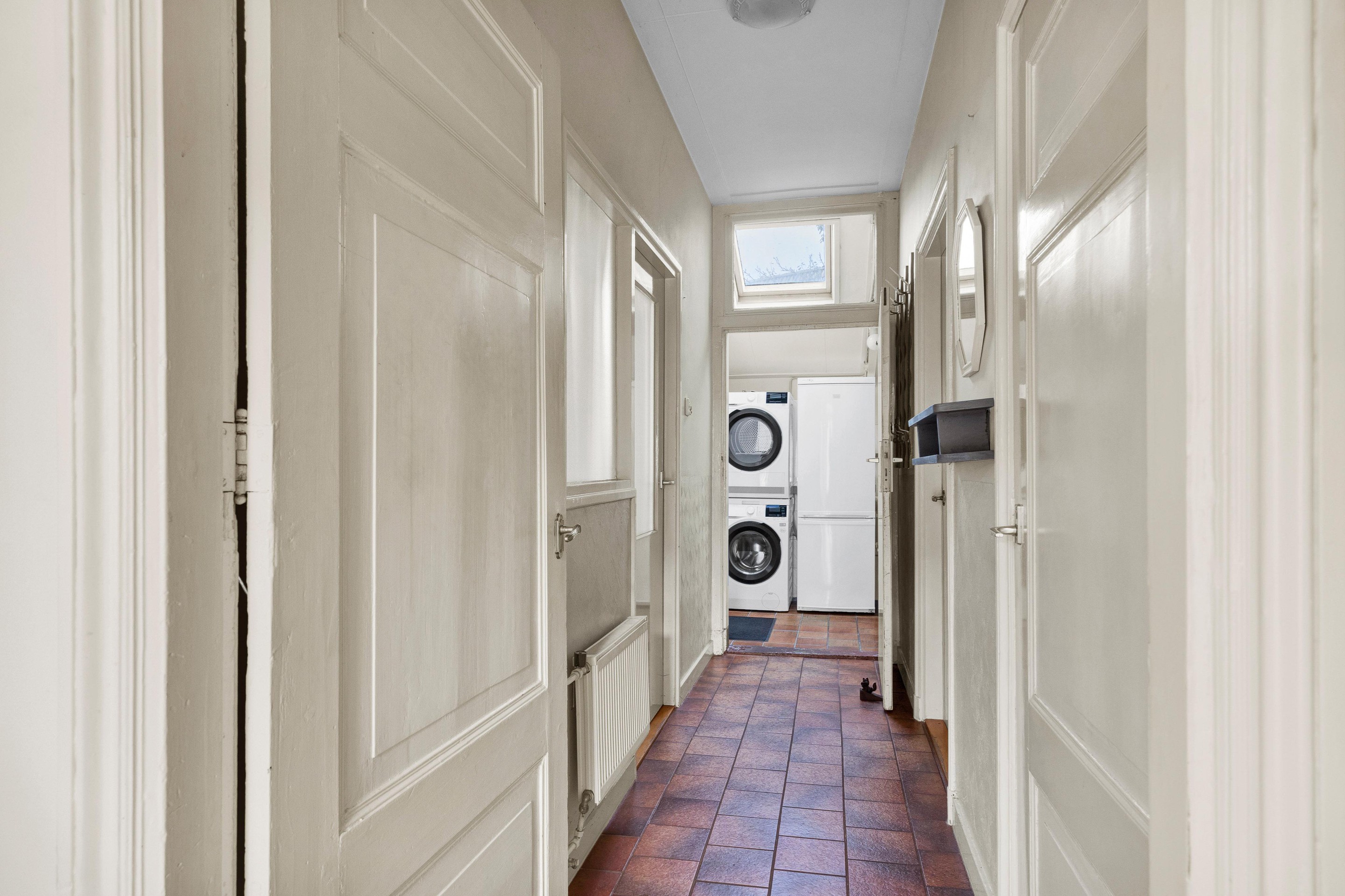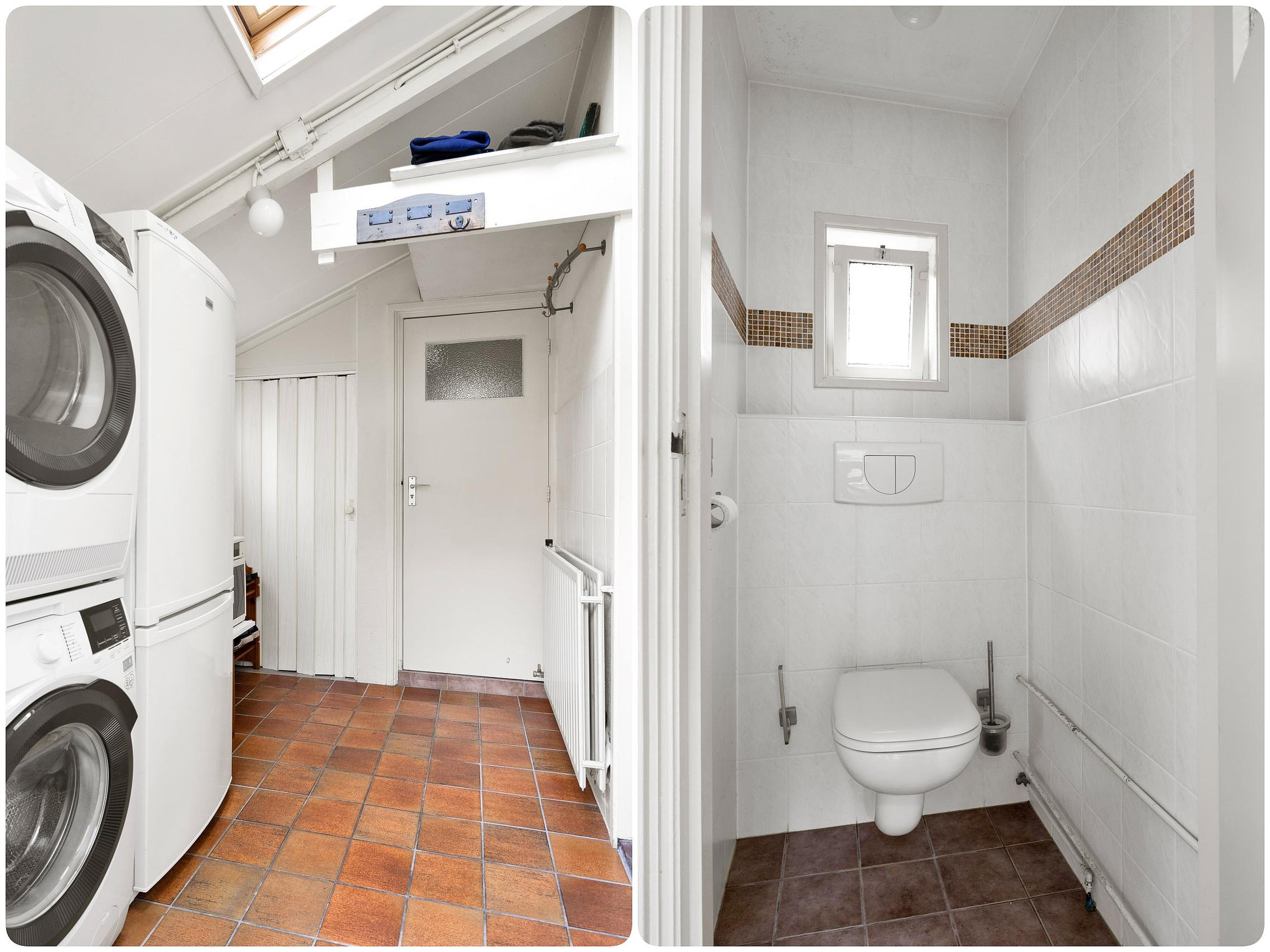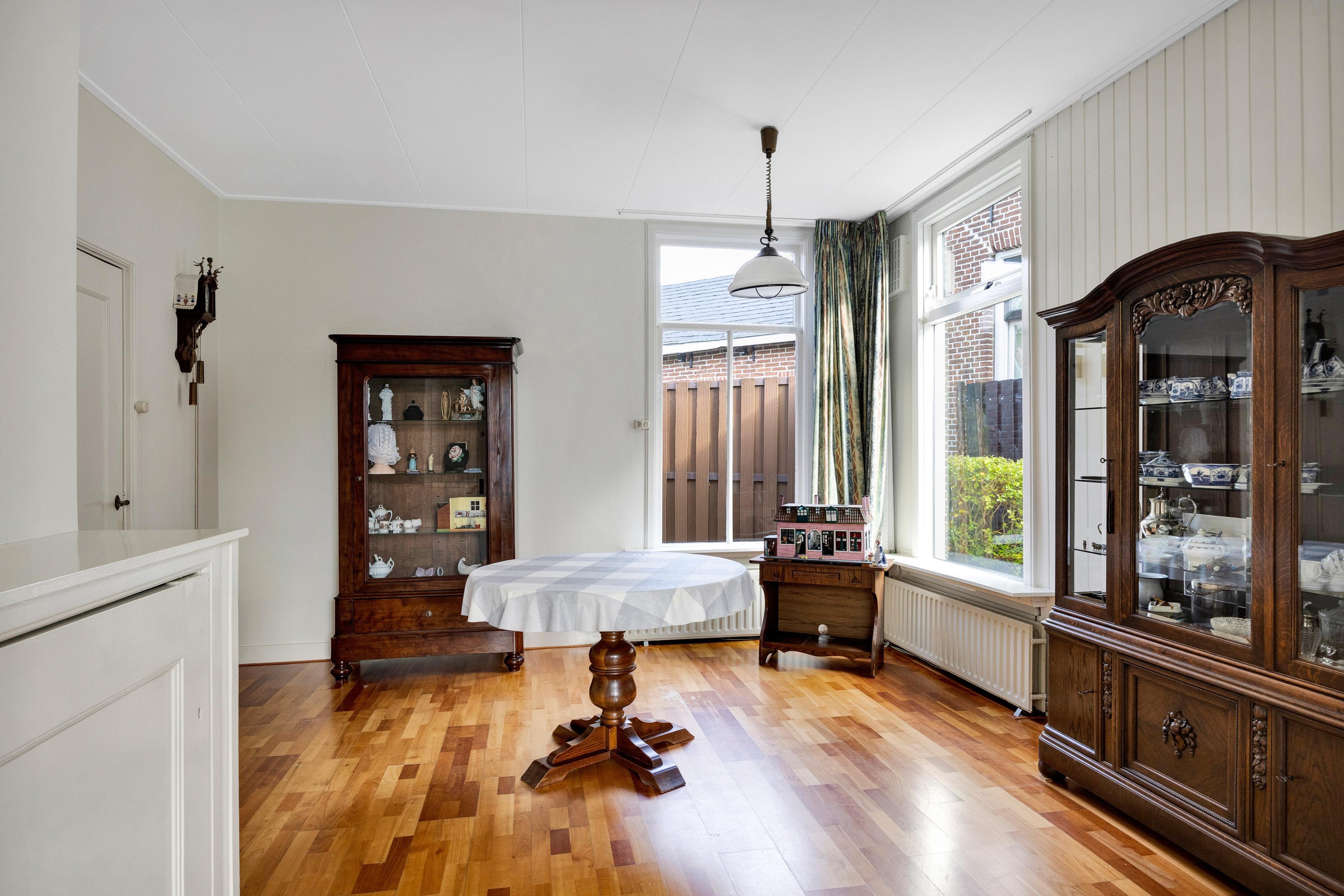 We betreden de woning via de voordeur en komen in de entree die toegang biedt tot de woonkeuken, deze is gesitueerd aan de voorzijde en heeft een grote hoek keukenopstelling in landelijke stijl welke voorzien is van diverse inbouwapparatuur zoals; koelkast, gaskookplaat, afzuigkap, vaatwasser en oven. Er is tevens vloerverwarming in de keuken. Rechts bevindt zich de woonkamer en suite, de prachtige authentieke schuifdeuren met glas-in-lood scheiden de voorkamer van de achterkamer, hier bevindt zich ook de kelder. Via de achterkamer maar ook via de woonkeuken is er toegang tot een hal met toegang tot een slaapkamer met wastafelmeubel, een bijkeuken met aansluiting voor de wasmachine en droger en het toilet. Via de bijkeuken is er toegang tot de achtertuin.