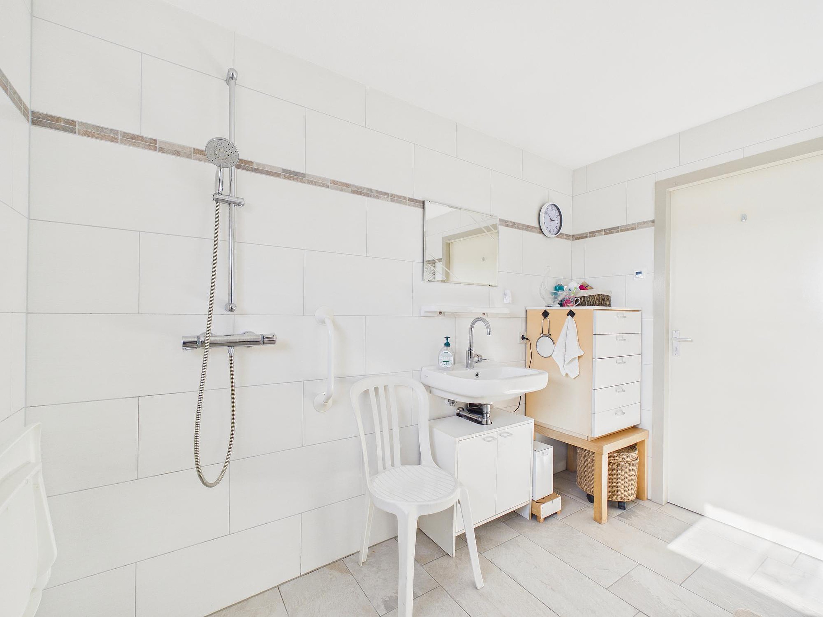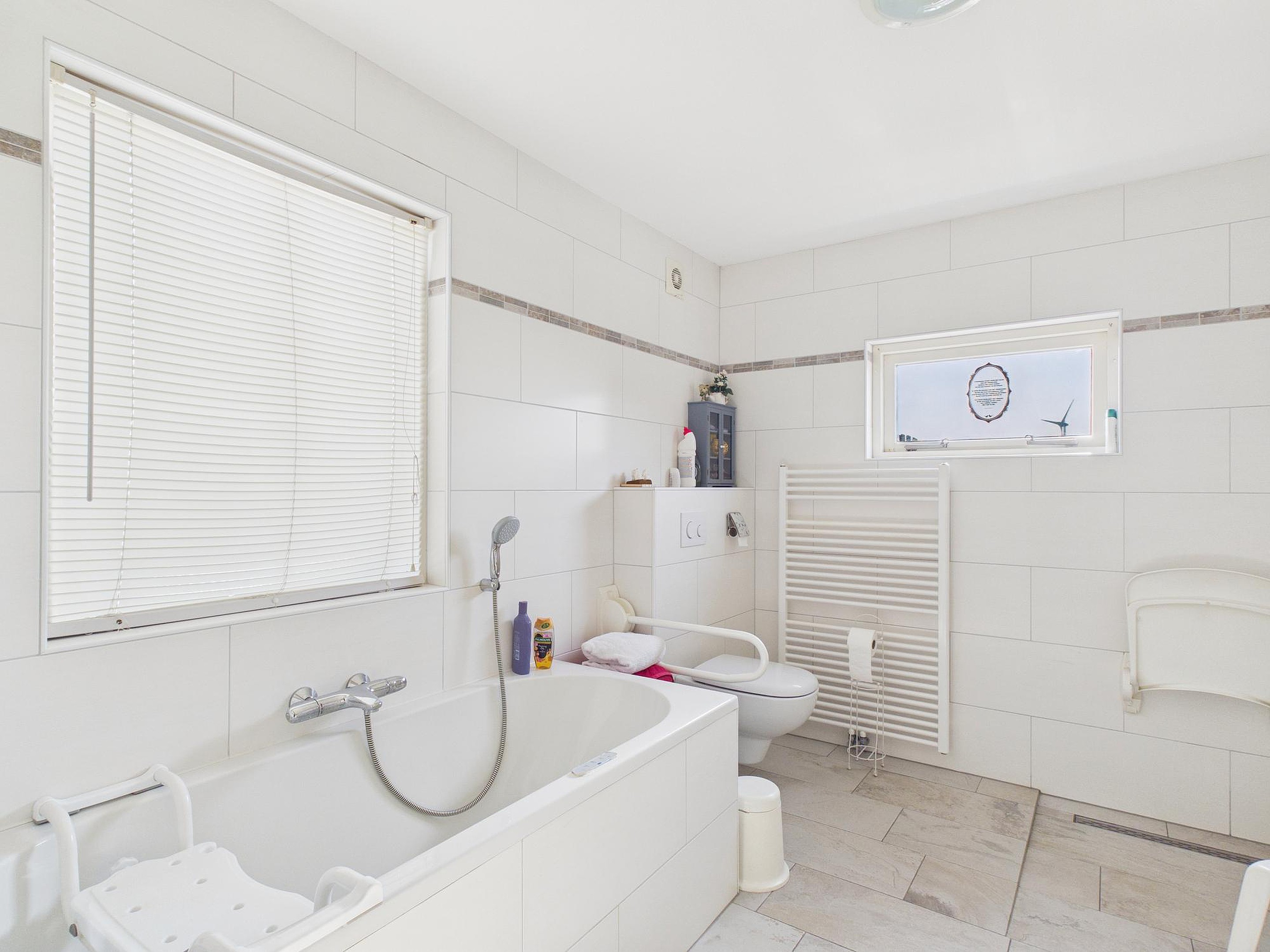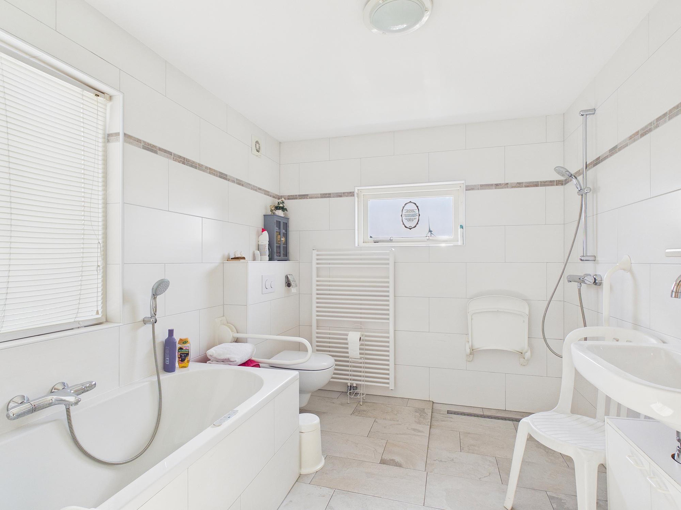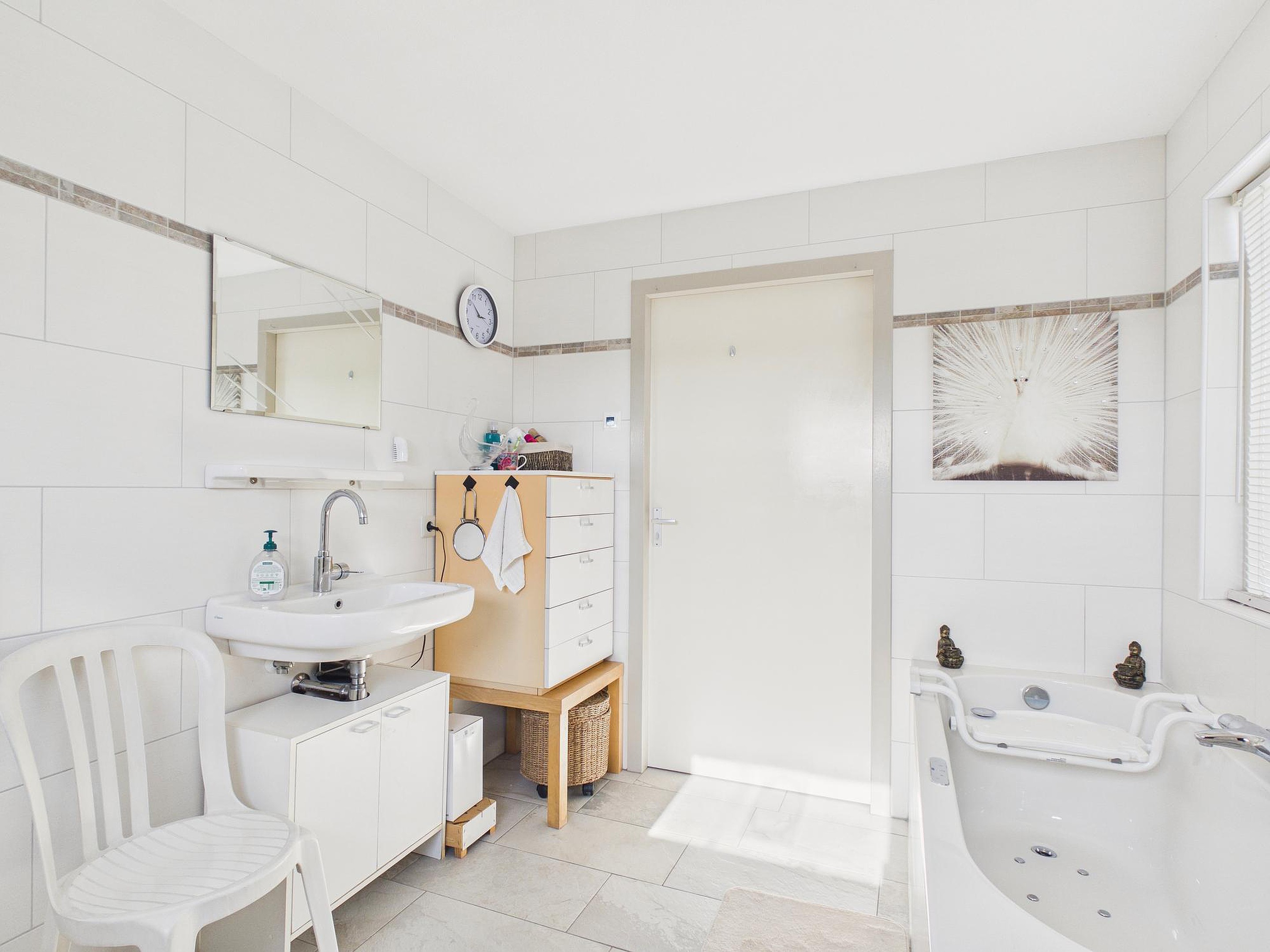 De indeling maakt deze woning bovendien bijzonder praktisch. Er zijn vier slaapkamers, waarvan één op de begane grond. Dit biedt volop mogelijkheden: gelijkvloers wonen, een fijne logeerkamer, kantoor aan huis of een hobbyruimte. Ook de aanwezigheid van een badkamer op de begane grond met ligbad (whirlpool), douche, toilet en wastafel draagt bij aan het comfort. Op de eerste verdieping bevinden zich nog drie slaapkamers en een tweede badkamer met douchecabine, toilet en wastafel — ideaal voor gezinnen of gasten.