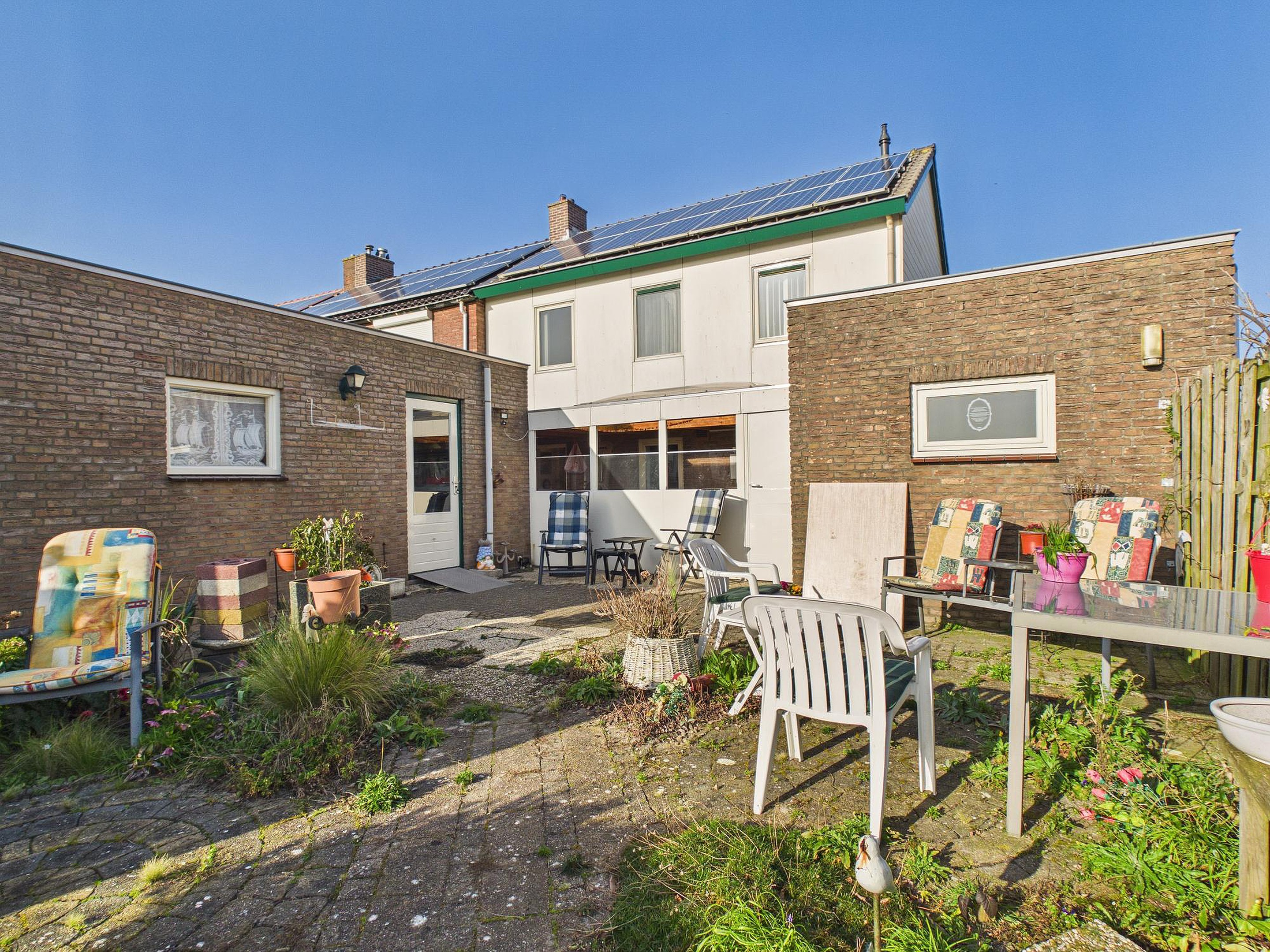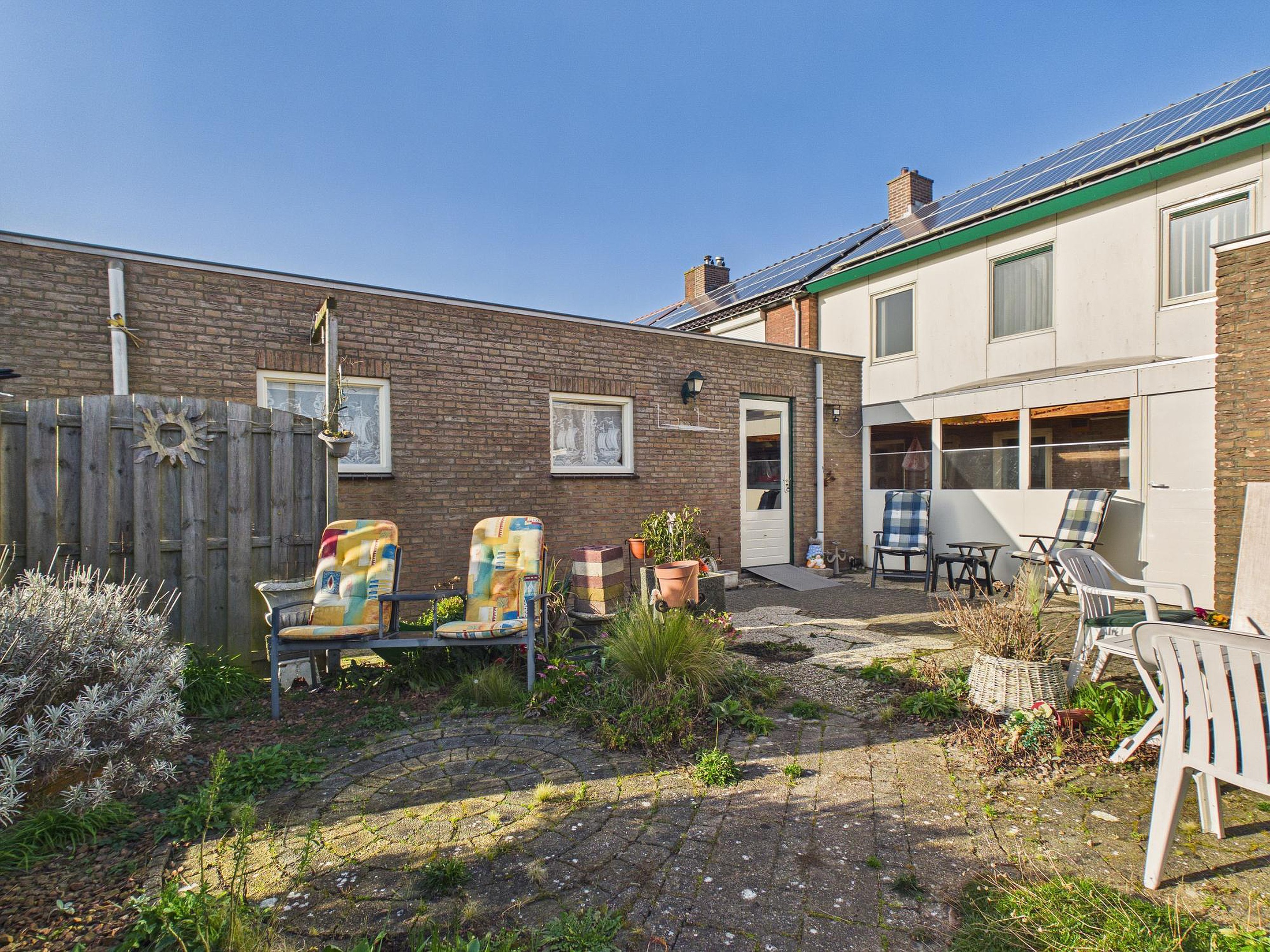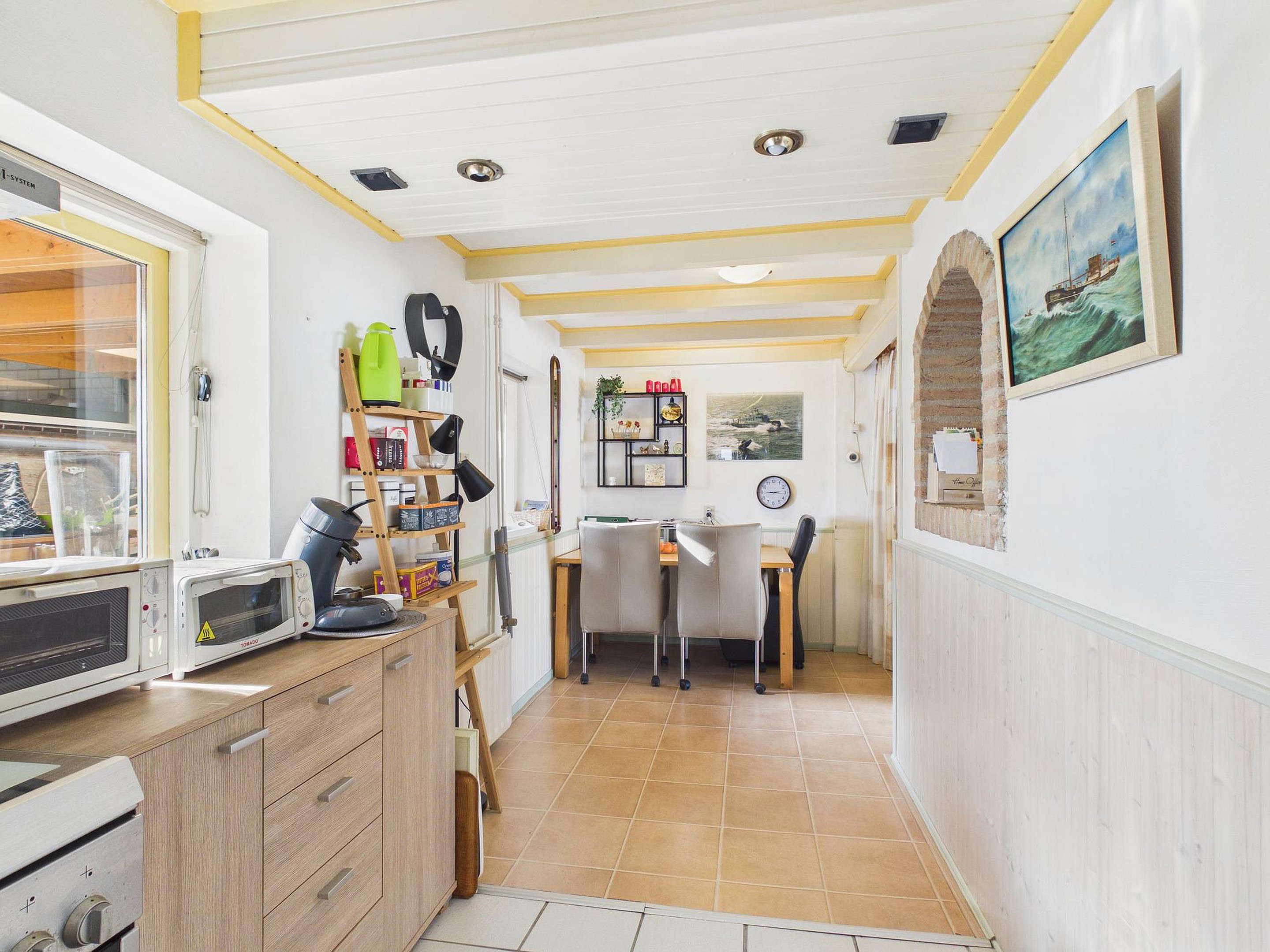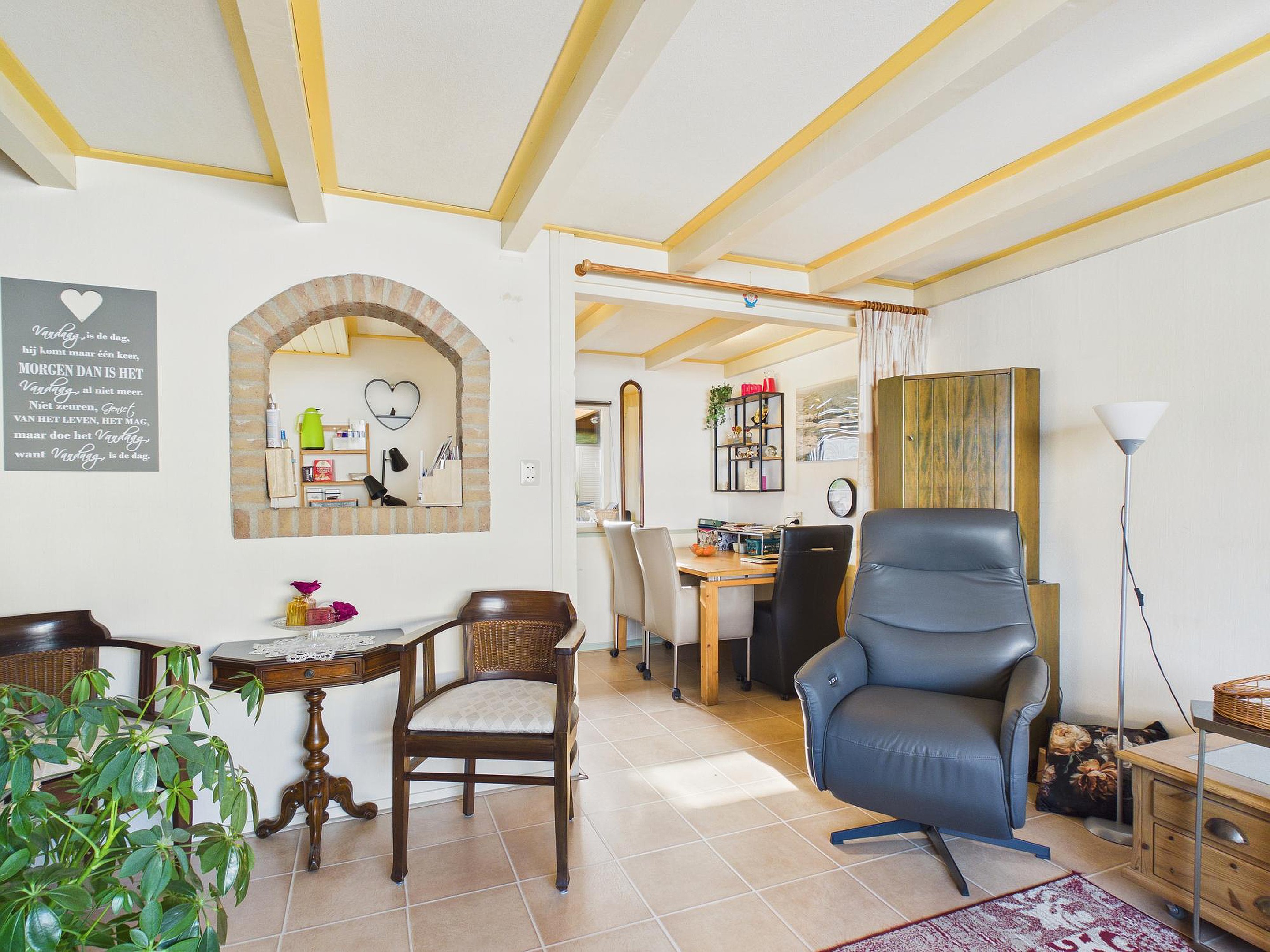 Een bijzonder pluspunt is de aangebouwde, afsluitbare overkapping met lichtkoepel. Dit is zo’n plek die je direct in gedachten al gaat gebruiken: in het vroege voorjaar met de eerste zonnestralen, op lange nazomeravonden of juist knus in het najaar en de winter. Een verlengstuk van de woning, waar binnen en buiten op een natuurlijke manier in elkaar overlopen.