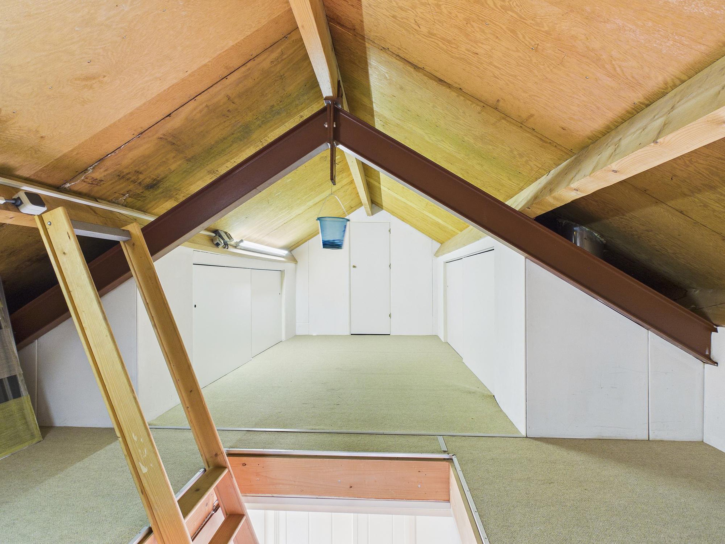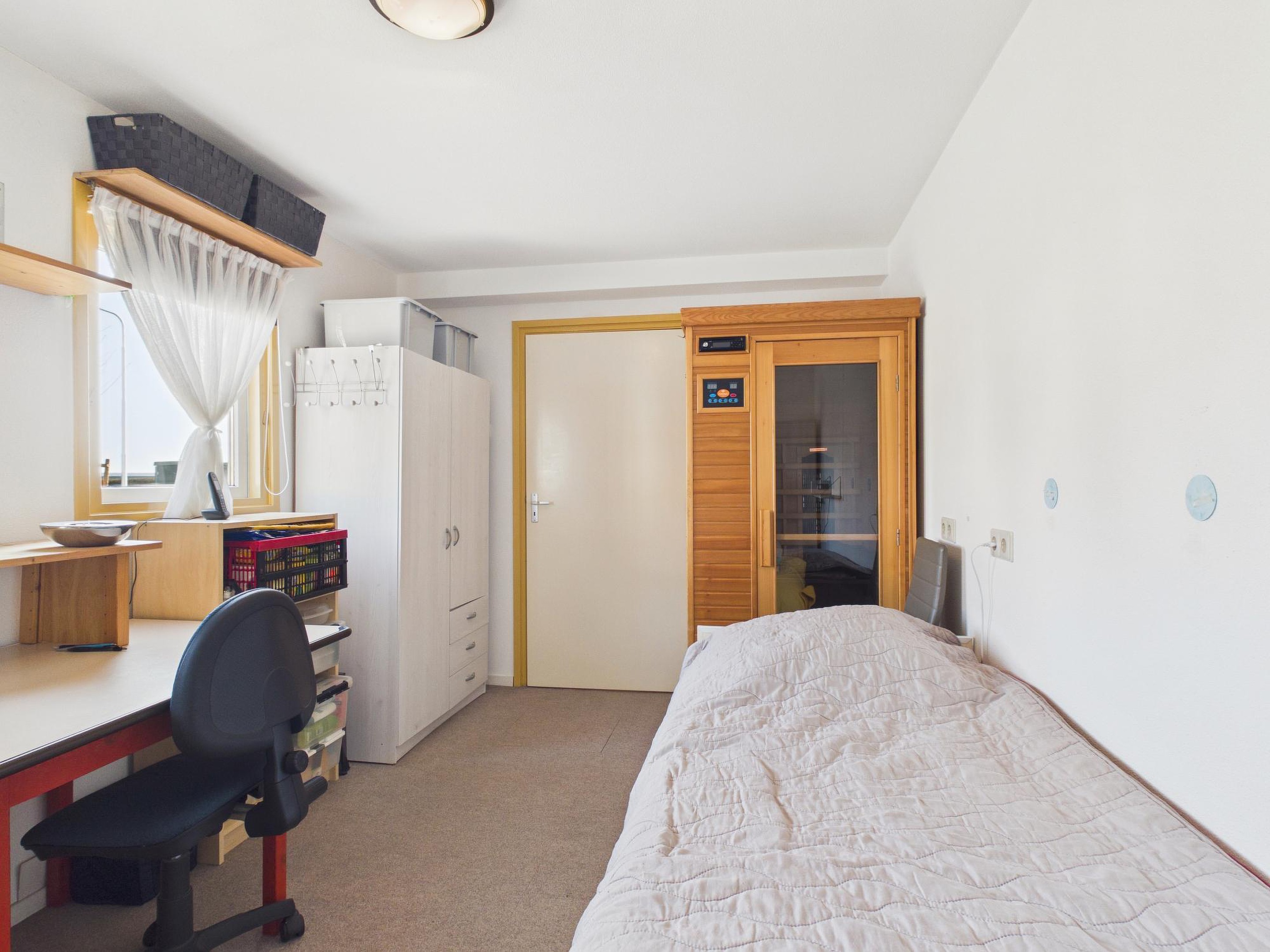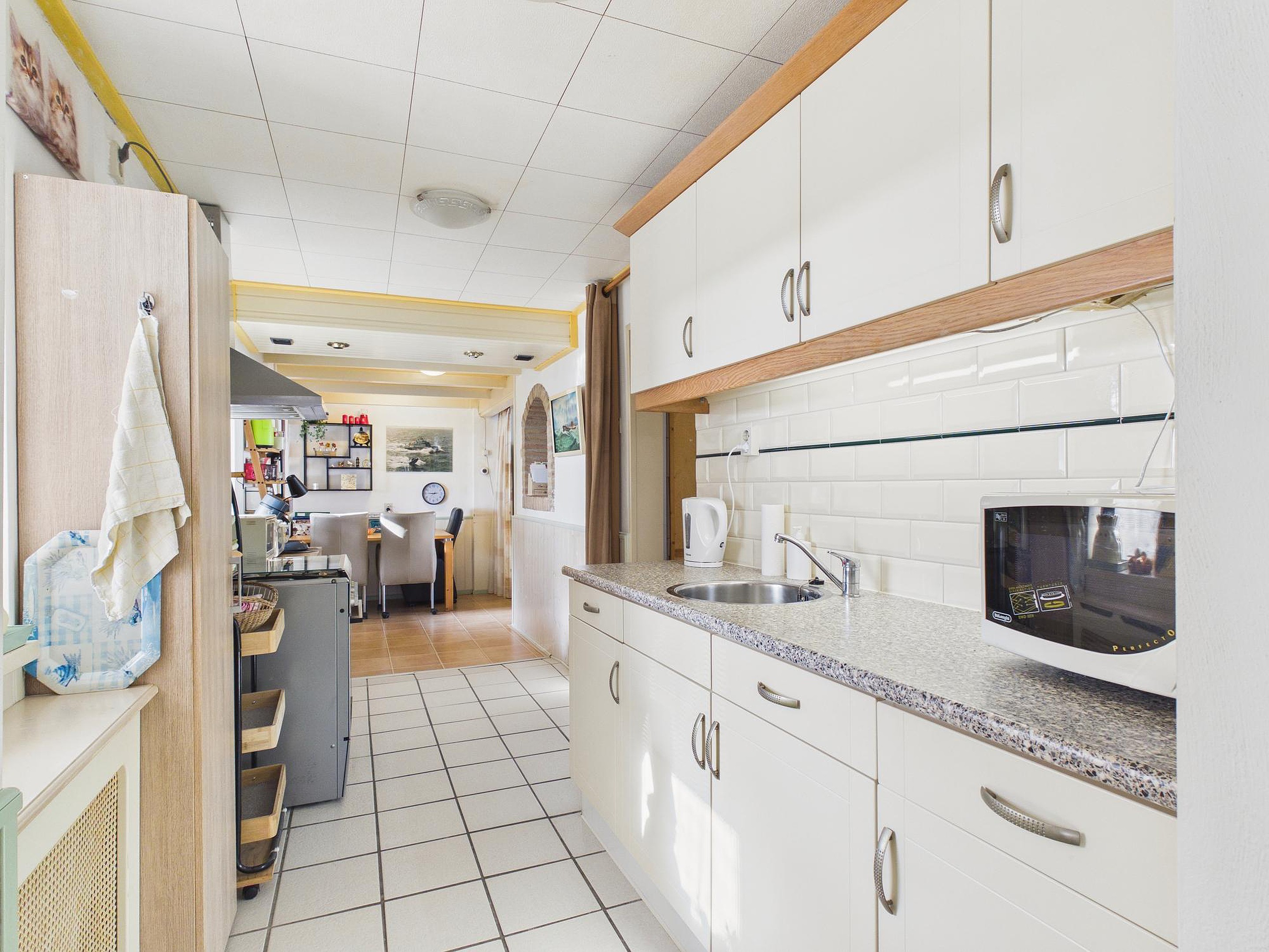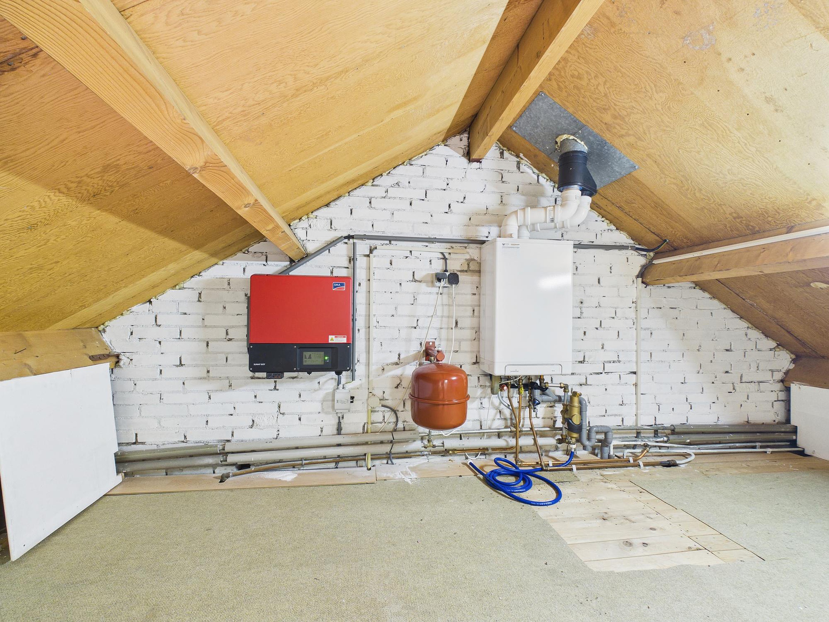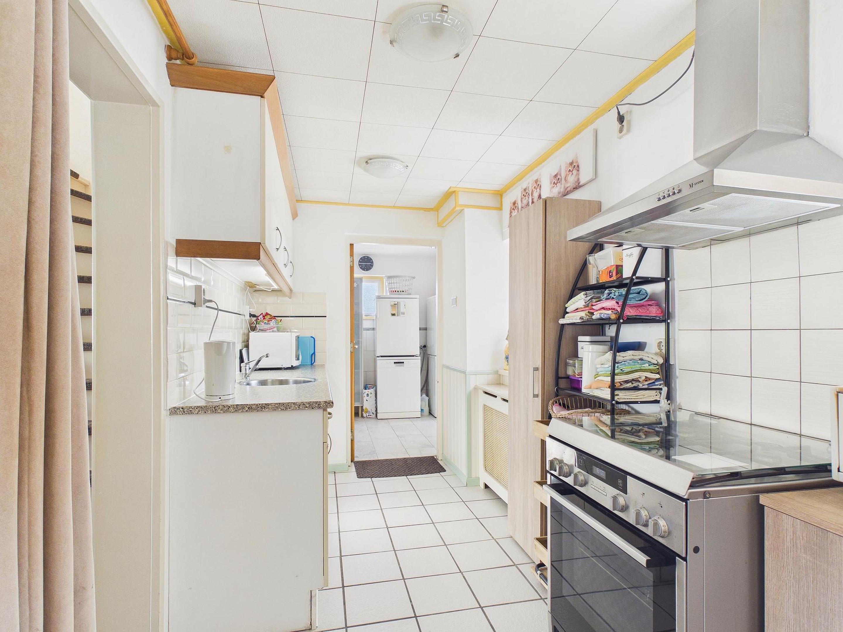 Verder beschikt de woning over een werkkamer/hal met trapopgang, een praktische bijkeuken met opstelplaats voor wasapparatuur en een via vlizotrap bereikbare bergzolder met de opstelplaats van de cv-ketel en de omvormer van de 14 zonnepanelen (Energielabel B).