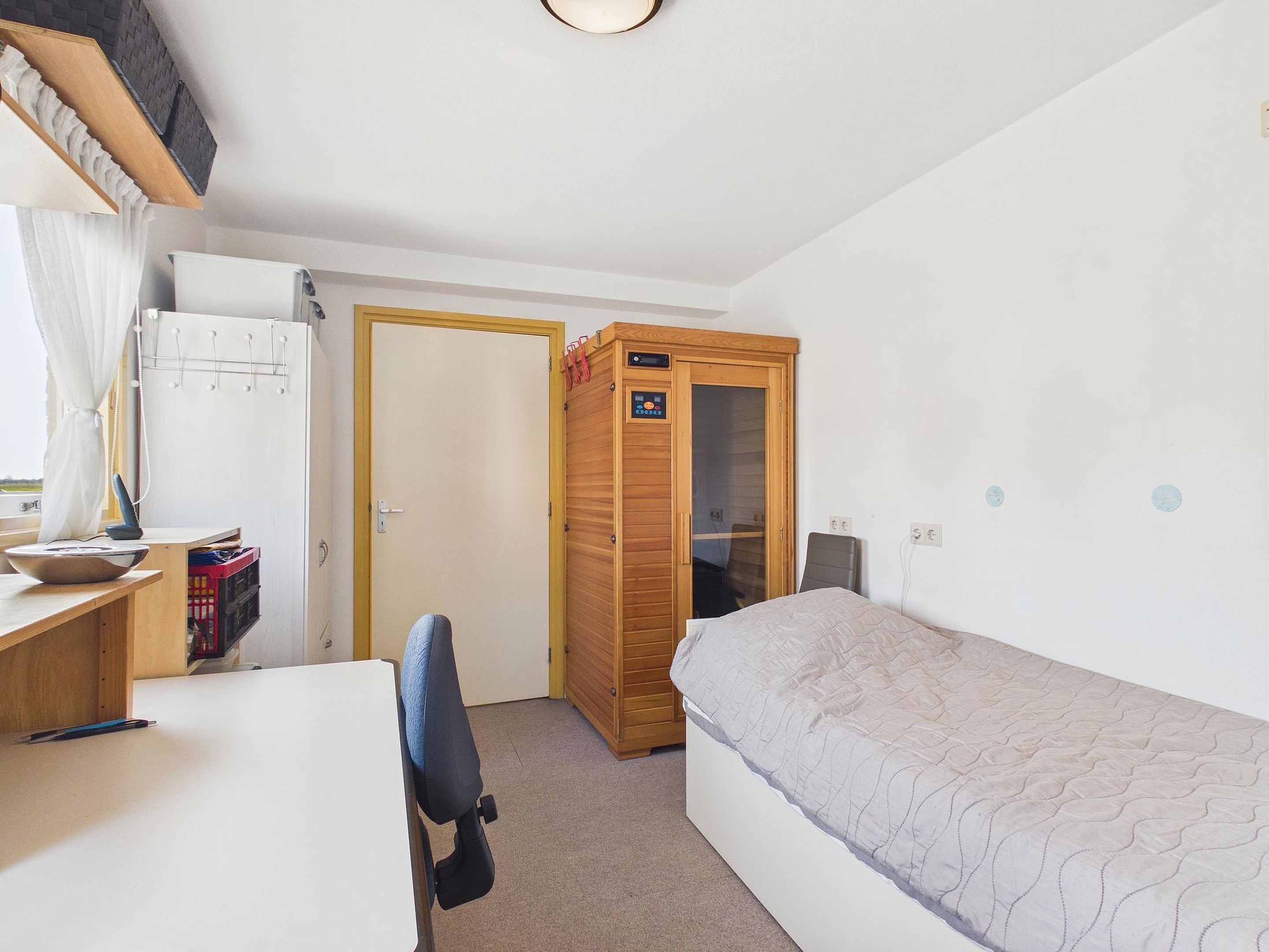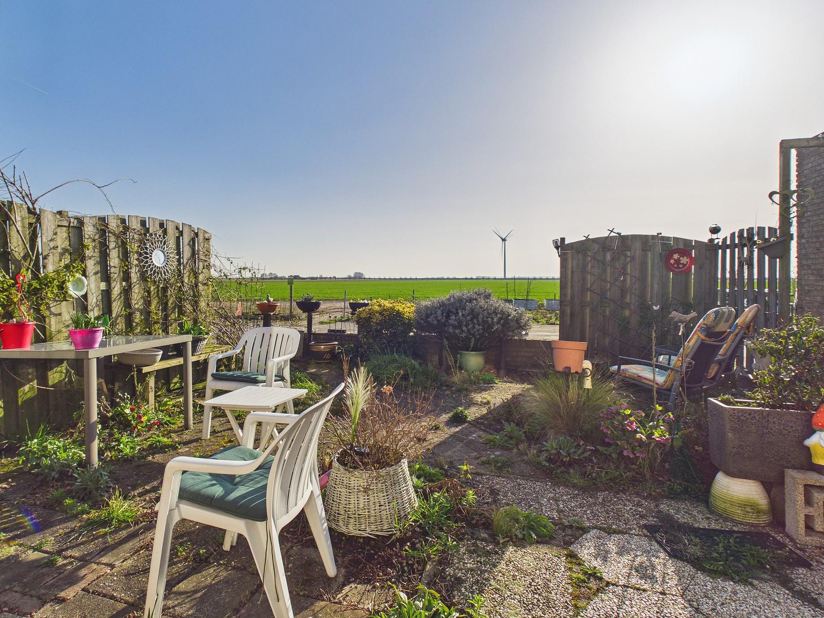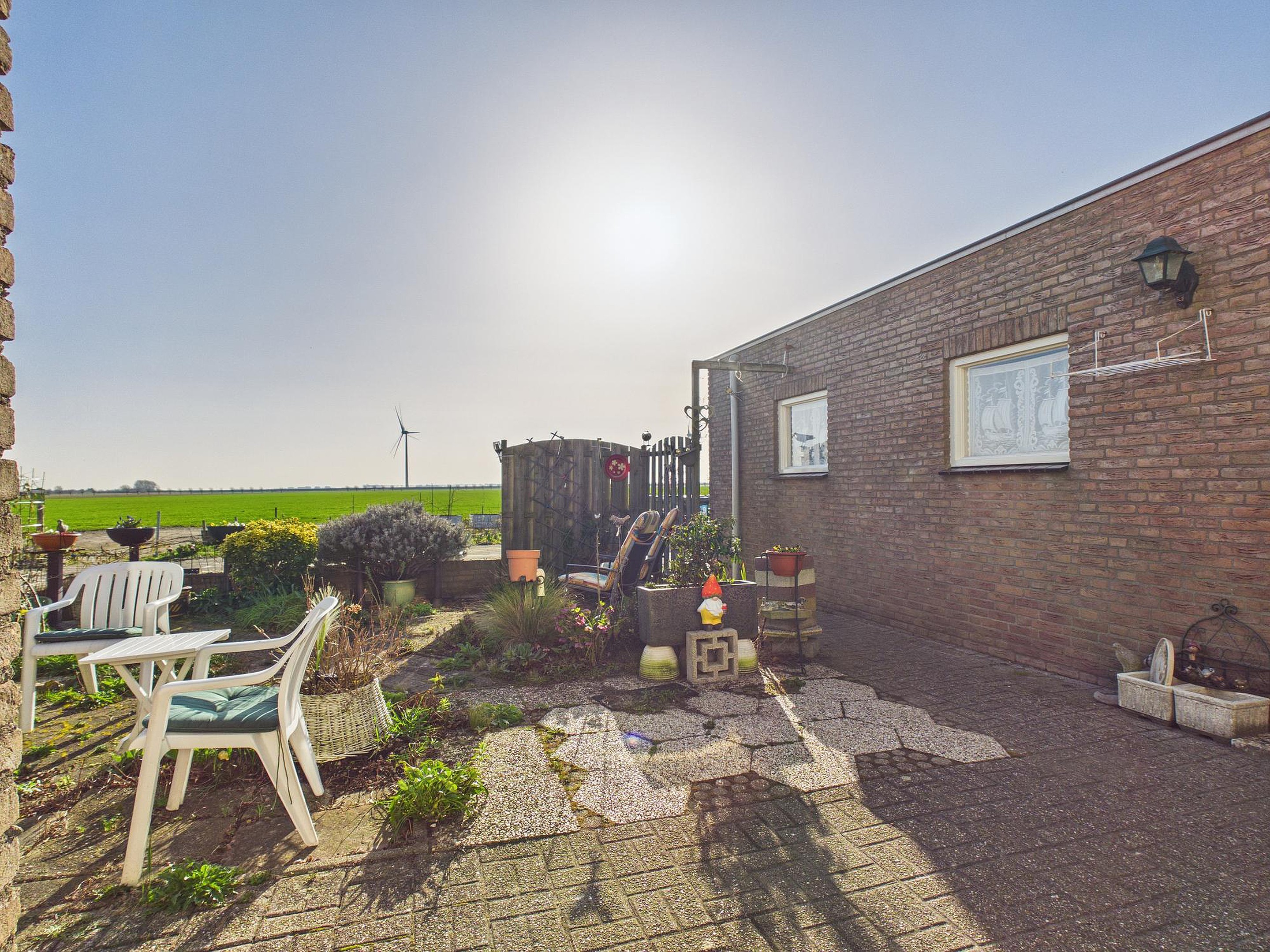 Buiten wacht een heerlijke zonnige tuin op het zuidwesten, met volop privacy en een vrij uitzicht over de landerijen. Hier ervaar je de rust en ruimte die deze plek zo bijzonder maken. Daarnaast is er voldoende ruimte voor een camper of een extra parkeerplaats op eigen terrein, en de royale garage maakt het geheel compleet.
