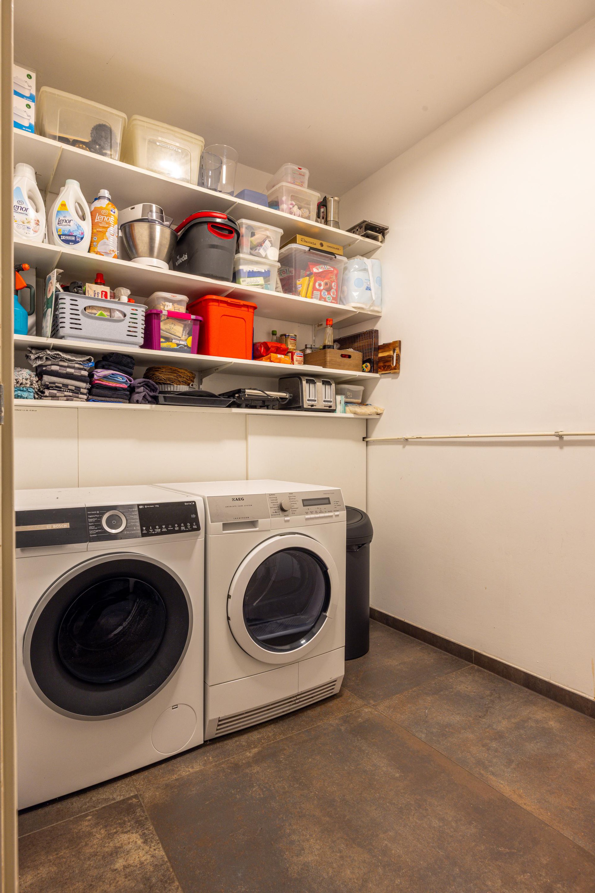 Via een wenteltrap is er een directe verbinding met de wellnessruimte op de begane grond, wat zorgt voor een praktische en bijzondere indeling. De open keuken sluit hier naadloos op aan en beschikt over voldoende kastruimte, waardoor deze verdieping als een compleet en zelfstandig geheel te gebruiken is.
