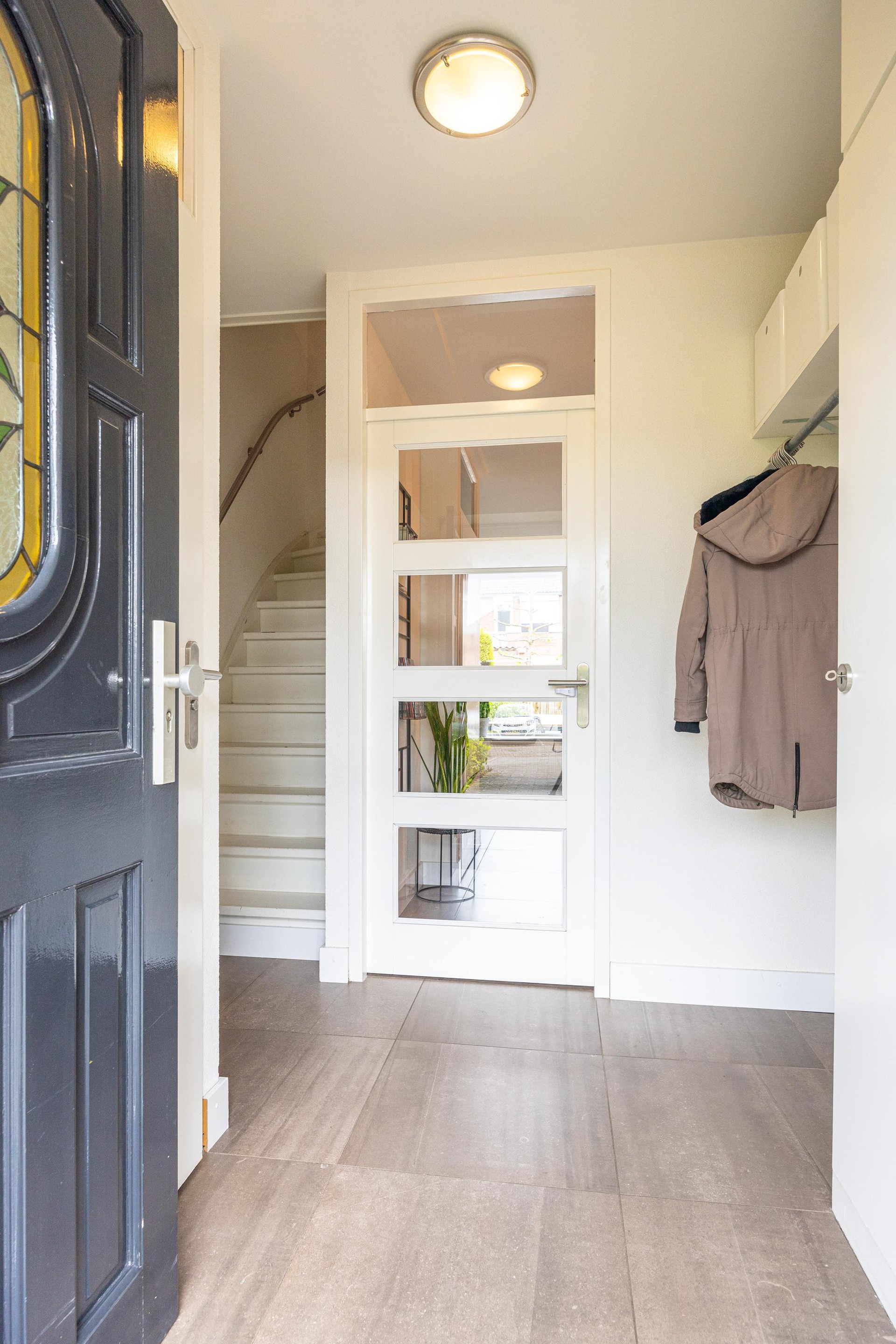 Begane grond Bij aankomst valt direct de nette voortuin en eigen oprit op. In de ontvangsthal vind je een tegelvloer, een garderobe, de meterkast en het toilet. Vanuit hier stap je de woonkamer binnen.