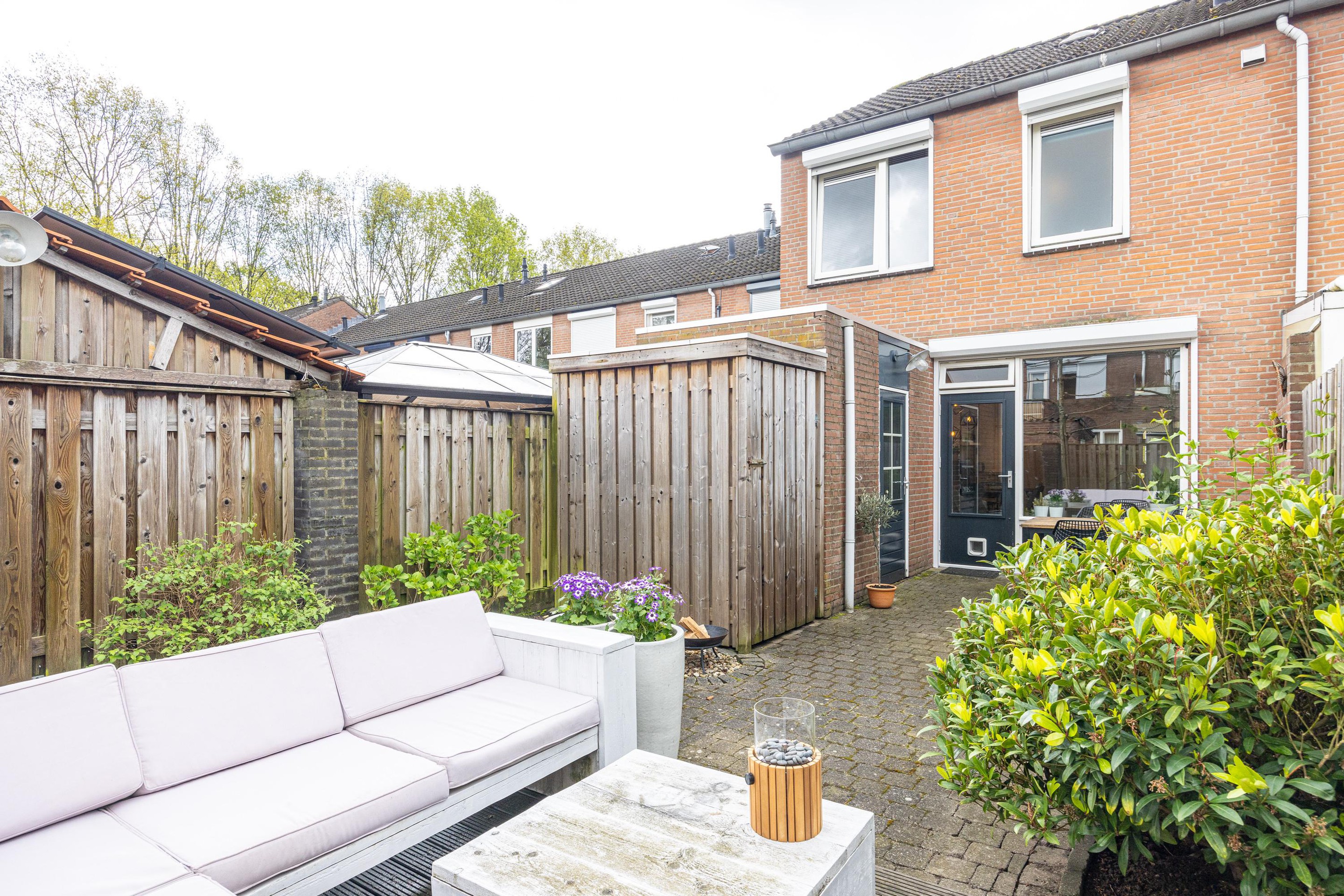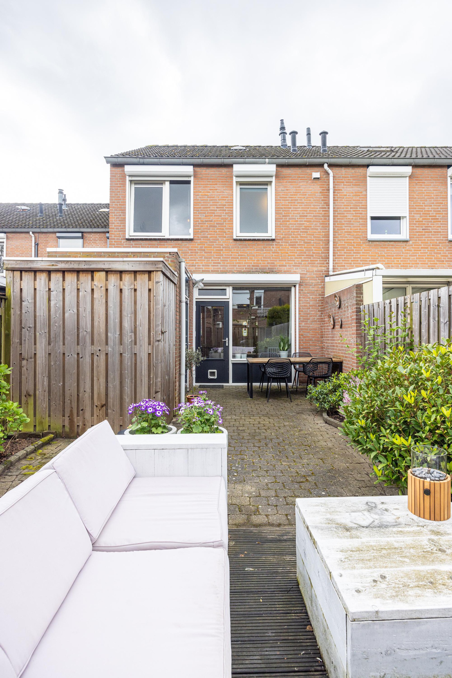 De achtertuin is netjes onderhouden en voorzien van een praktische schuur en een apart fietshok. Kortom, een ideale woning voor wie comfortabel wil wonen met alle voorzieningen en het stadsleven binnen handbereik.