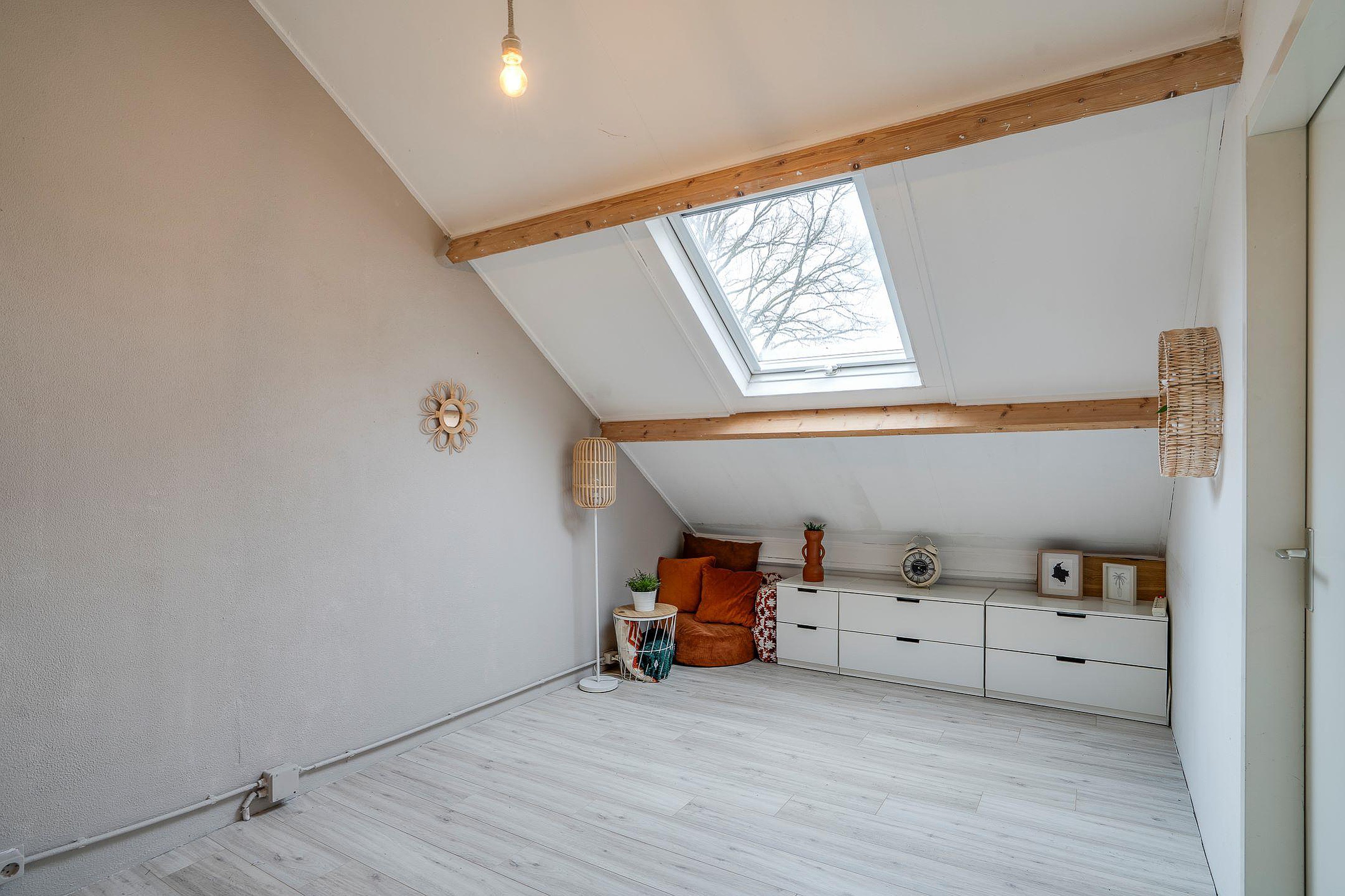 Via een vaste trap bereik je de ruime zolderverdieping, een verrassend multifunctionele ruimte met volop mogelijkheden. Momenteel in gebruik als werkkamer, maar dankzij het Velux-dakraam en de prettige afmetingen is deze verdieping ook uitstekend geschikt als extra slaapkamer.