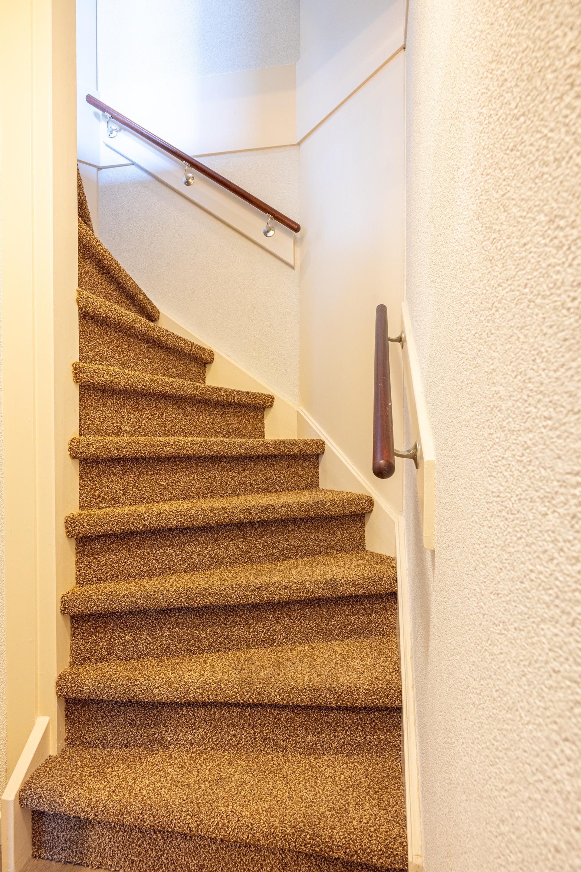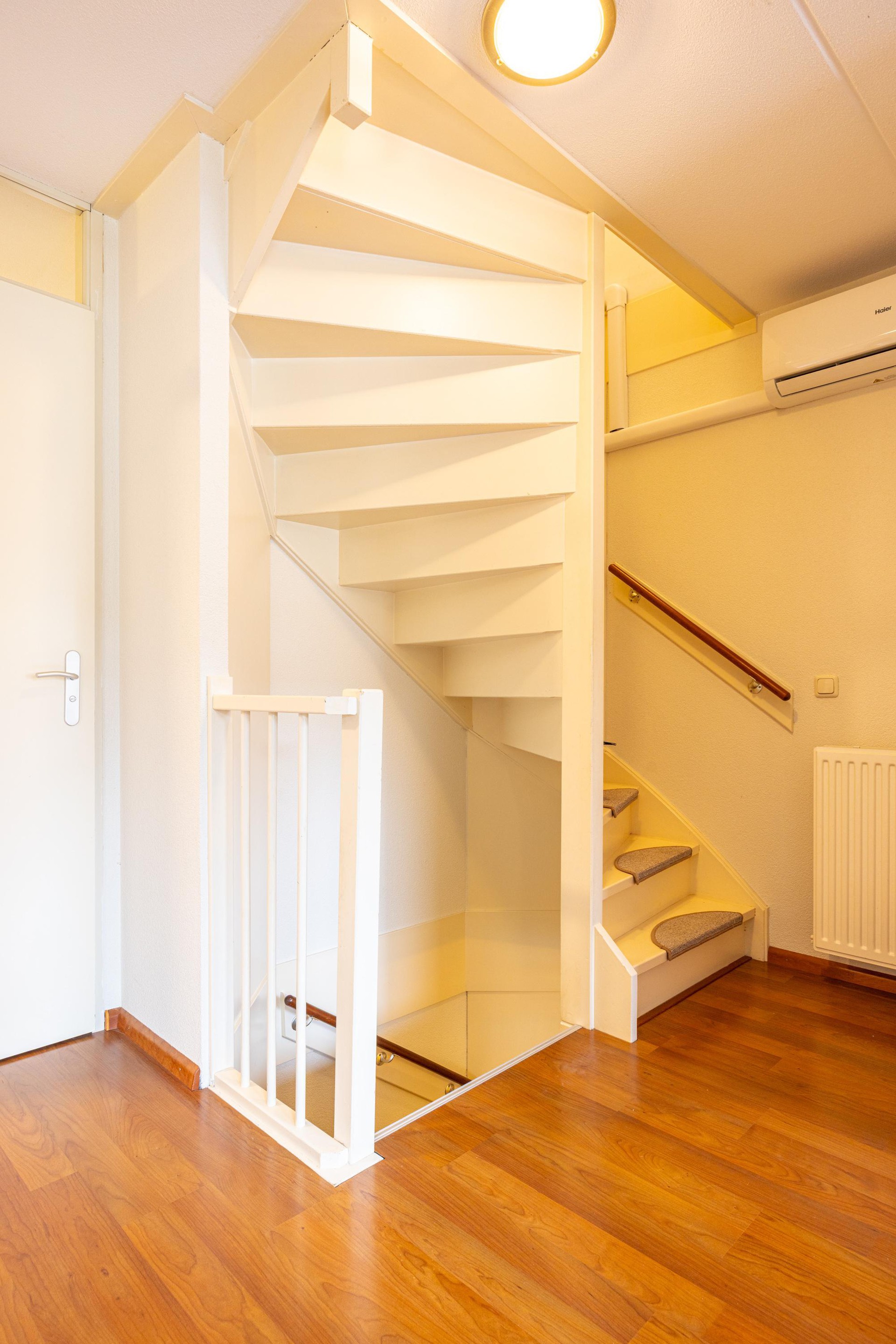 Eerste verdieping De trap is afgewerkt met tapijt en leidt naar de overloop, voorzien van laminaatvloer en een airco-unit die de gehele verdieping kan koelen of verwarmen.