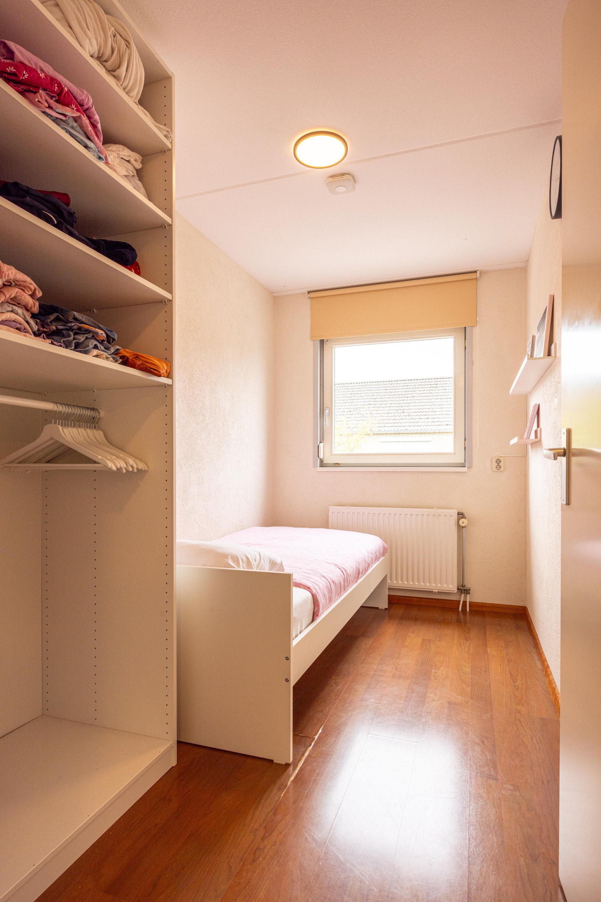 Er zijn drie slaapkamers, voorzien van een laminaatvloer, veel daglicht en rolluiken.