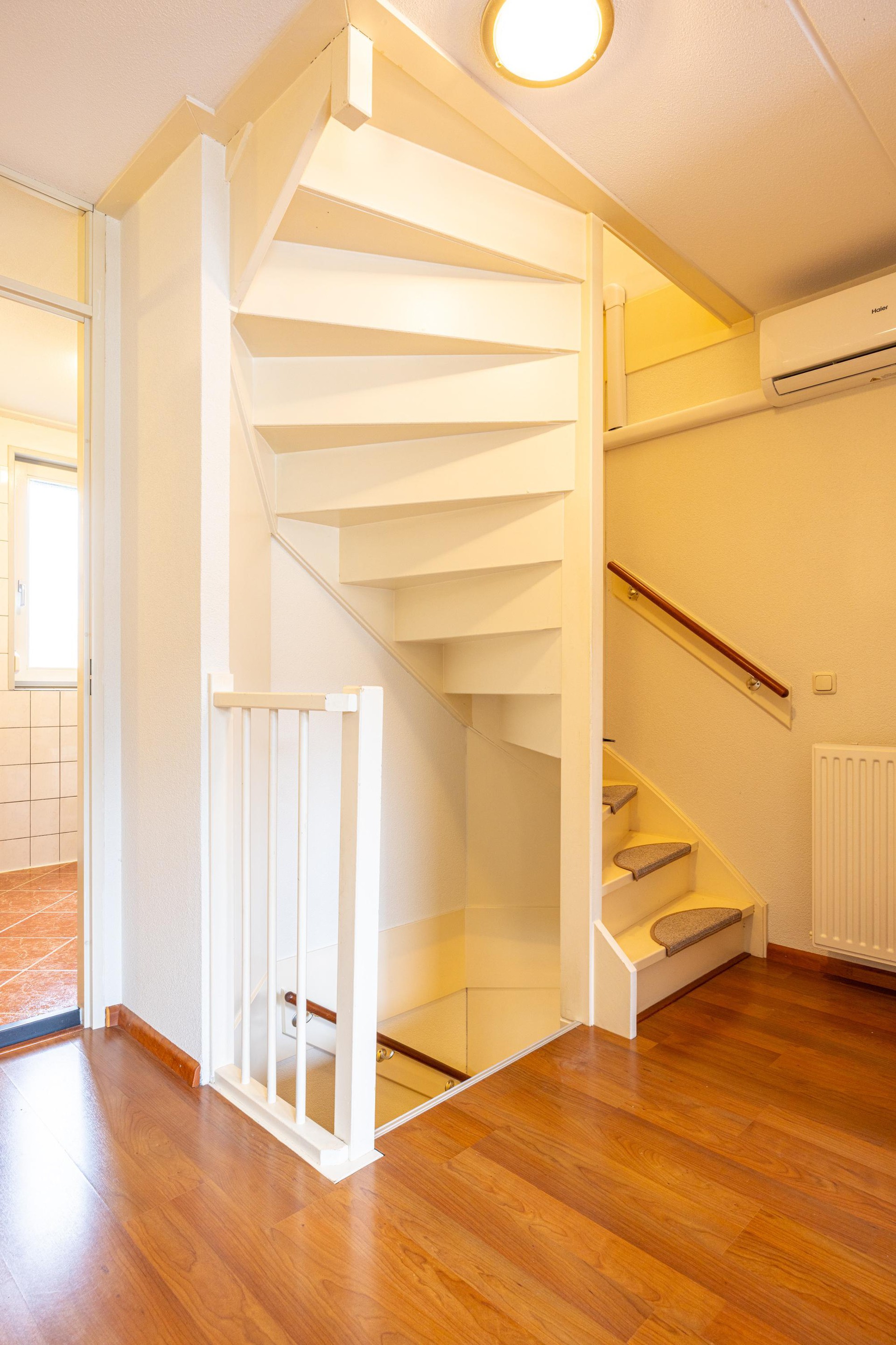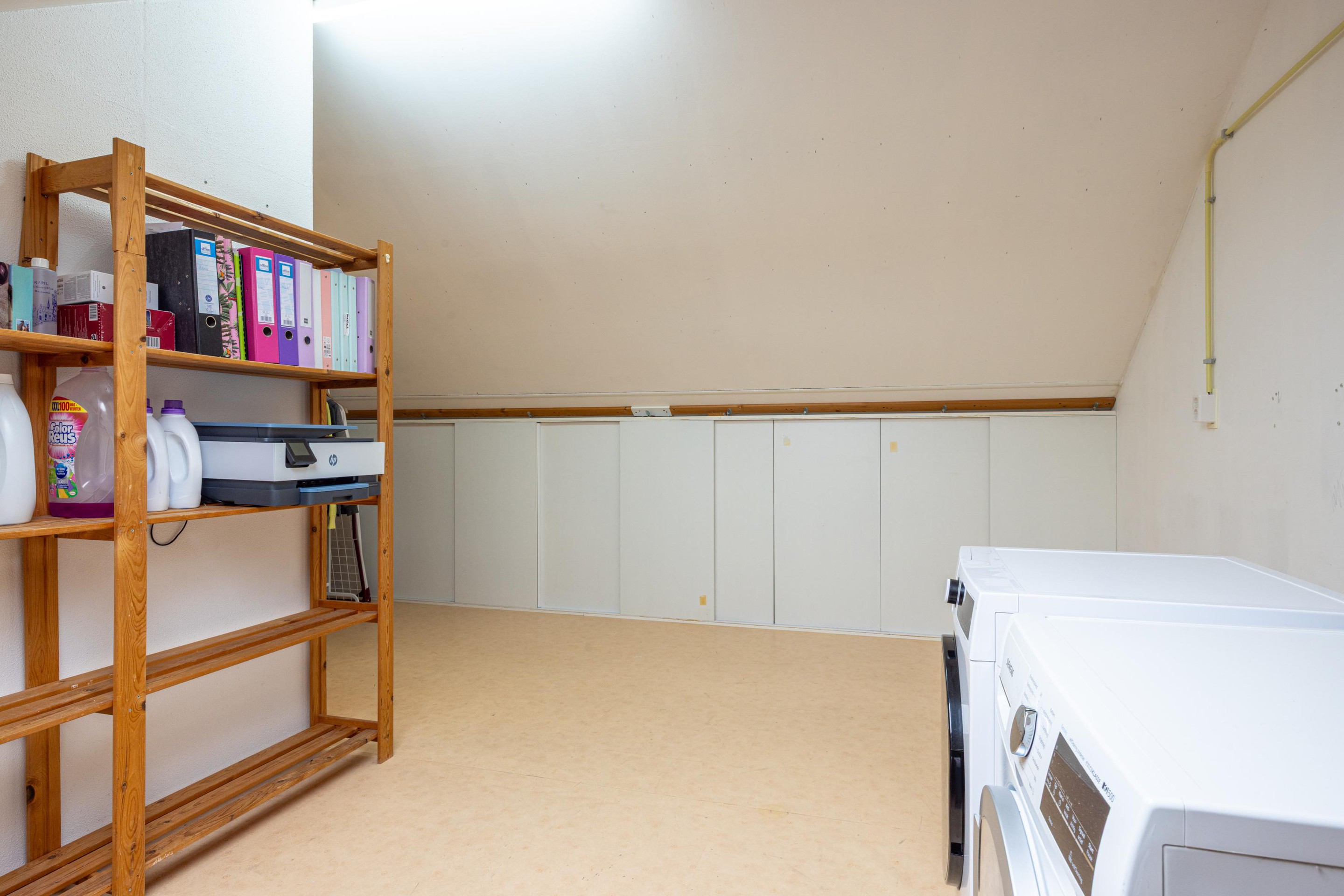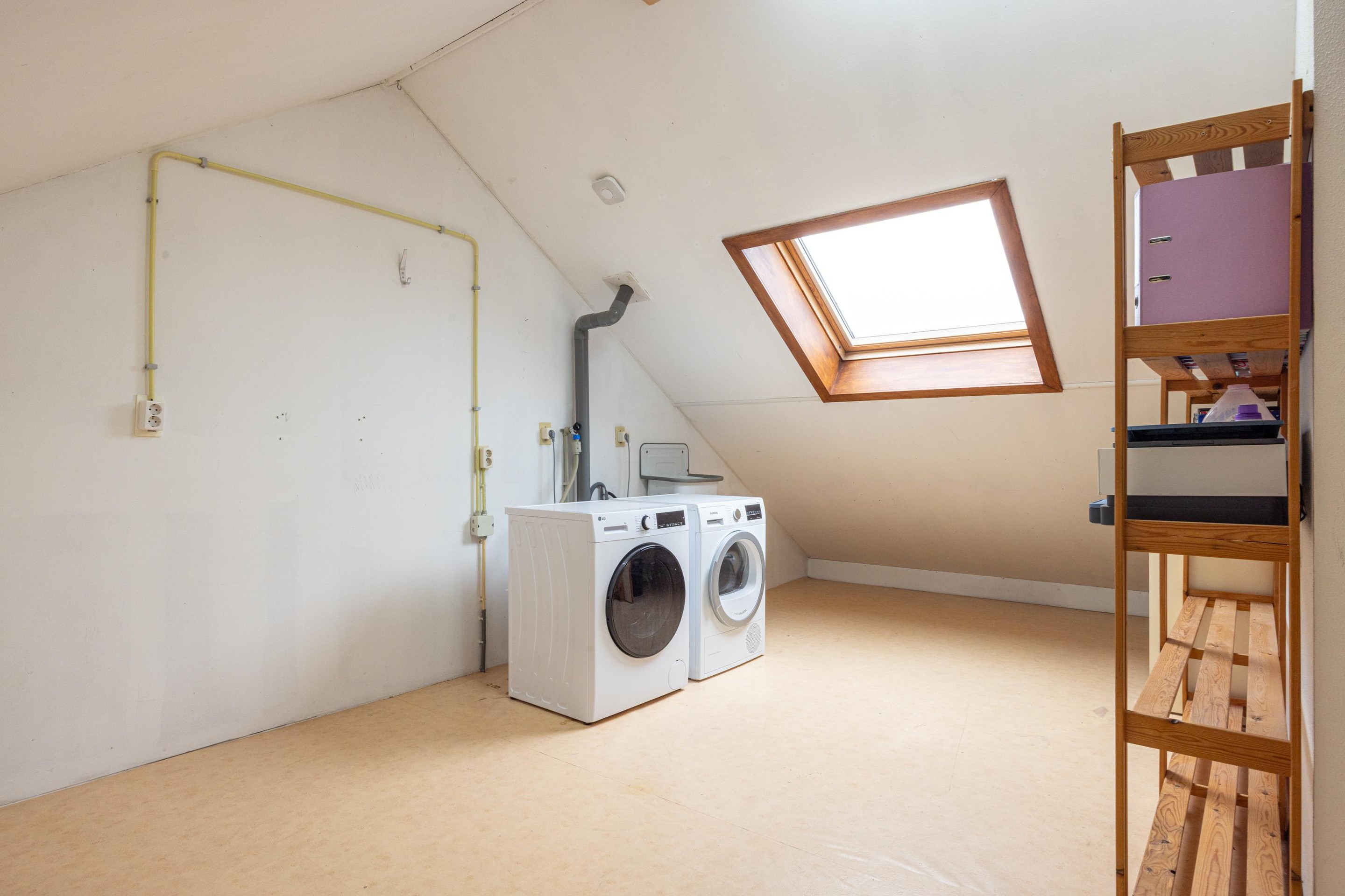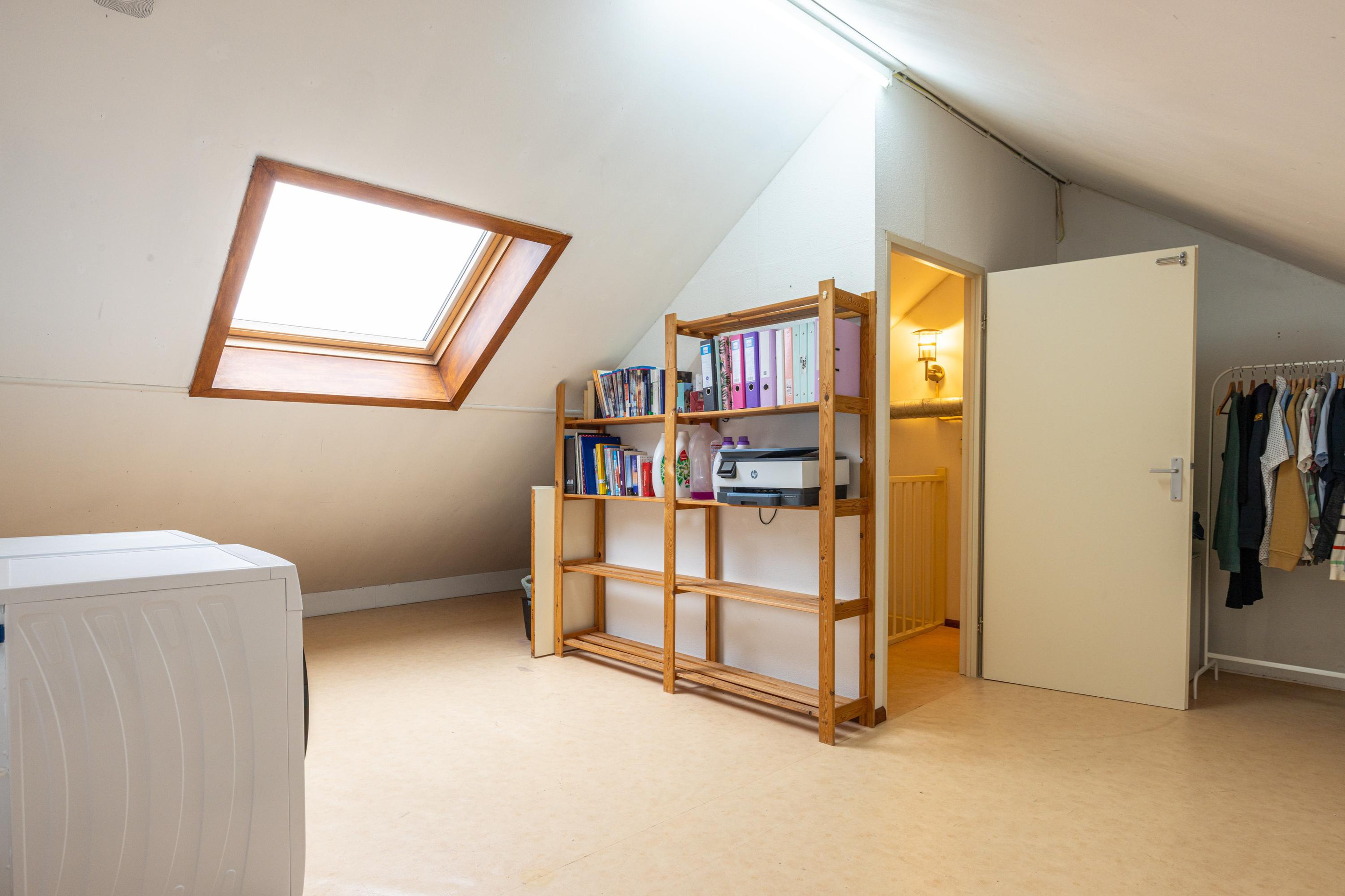 Tweede verdieping Via een vaste trap bereikt u de tweede verdieping. Deze beschikt over een kleine overloop en een grote ruimte met dakraam, waar de witgoedaansluitingen aanwezig zijn. Deze verdieping is ideaal als thuiswerkplek, hobbyruimte of extra opslag.