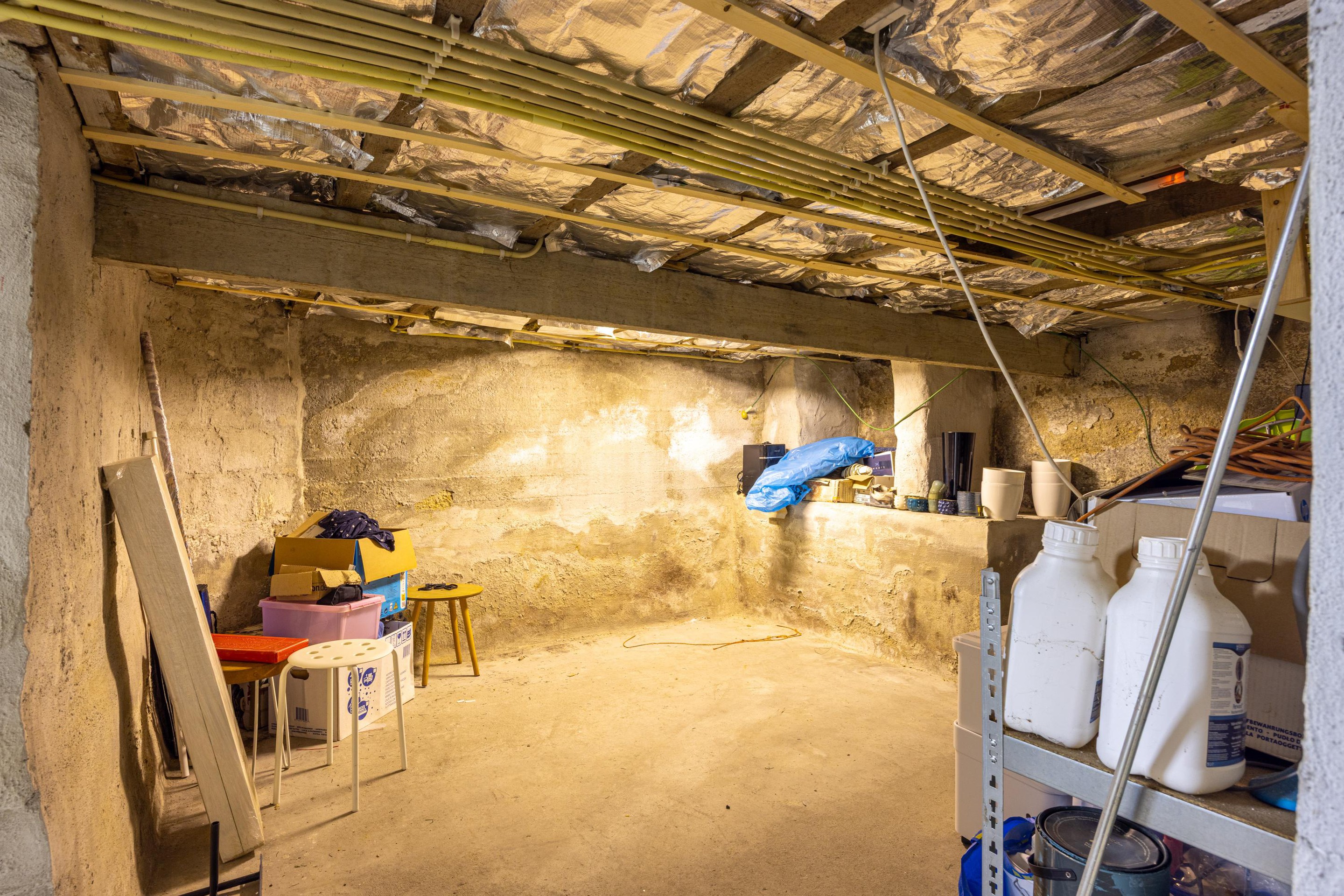 De kelder is verdeeld in meerdere praktische ruimtes en biedt volop mogelijkheden voor het opslaan van voorraad en seizoensspullen.