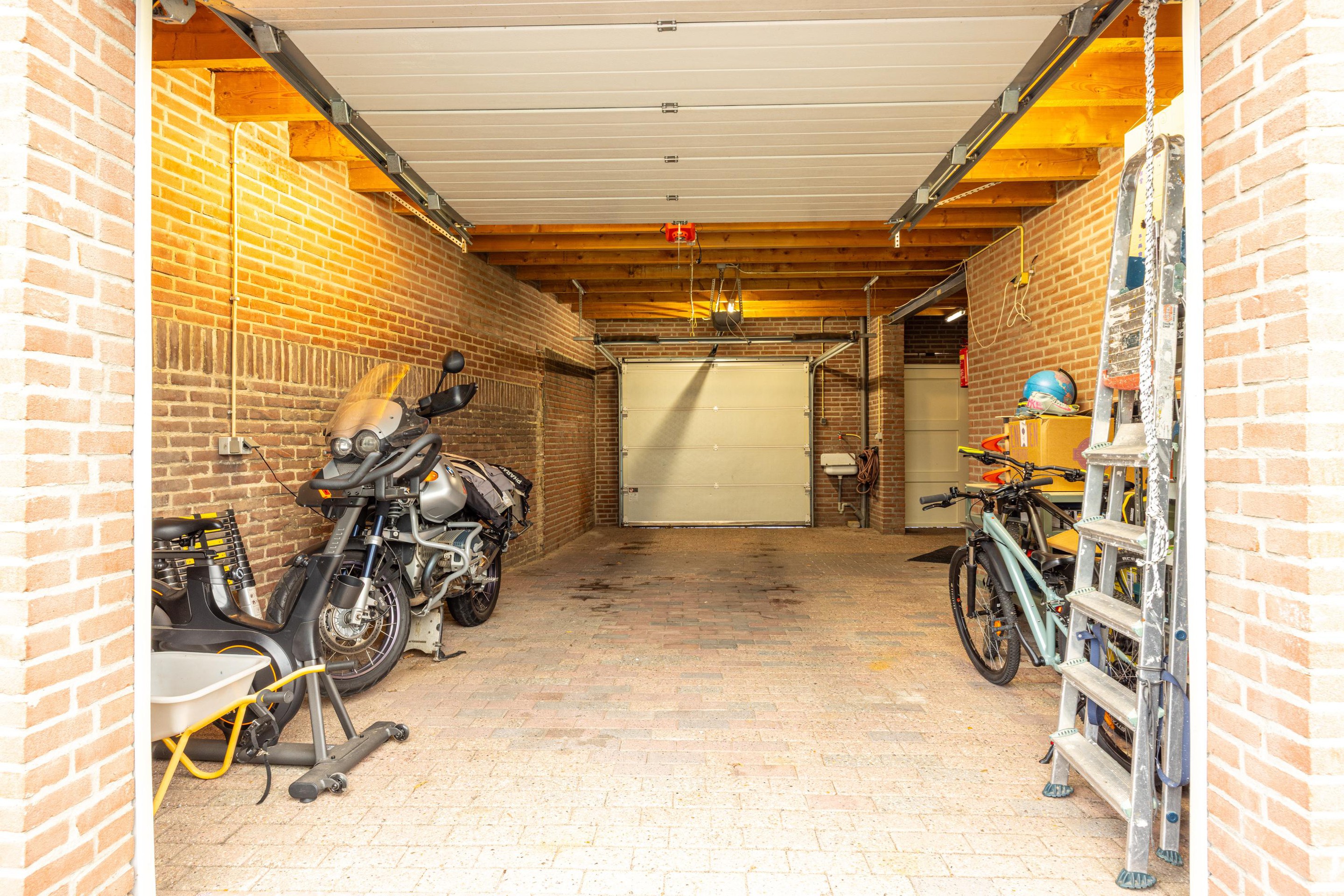 Aangrenzend bevindt zich de bijkeuken met witgoedaansluitingen en toegang tot het toilet met fonteintje. Daarnaast is er de doorgang naar de inpandige garage met twee sectionale poorten, elektra-aansluitingen en plek voor een auto én opslag.