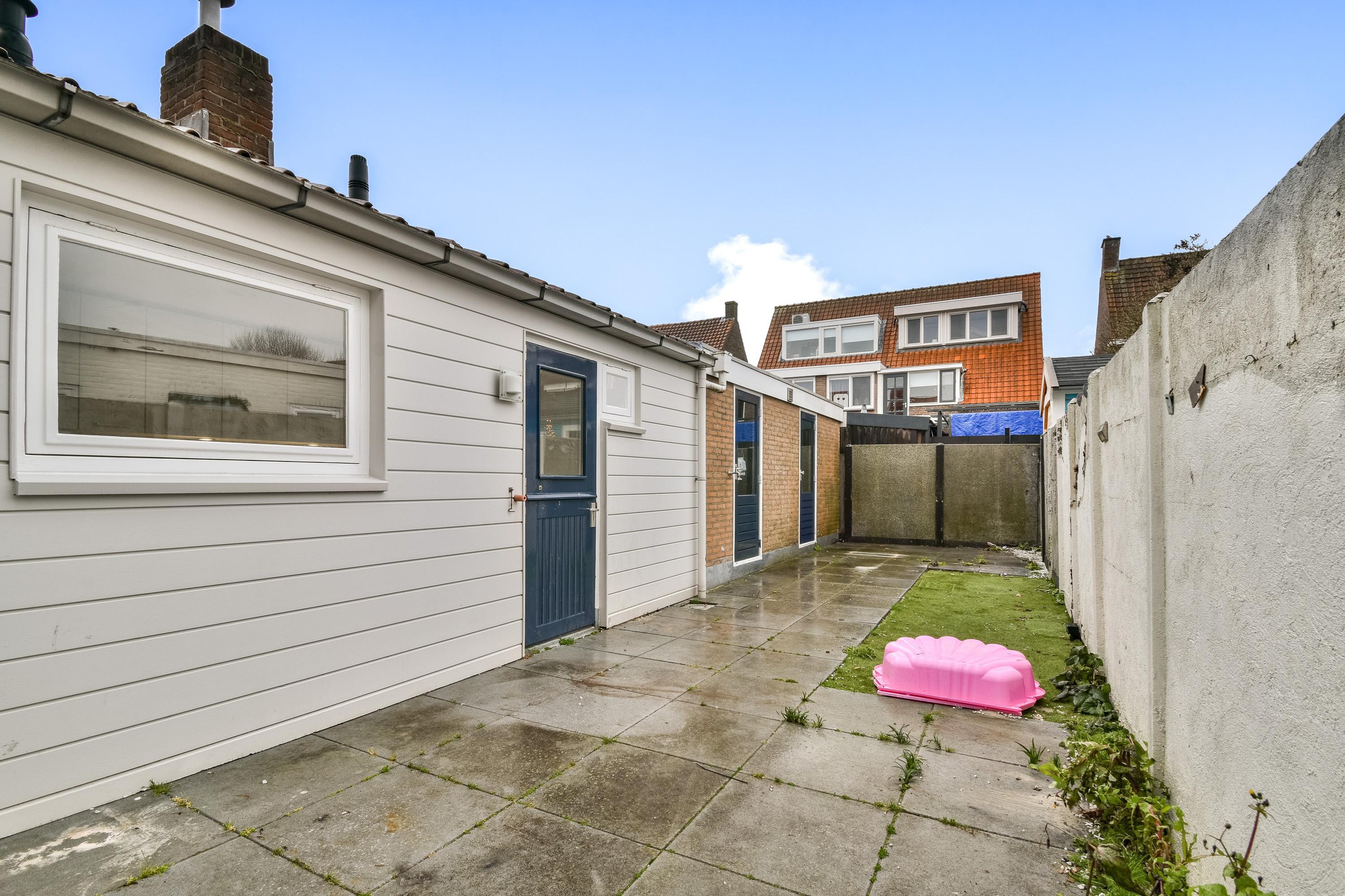 Tuin De onderhoudsvriendelijke achtertuin ligt op het zonnige zuidwesten en biedt volop mogelijkheden. De ruimte bestaat momenteel uit een deel kunstgras en het grootste gedeelte betegeling. Hier is er genoeg vrijheid om de tuin naar eigen smaak in te richten. Vanuit de tuin heb je directe toegang tot de twee bergingen, ideaal voor extra opslag, een klusruimte of het creëren van een hobby- of werkruimte. Dankzij de gunstige ligging is de tuin een plek waar je straks kunt ontspannen, genieten van de zon en gezellige momenten kunt beleven met familie en vrienden.