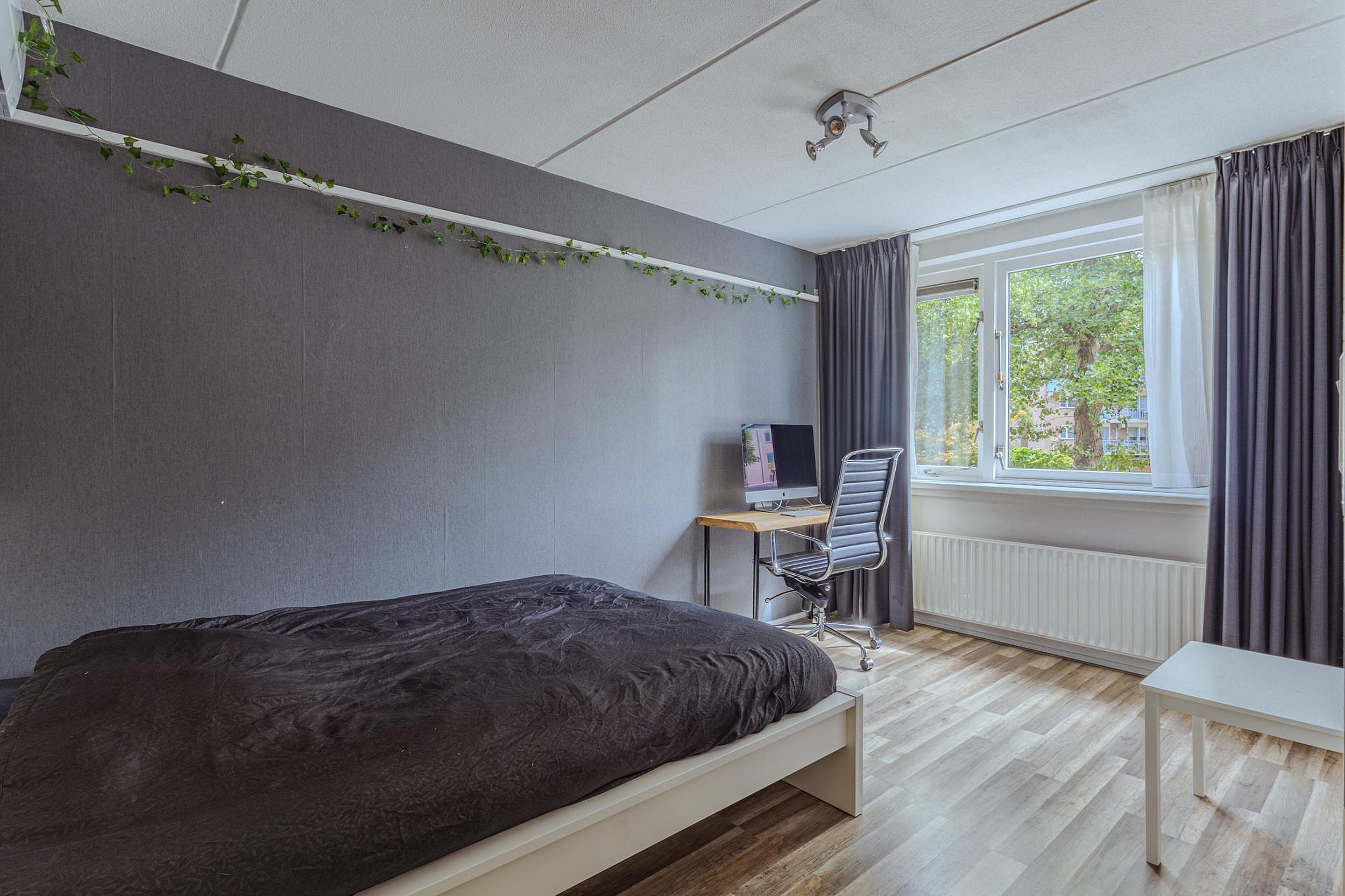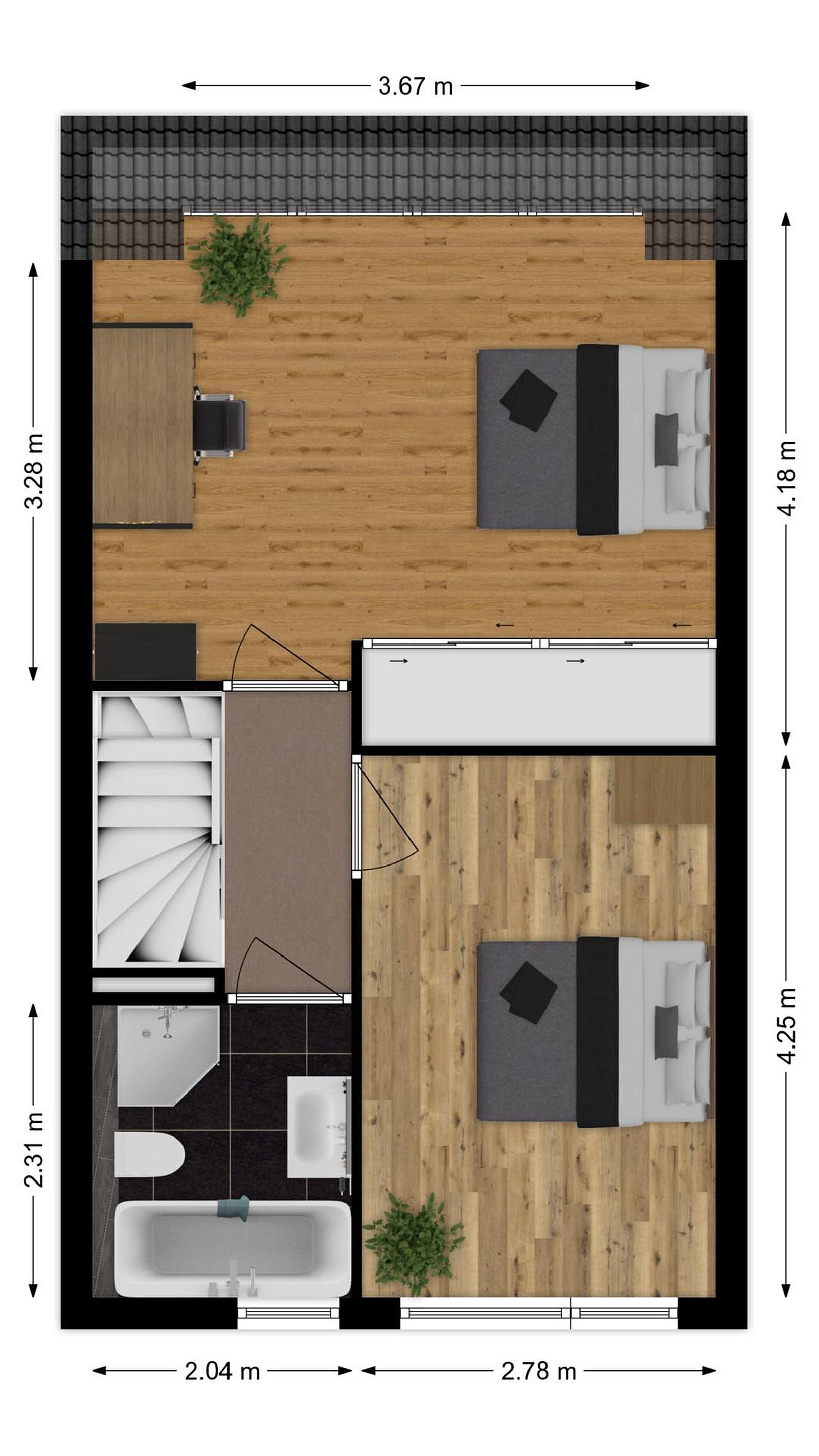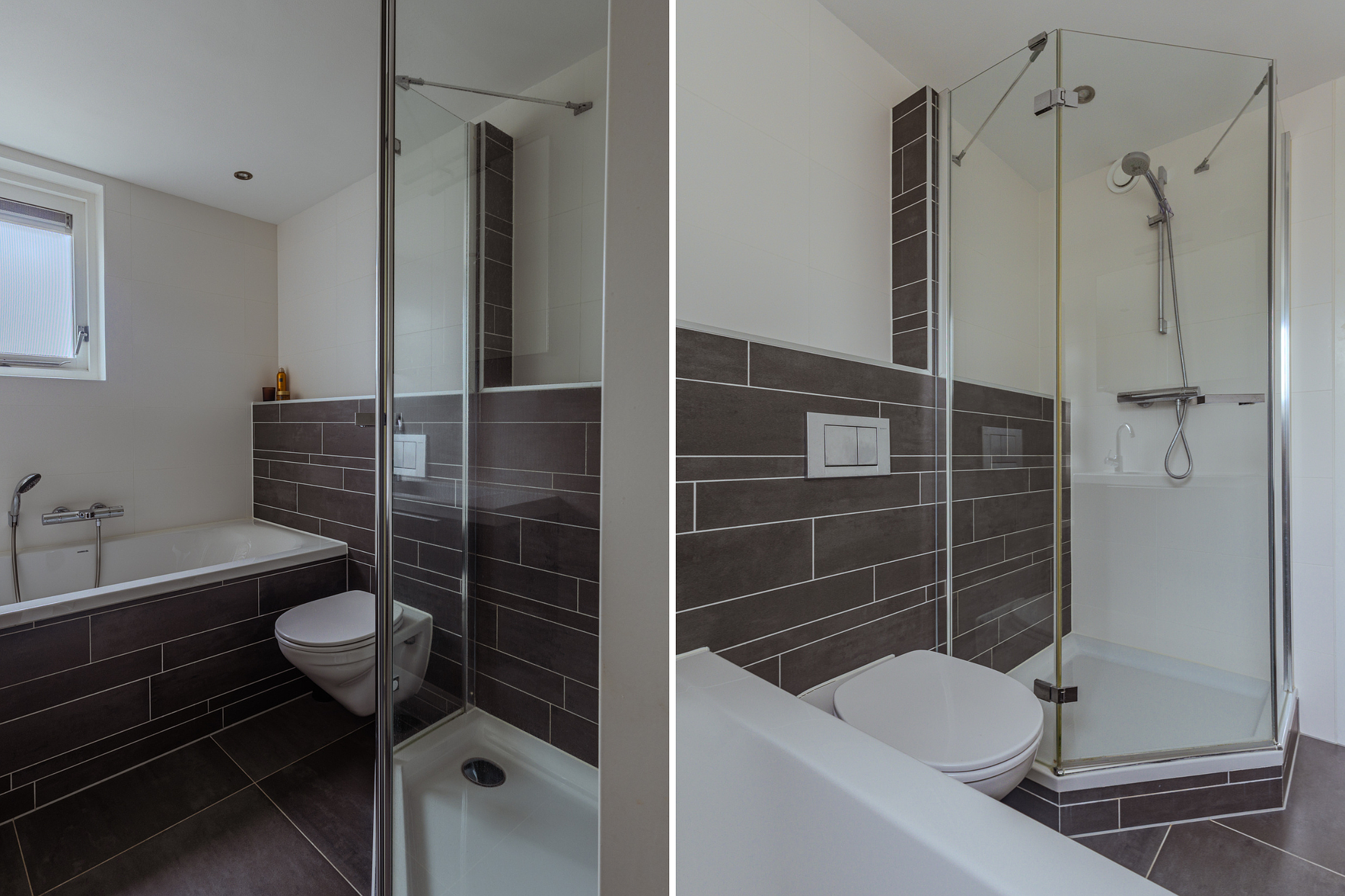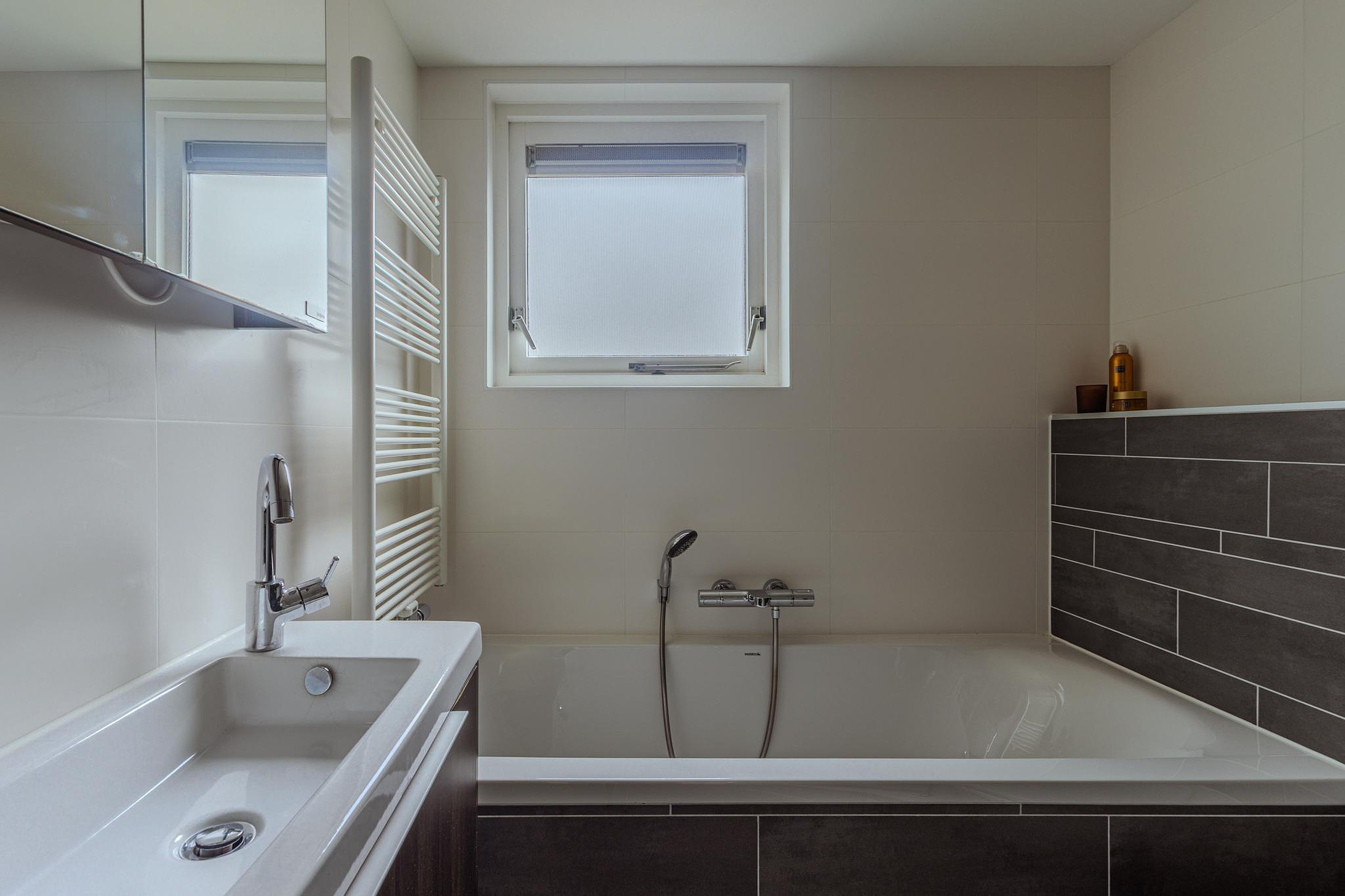 Eerste verdieping De trapopgang naar de overloop is afgesloten door een glazen deur. Van hieruit toegang tot twee slaapkamers en de badkamer. De riante ouderslaapkamer is in 2022 verder verruimd door de plaatsing van een ca. 3,70 meter brede dakkapel. In deze slaapkamer vind je verder airconditioning, bergingsmogelijkheden achter de knieschotten en een 4-deurs inbouwkast. De tweede ruime slaapkamer is aan de straatzijde gesitueerd en beschikt eveneens over airconditioning. De moderne badkamer is onder meer uitgerust met een ligbad met douchemogelijkheid, een douchecabine, een tweede inbouwtoilet, een designradiator en een wastafelmeubel met spiegelkast.