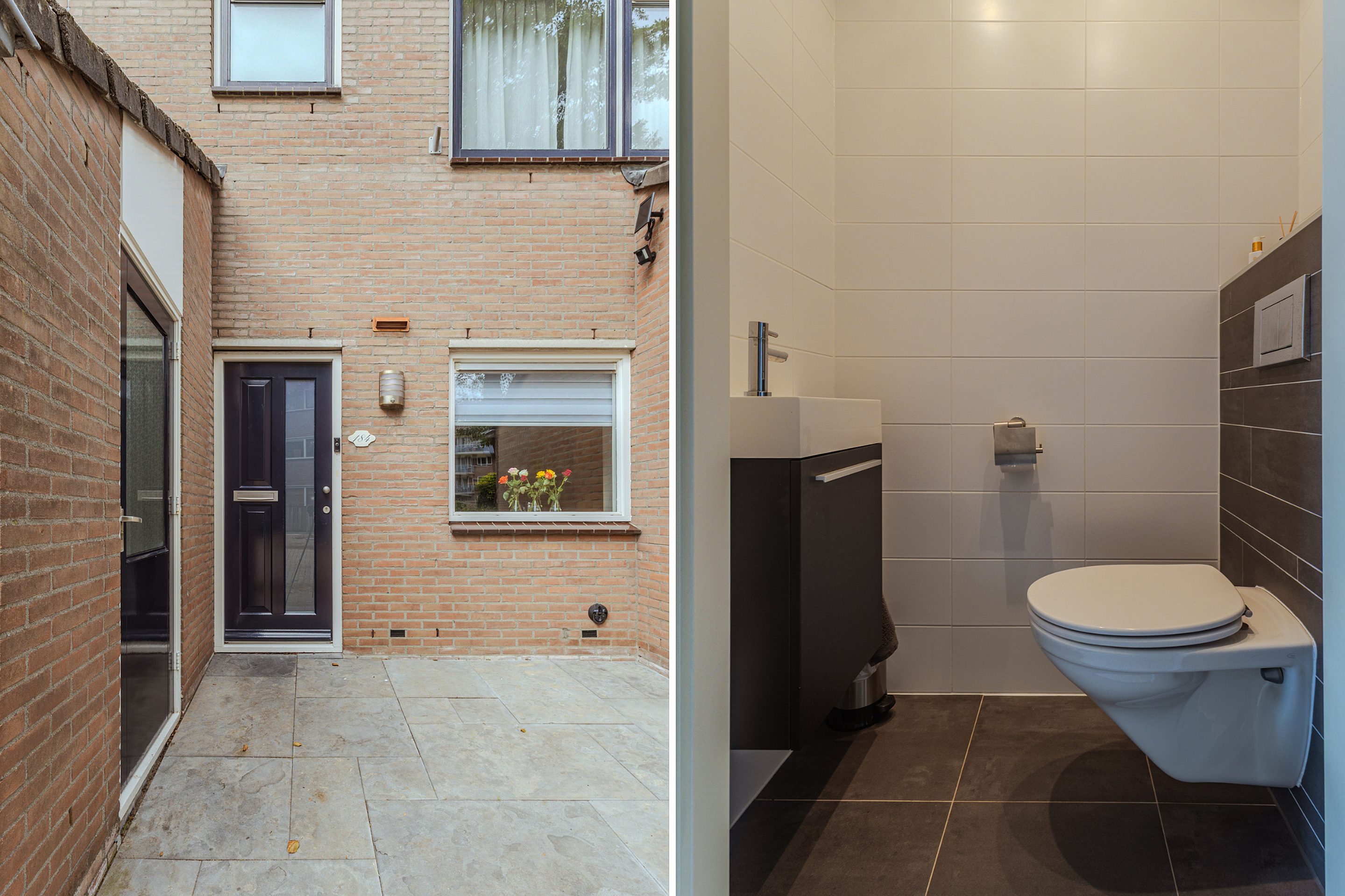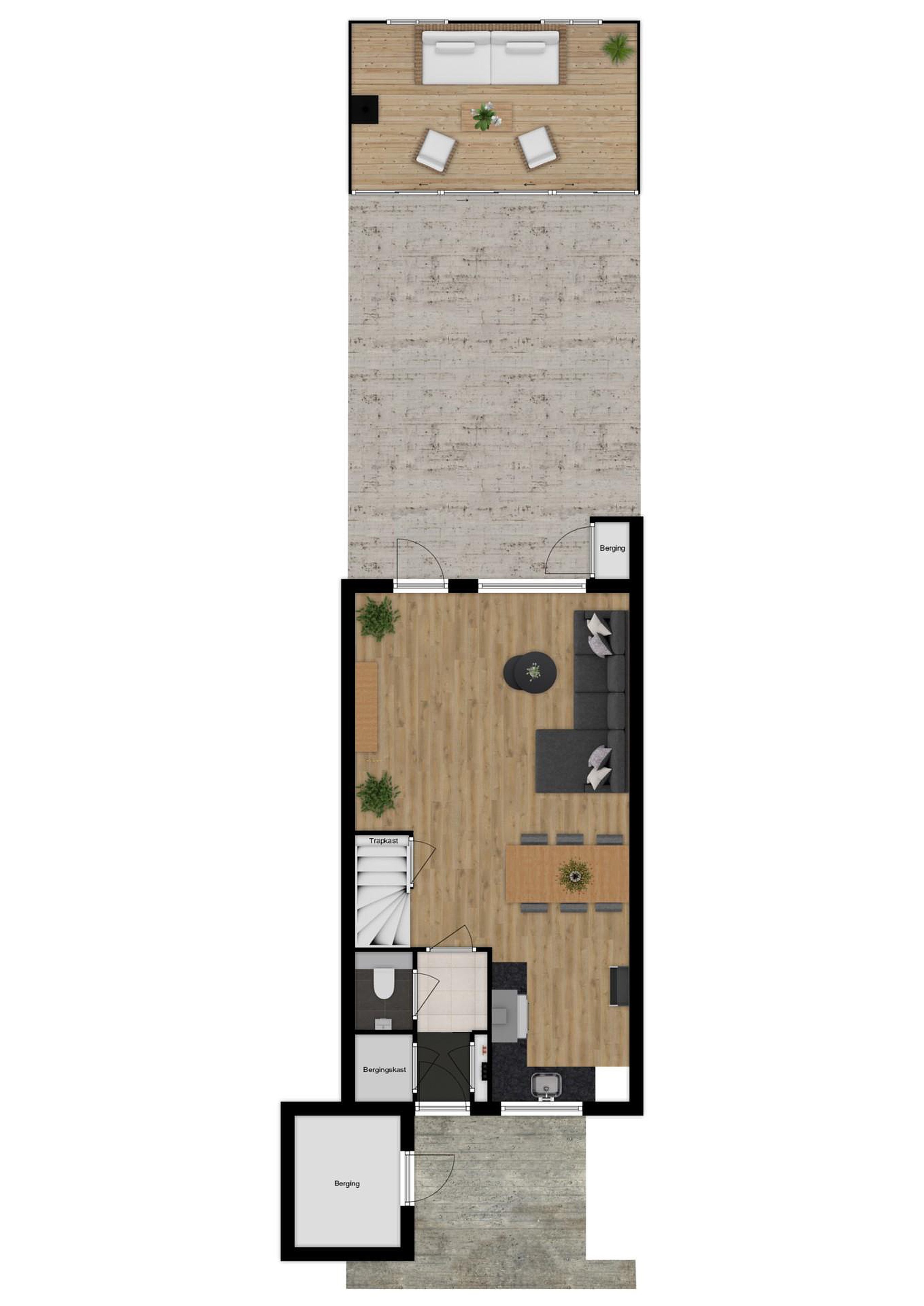 Tuin De voortuin is grotendeels betegeld en voorzien van een plantenborder. De aangebouwde stenen berging is voorzien van elektra en perfect voor het stallen van bijvoorbeeld fietsen.