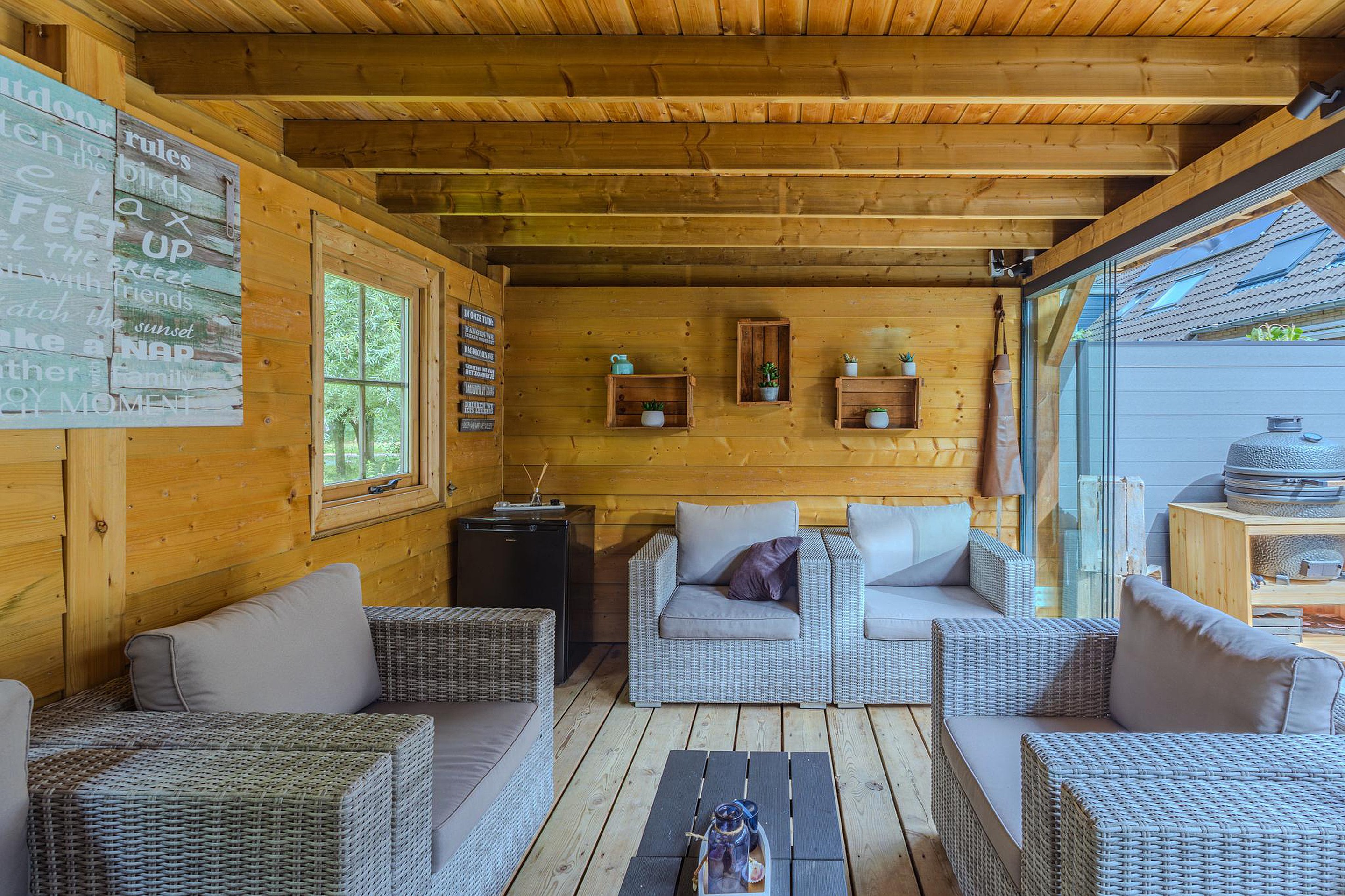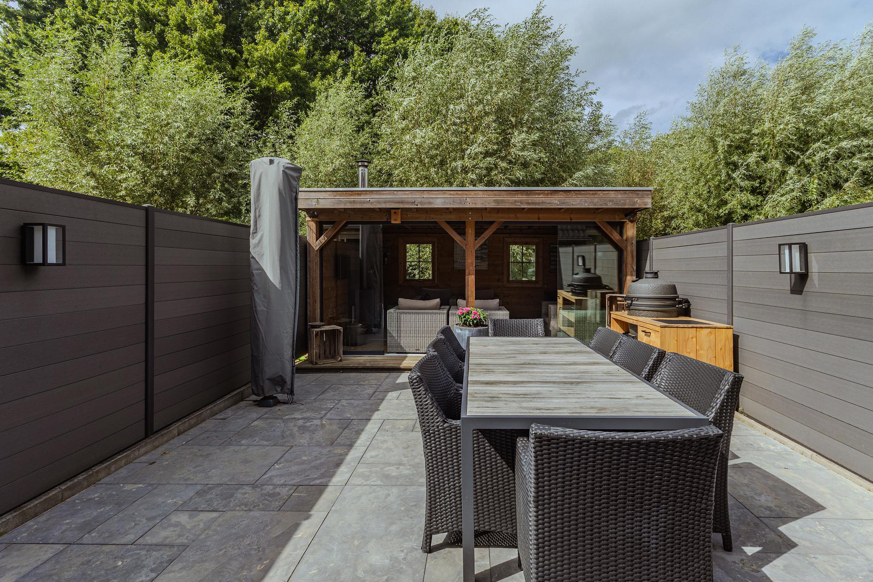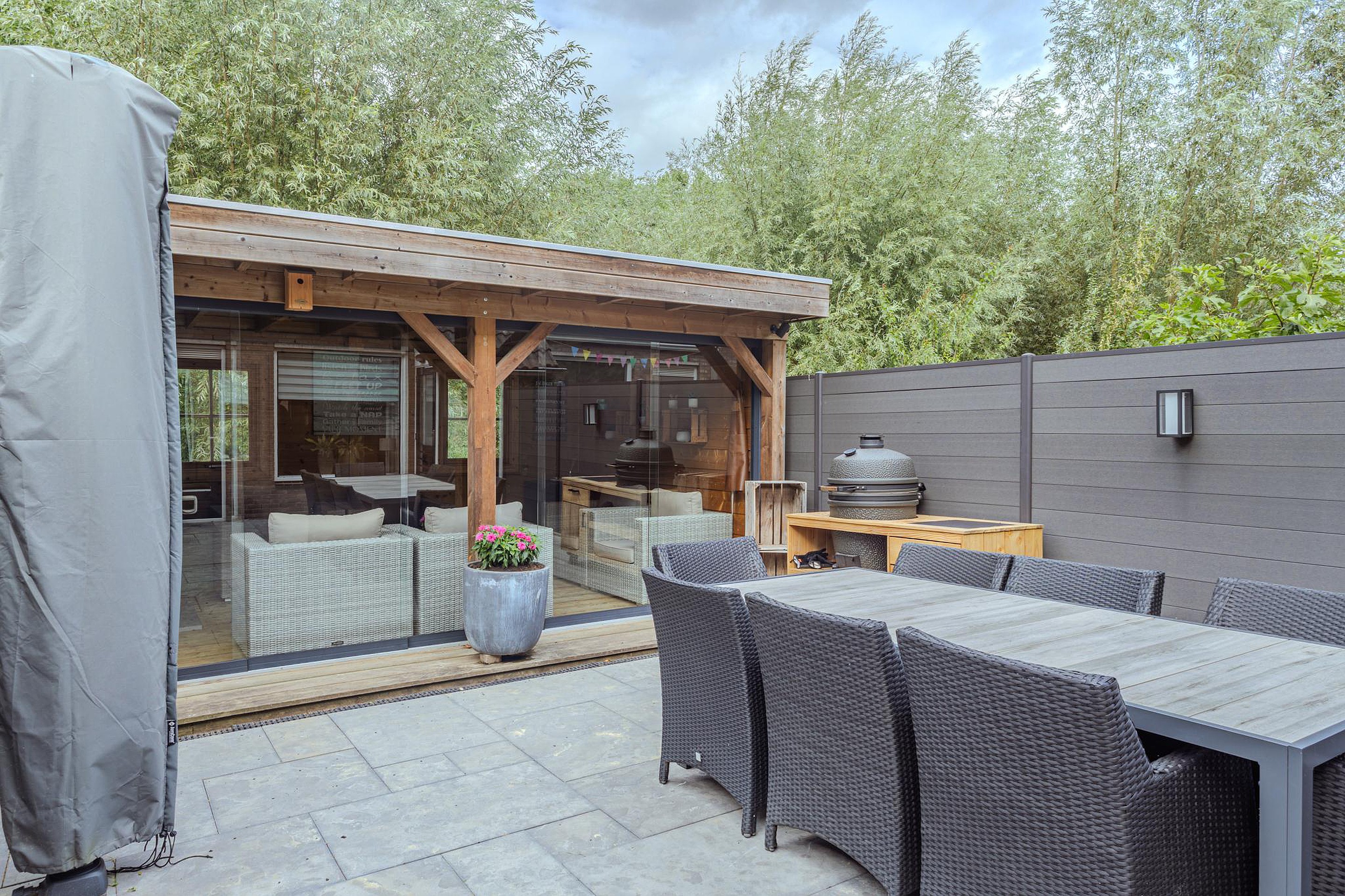 De onderhoudsvriendelijke achtertuin (ca. 10 x 5 m) is gelegen op het zonnige westen, waardoor je hier volop van de middag- en avondzon kunt genieten. Het zonnescherm zorgt hiernaast voor de nodige schaduw, hier vind je ook een kleinere berging. Als klap op de vuurpijl staat er achterop het perceel een bijzonder sfeervol en middels een glazen schuifpui geheel afsluitbaar lounge-tuinhuis voorzien van elektra en een houtkachel (ter overname). Hier vind je gegarandeerd urenlange ontspanning, door alle jaargetijden heen!