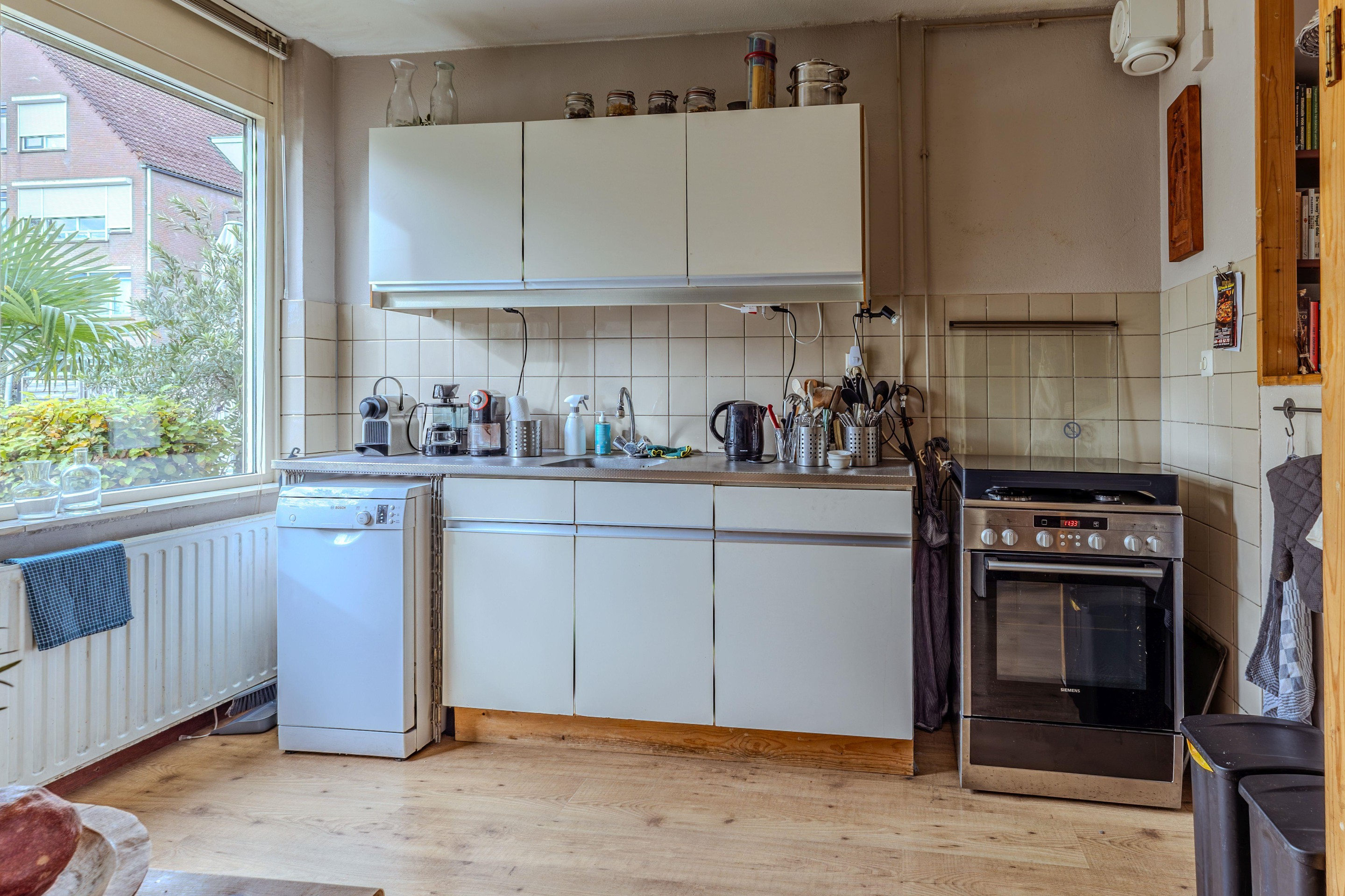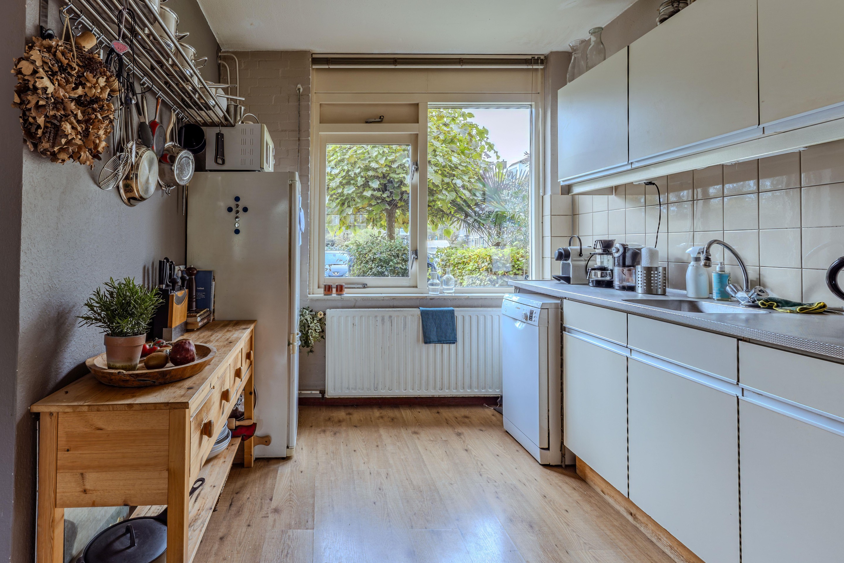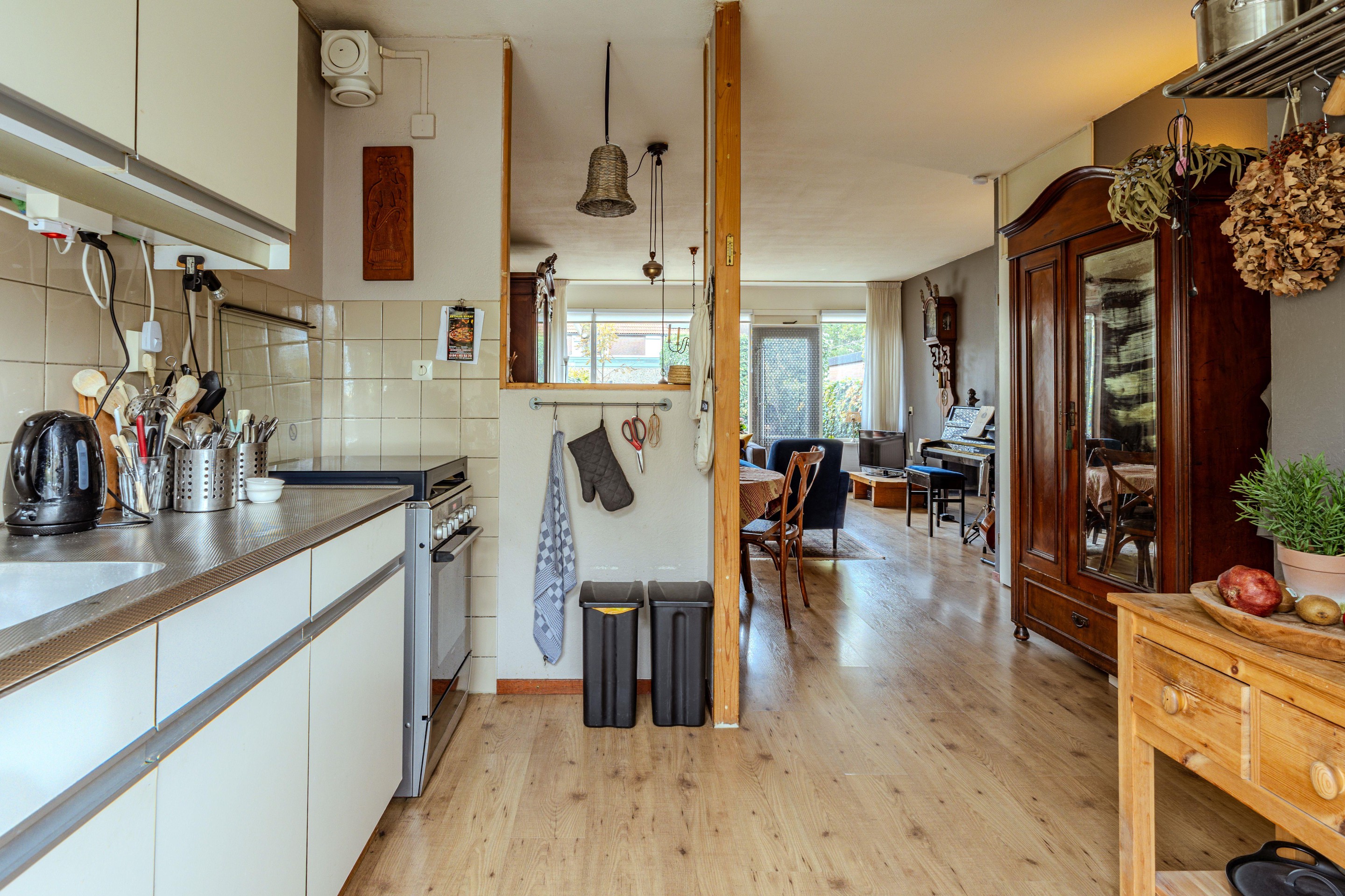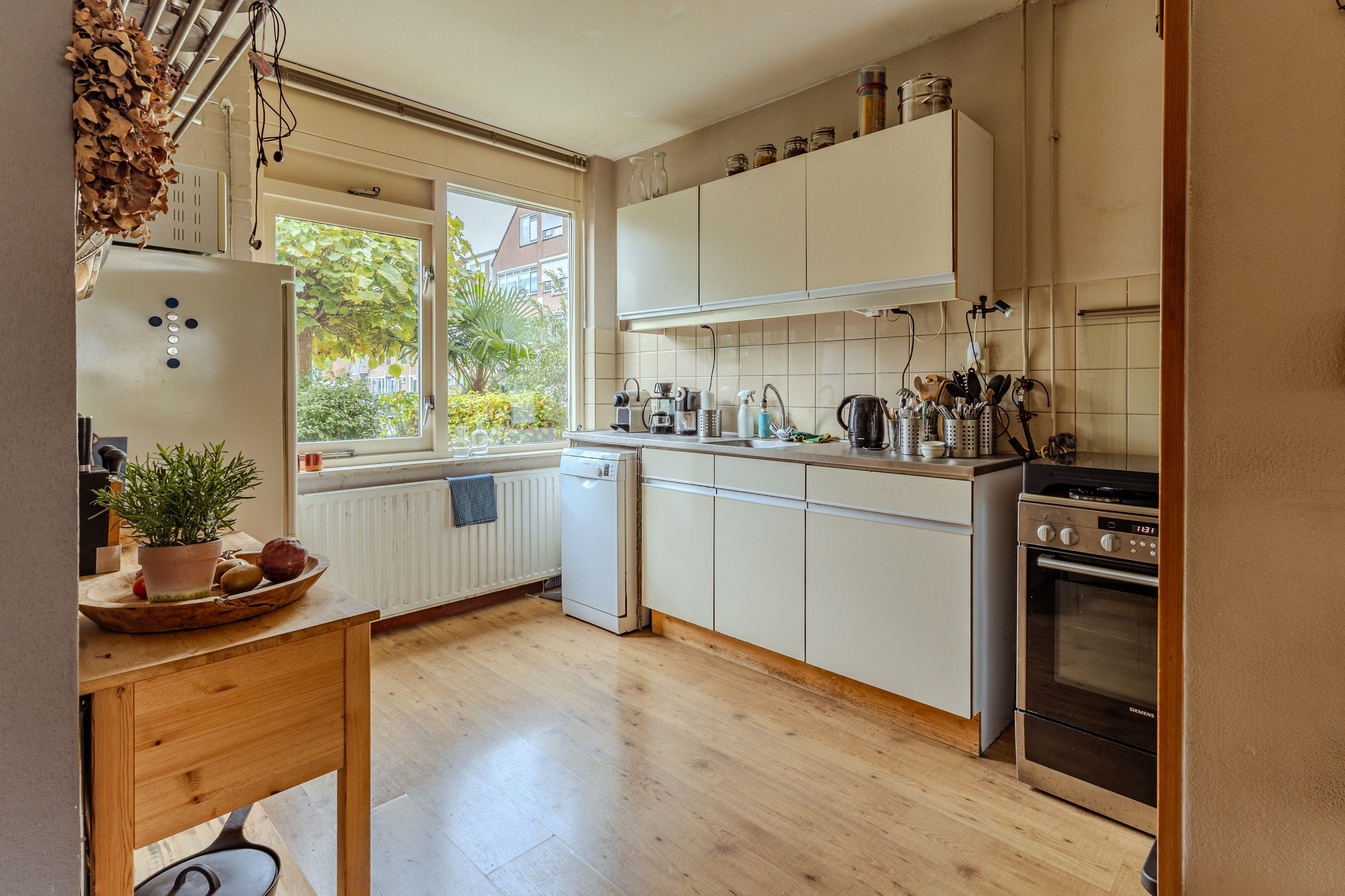 De keuken en badkamer zijn functioneel, maar deels gedateerd – perfect voor wie ze graag naar eigen smaak wil moderniseren en een persoonlijke touch wil toevoegen. De achtertuin ligt op het noordoosten en is voorzien van een stenen berging, ideaal voor het opbergen van fietsen of tuingereedschap.
