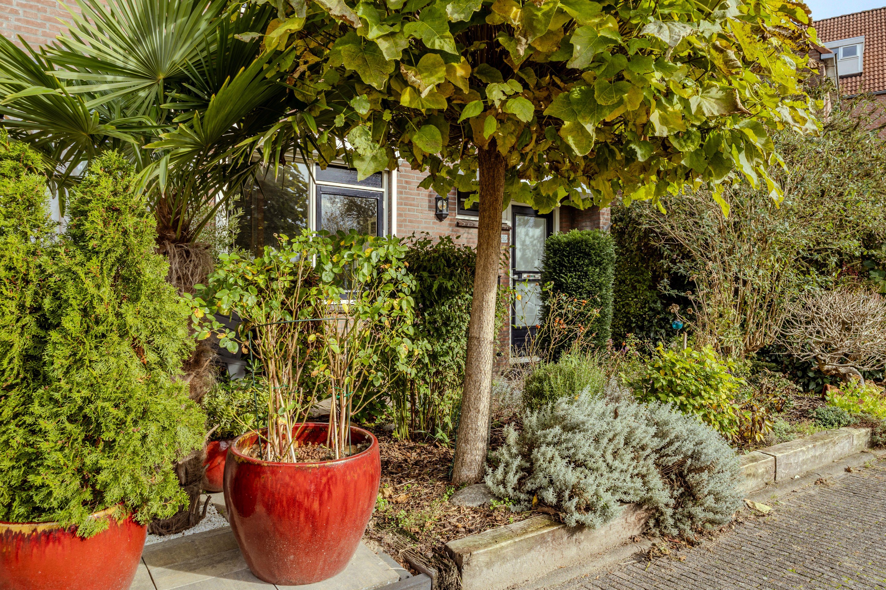 De voortuin is in pacht van de gemeente Sliedrecht tegen een jaarlijkse vergoeding van €80 en is ingericht met een gevarieerde en rijke diversiteit aan beplanting.