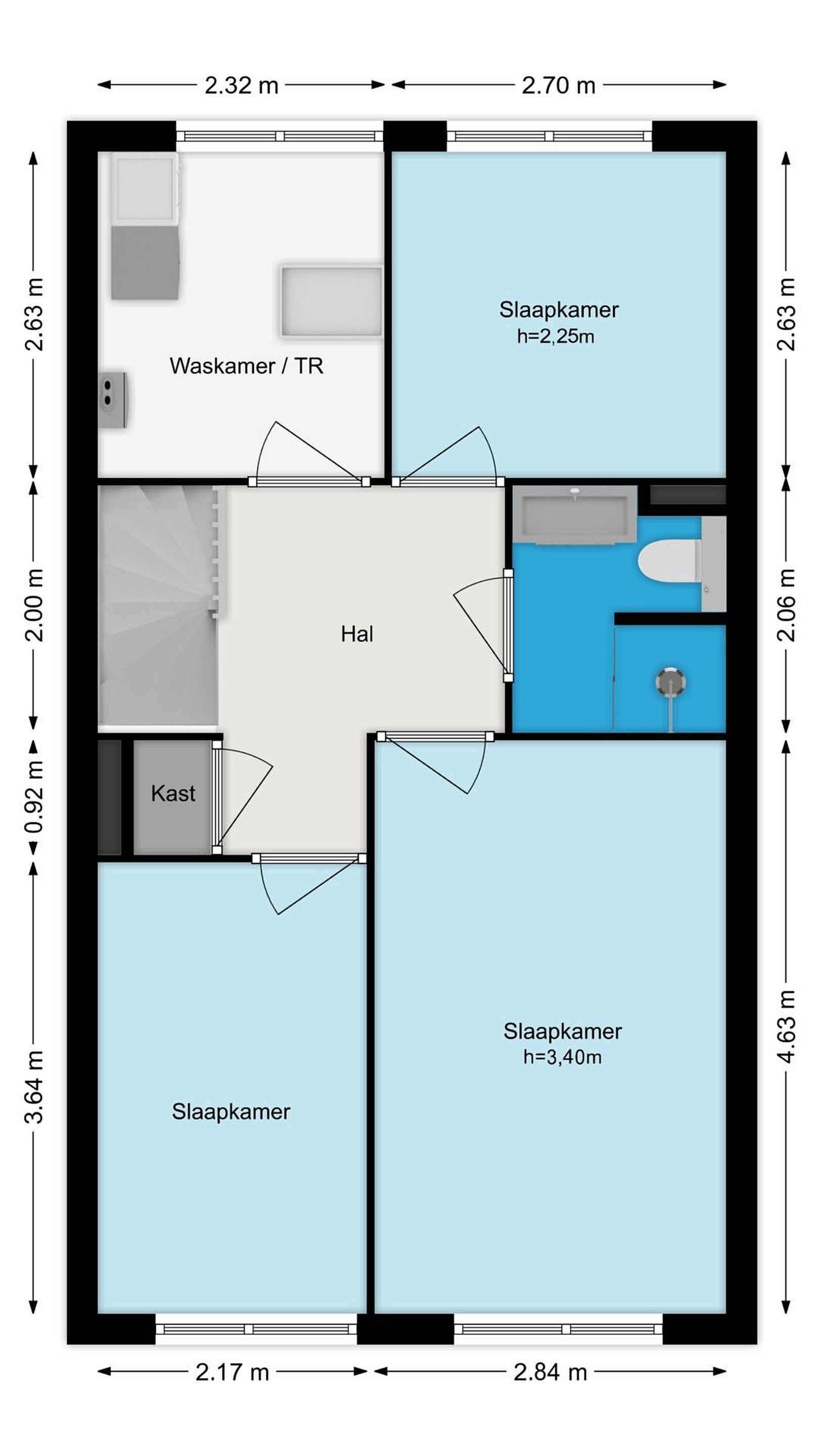 De overloop biedt directe toegang tot alle vertrekken. In 2025 is het trapgat voorzien van een airconditioning-unit voor comfort in de hele woning. De luxe badkamer is uitgerust met een fijne inloopdouche, een wastafel met meubel en het tweede toilet. De ruime waskamer / technische ruimte is voorzien van de witgoedaansluitingen, de CV-installatie en biedt toegang tot de gevelbrede bergzolder (waar ook de omvormer van de zonnepanelen hangt). Twee slaapkamers zijn aan de tuinzijde gesitueerd en de derde slaapkamer ligt aan de voorzijde van de woning.