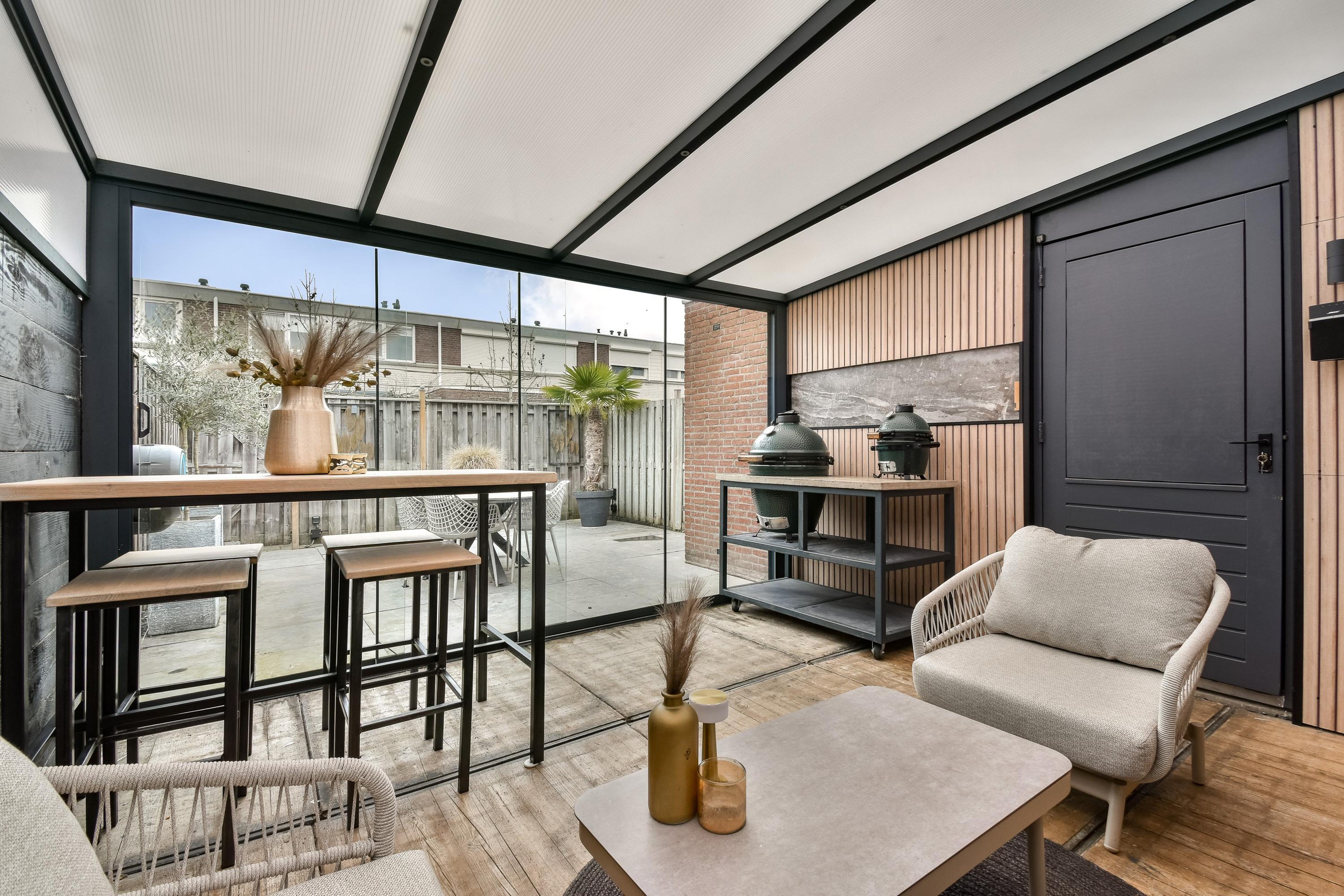 Tuin, schuur/berging, ventilatie, glasvezel, buitenzonwering, airconditioning, schuifpui