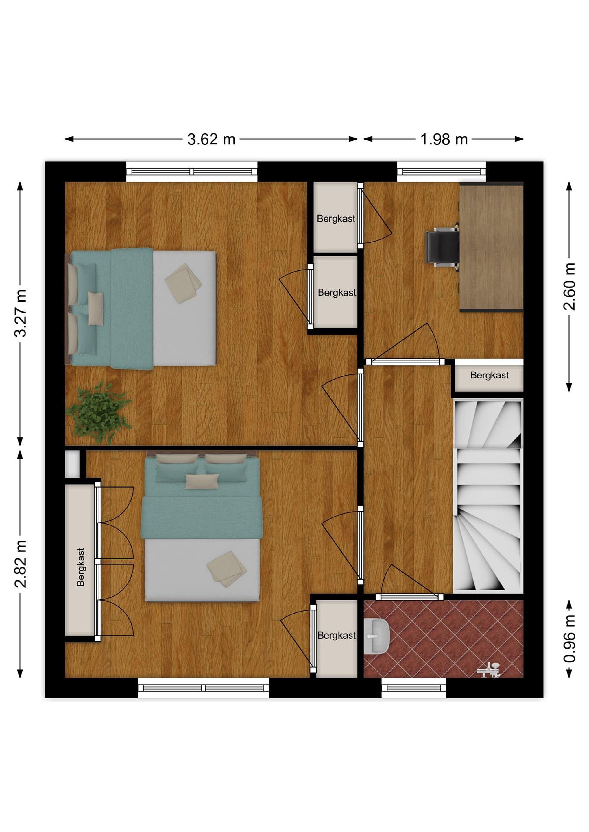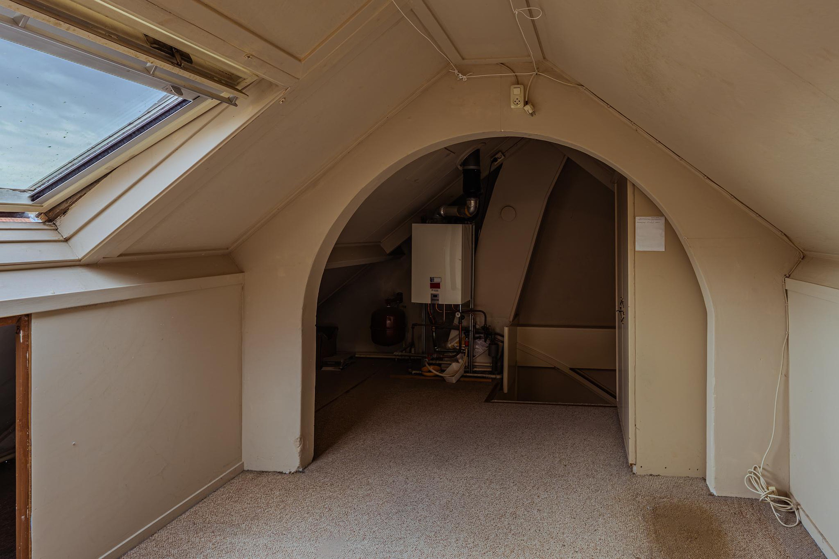 Op de voorzolder vind je de CV-installatie en een vaste kast. De vierde slaapkamer biedt een groot dakraam en bergmogelijkheden achter de knieschotten.