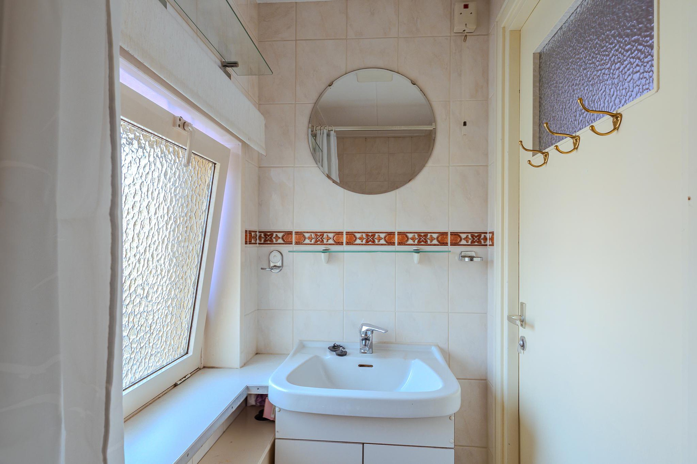 Vanaf de overloop zijn drie slaapkamers, de trapopgang en de badkamer te bereiken. De hoofdslaapkamer vind je aan de tuinzijde en is uitgerust met een vaste kast en airconditioning. De kleinste slaapkamer is eveneens aan de tuinzijde gesitueerd en biedt ook vaste kastruimte. De ruime 3de slaapkamer is aan de straatzijde gesitueerd en biedt een vaste bergkast en een royale vaste kledingkast met louvredeuren. De badkamer beschikt over een douchegelegenheid en een wastafel met meubel.