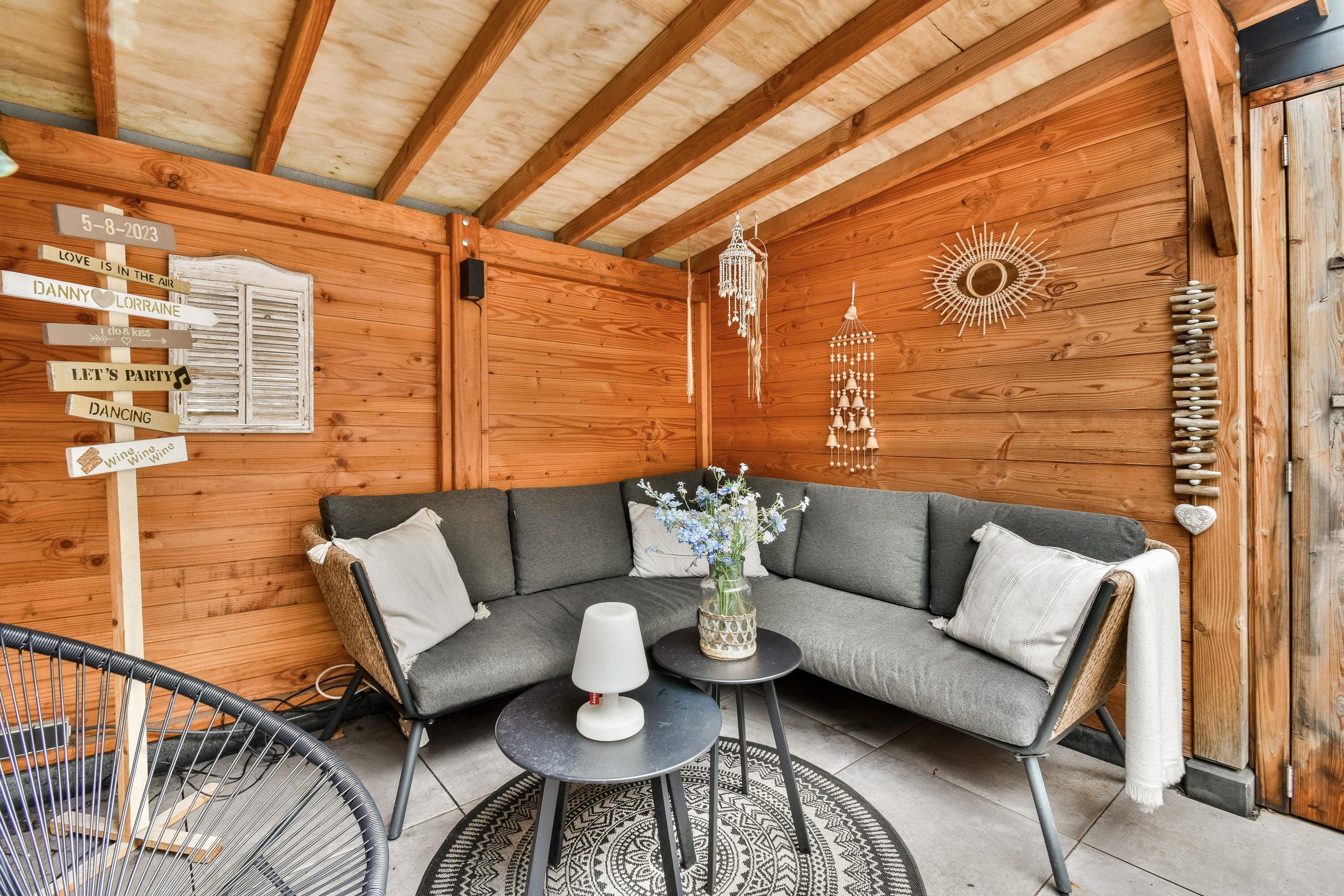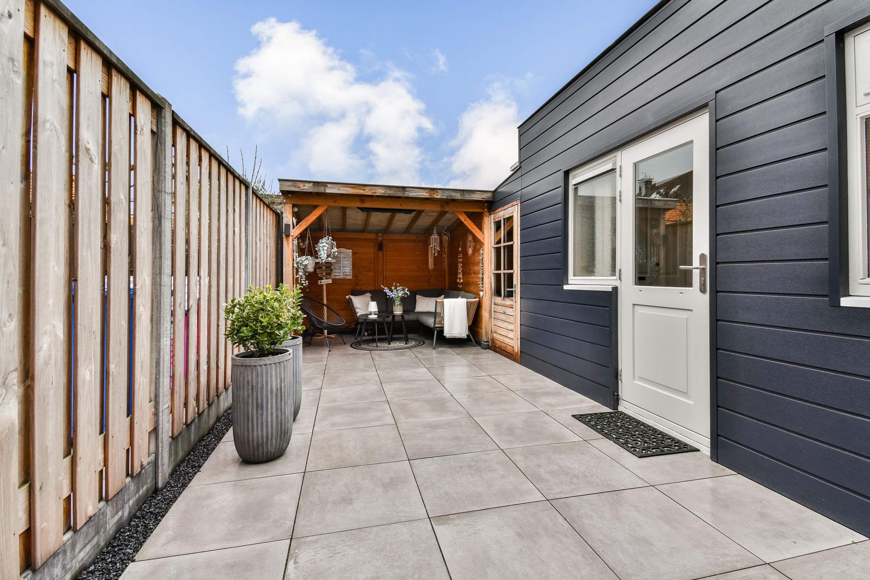 De heerlijke en overwegend zonnige achtertuin, gelegen op het noordwesten is recent volledig en sfeervol vernieuwd. Zo zijn er keramische siertegels gelegd, is de gevelbekleding vernieuwd en is er aan de berging een gezellige overkapping geplaatst. Hier geniet je van de zon van ochtend tot begin middag, met schaduw later op de dag. De achtergevel van de woning is hiernaast uitgerust met een zonnescherm.