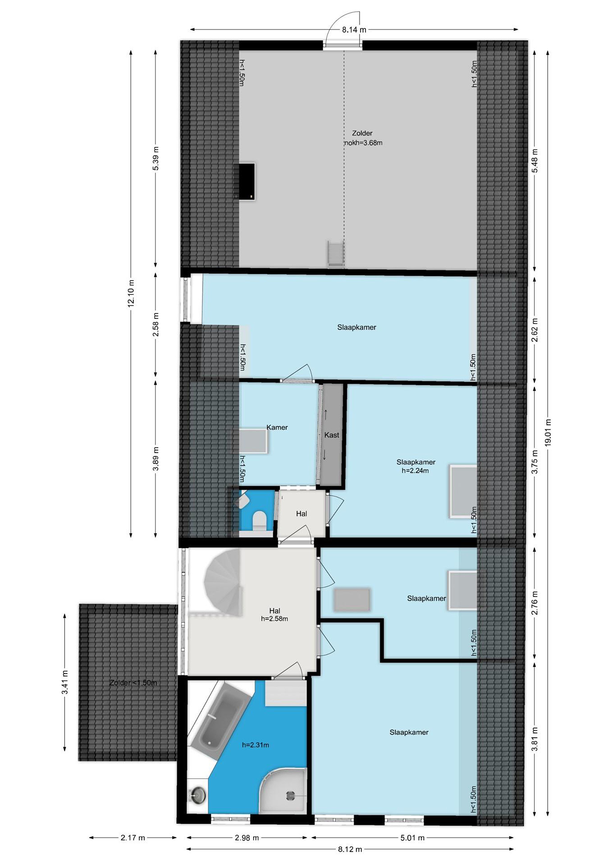 Tweede verdieping Boven de etage bevindt zich de bergingsvliering.
