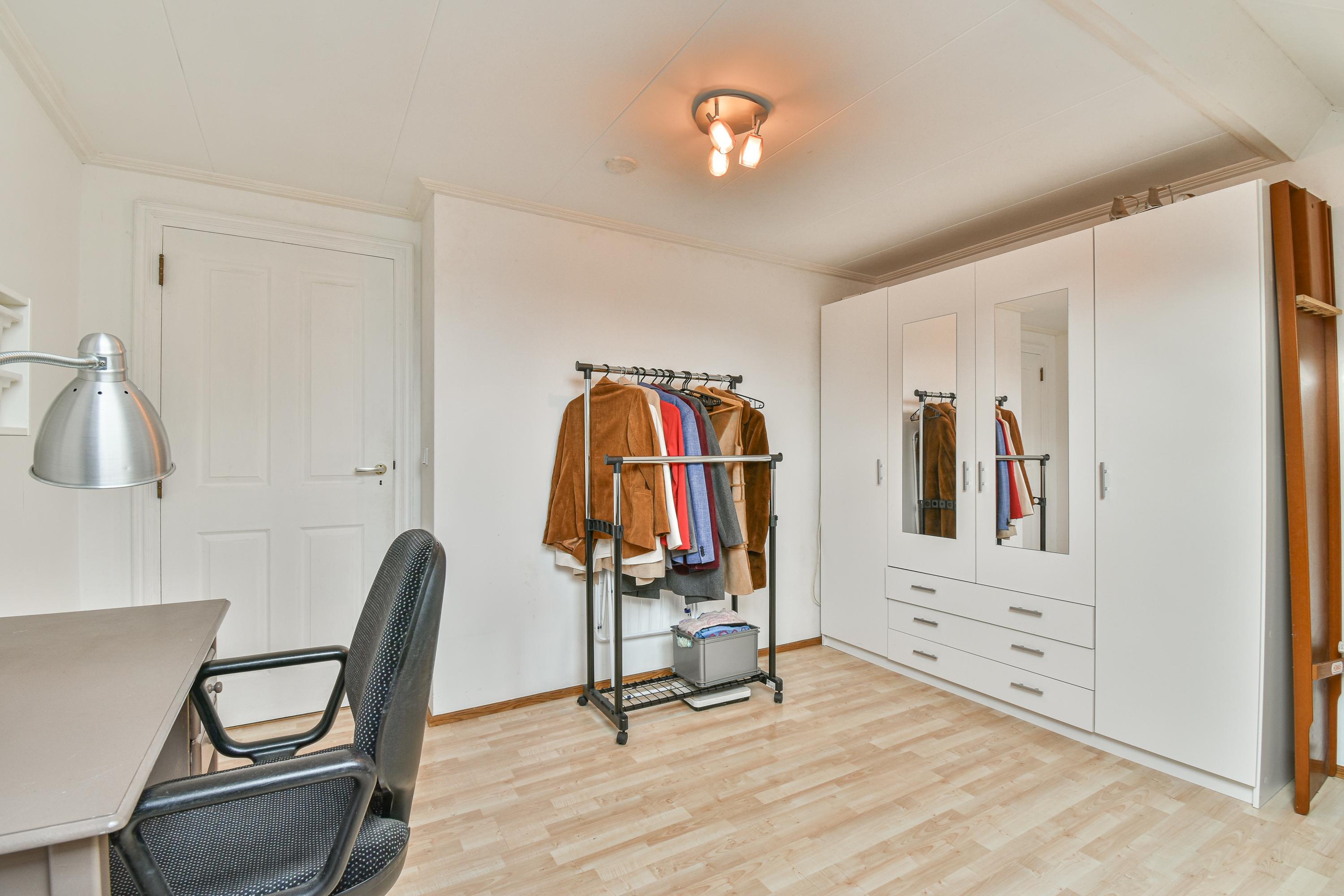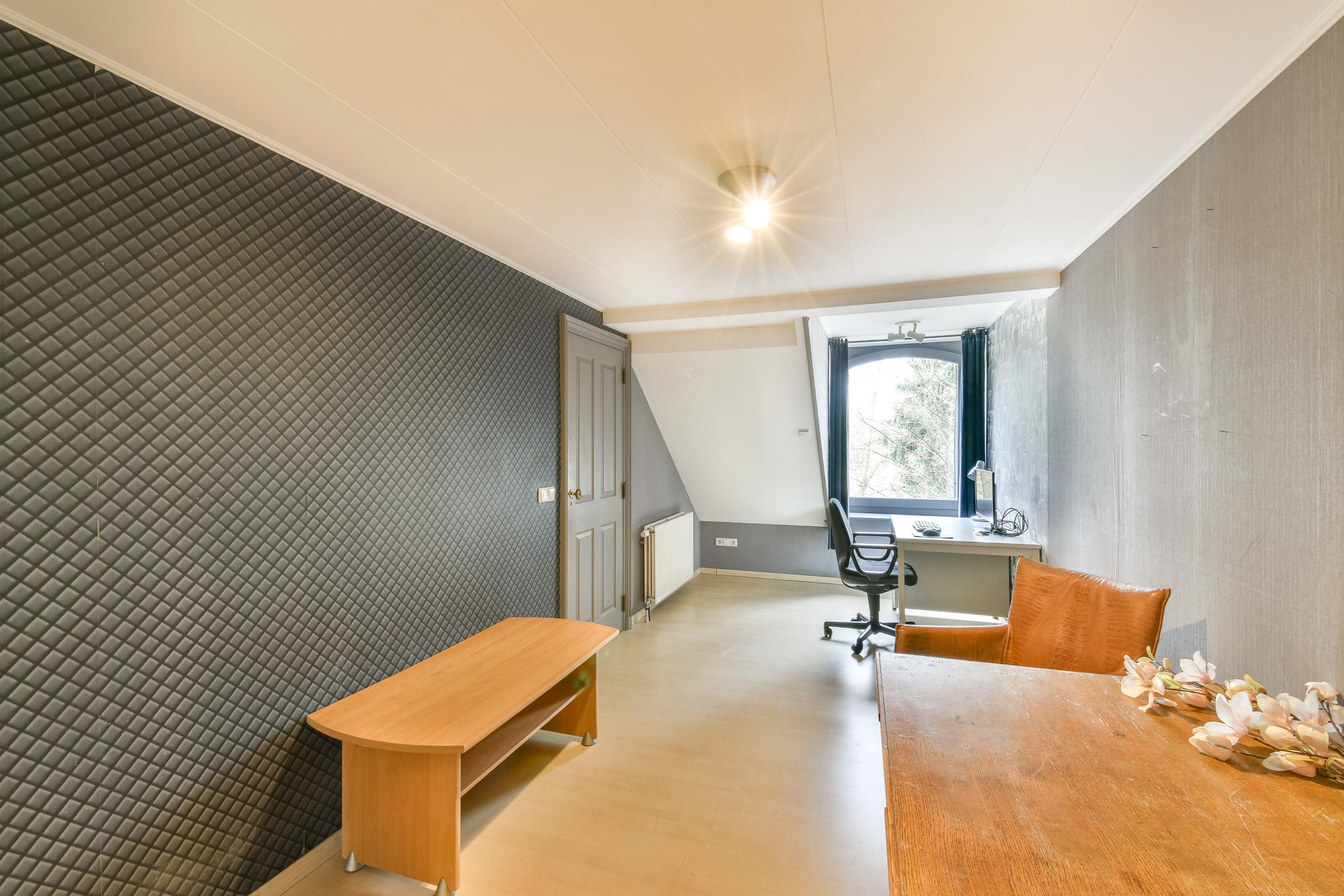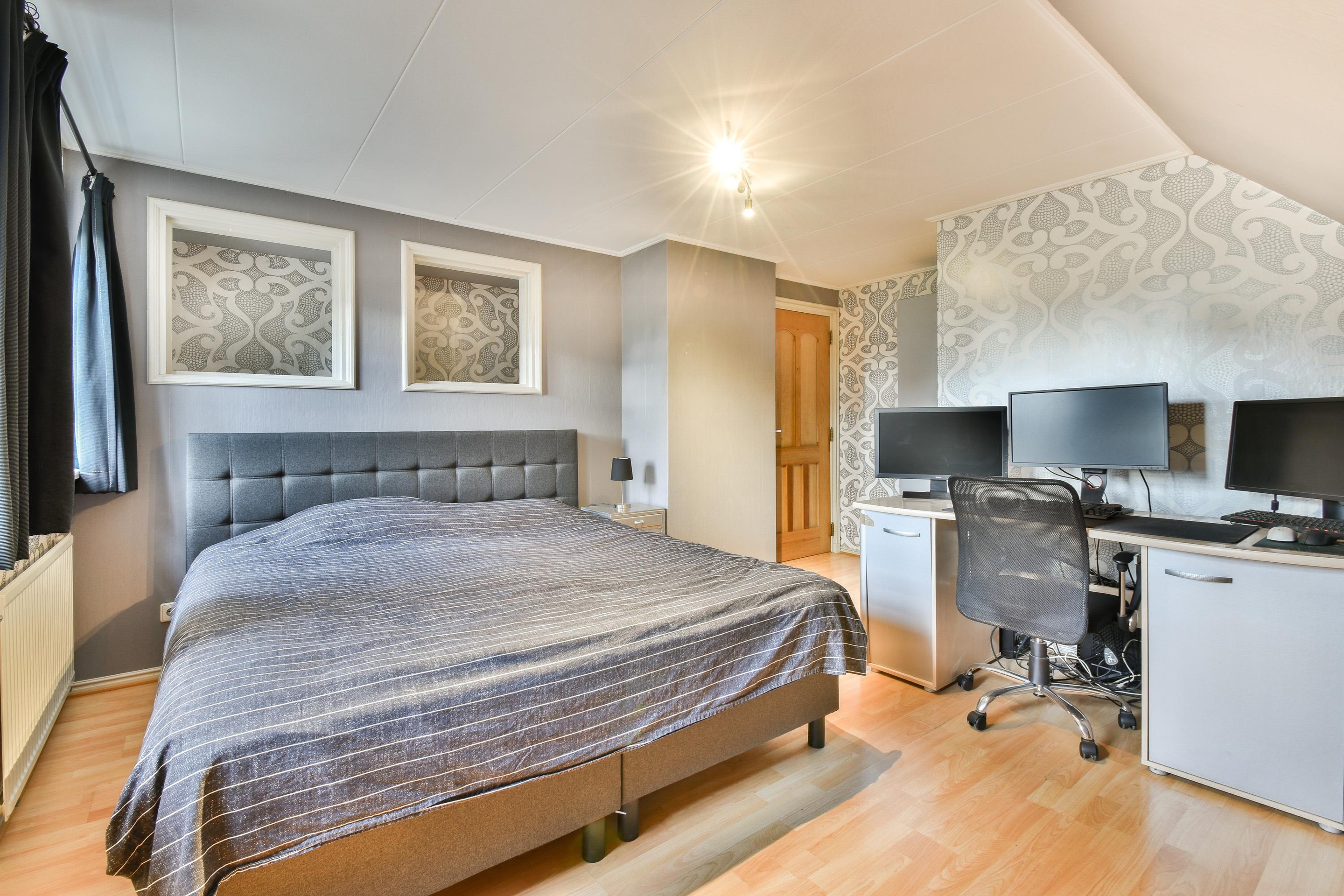 Eerste verdieping De overloop met vide is uitgerust met een dakkapel en vaste bergruimte. Van hieruit zijn de 1ste twee slaapkamers, de badkamer en de tussenhal bereikbaar. De 1ste ruime slaapkamer is gelegen aan de dijkzijde van de woning. De tweede slaapkamer is uitgerust met een Velux-dakraam en biedt toegang tot de bovengelegen zolderruimte. De geheel betegelde badkamer is uitgerust met een ligbad, een douchecabine, designradiator en een wastafel. De tussenhal staat in directe verbinding met de nette toiletruimte welke is uitgerust met een zwevend toilet en fonteintje. De werkkamer biedt een dakraam en een vaste schuifkast. Van hieruit toegang tot de overige twee slaapkamers waarbij de ruime derde slaapkamer over een Velux-dakraam beschikt. De vierde slaapkamer is aan de parkzijde gelegen en is uitgerust met een dakkapel.