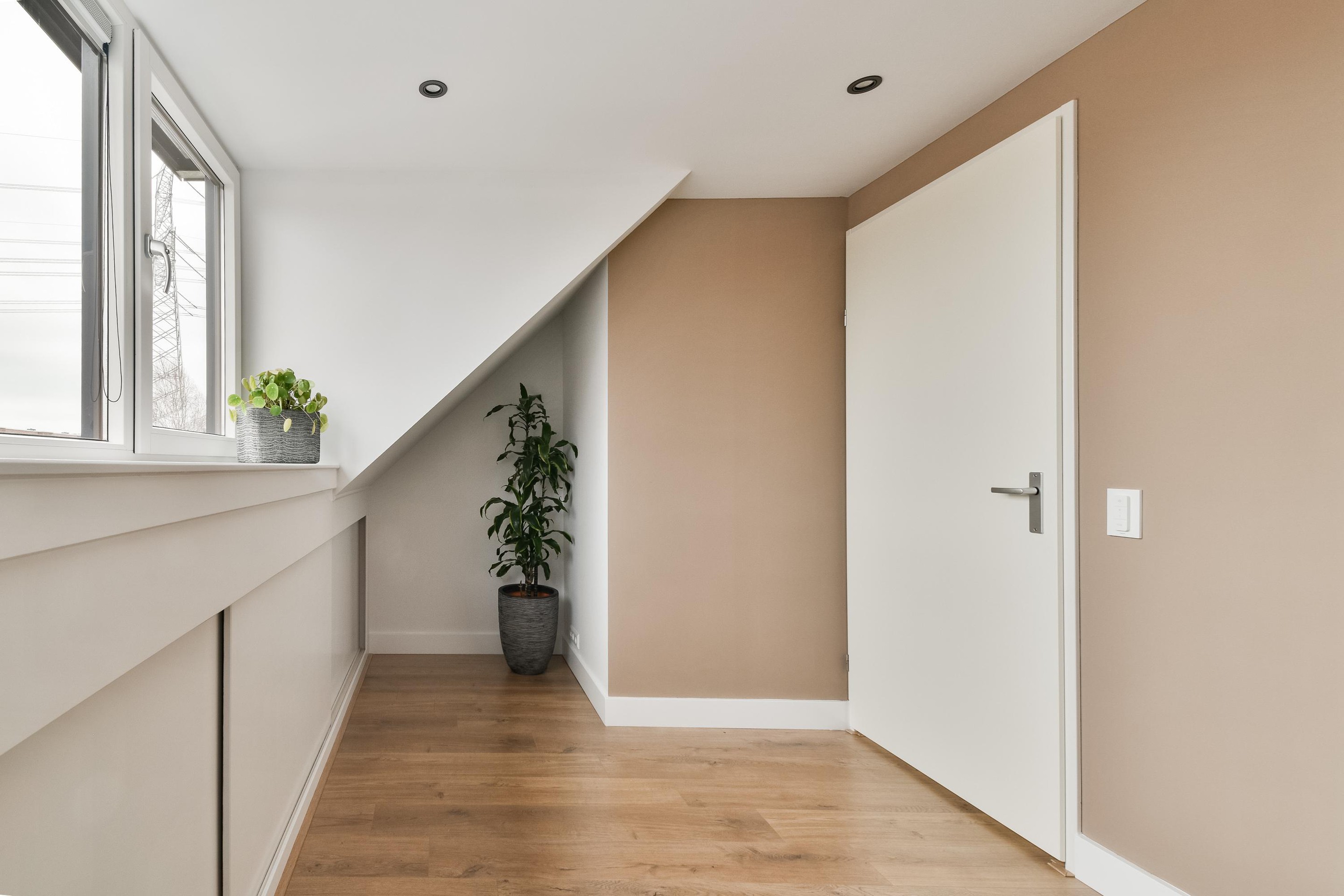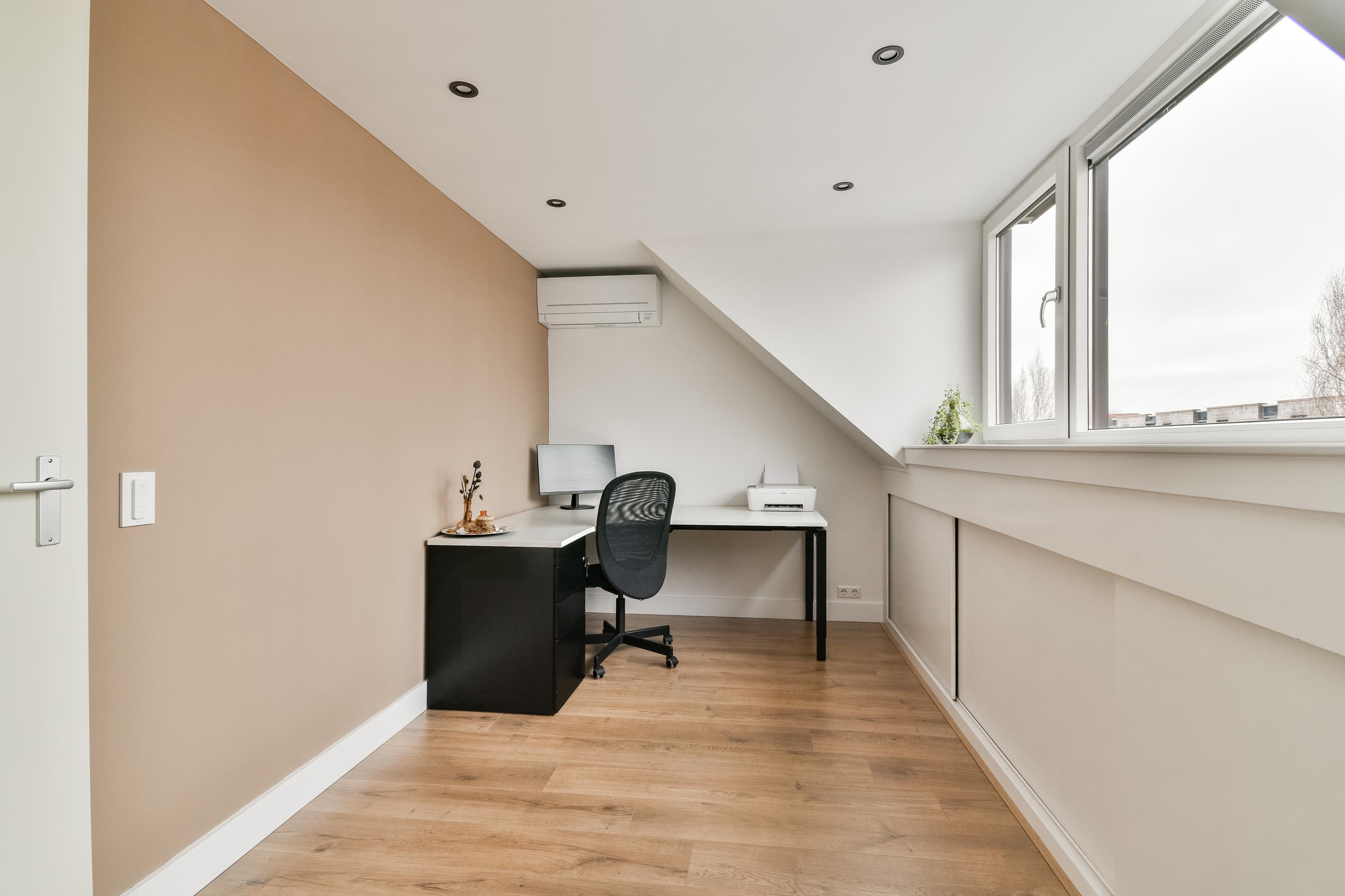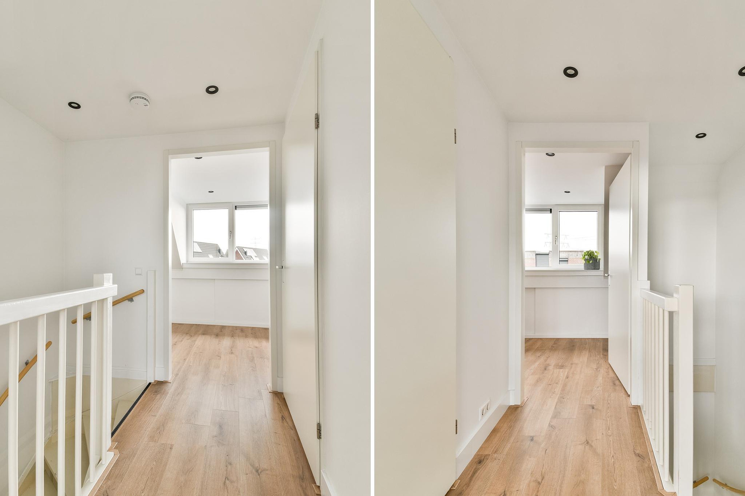 Vanaf de overloop toegang tot twee slaapkamers en de waskamer/technische ruimte. De derde slaapkamer is gelegen aan de voorzijde en omvat de volledige breedte van de woning. Door de dakkapel is hier aanzienlijk veel leefruimte. De ramen zijn uitgerust met rolluiken en de ruimte heeft een airconditioning unit. Achter de schotten is er bergruimte te vinden. Ook de laatste slaapkamer is voorzien van een dakkapel, bergruimte achter de schotten, een airconditioningunit en elektrische rolluiken. Waskamer cq. technische ruimte met de witgoedaansluitingen, de CV-installatie en toegang tot de bergzolder.