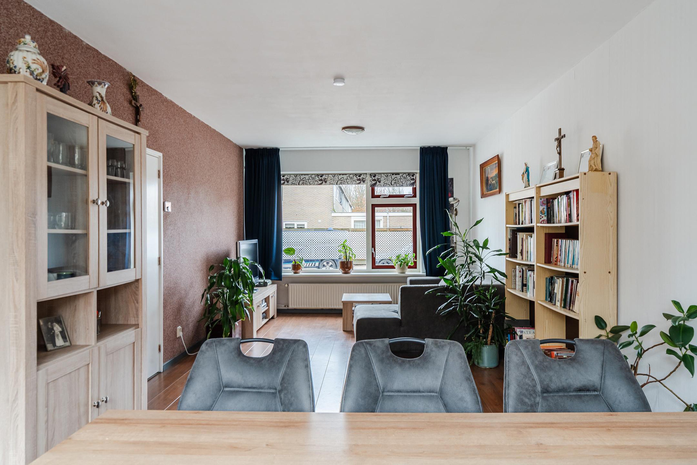 De grote woonkamer van ruim 29 m2 heeft veel daglichtinval, is voorzien van een laminaatvloer en eenvoudig op te delen in een zit en eetgedeelte. De kozijnen zijn voorzien van isolatieglas en een ventilatierooster.
