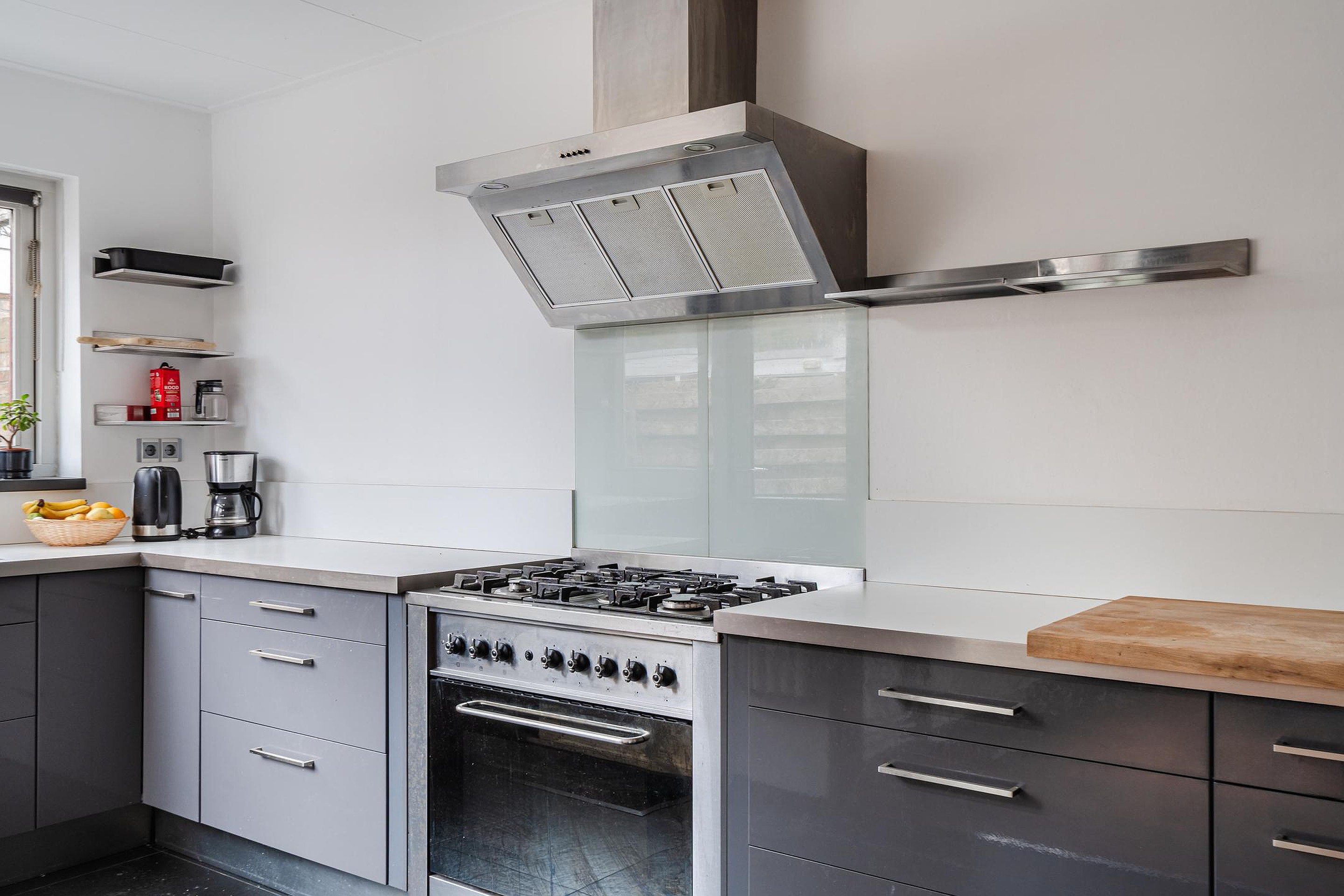 De open keuken heeft veel daglichtinval, is tuingericht in een ruime U-opstelling geplaatst met veel bruikbare werkbladruimte en voorzien van een RVS spoelbak met spoelkraan, een verplaatsbare snijplank, een 5-pits gasfornuis (Indesit en 100 cm. breed) met oven, een RVS afzuigkap, een grote Amerikaanse koel-vrieskast (Samsung), een onderbouw magnetron en een vaatwasser (vernieuwd in 2024). De keuken is verder voorzien van 2 carrouselkasten in de hoeken, een grote designradiator aan de wand en een plavuizenvloer, de kozijnen zijn voorzien van isolatieglas.